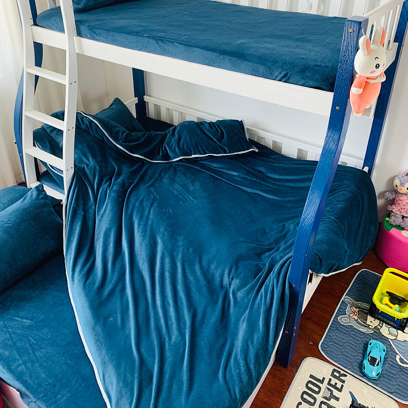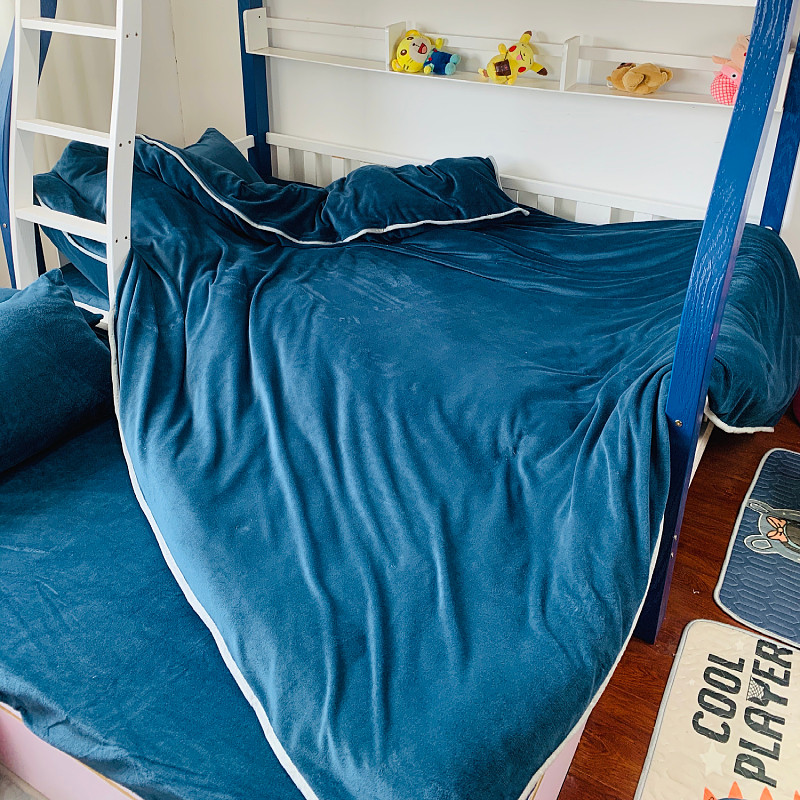 小虾米 2022新款加厚牛奶绒被套单件套三件套 宝蓝