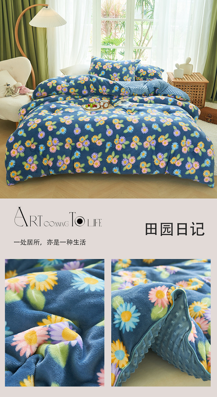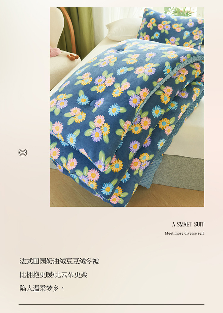 商品名称:晨曦 2022新款法式田园奶油绒豆豆绒大豆棉冬被 田园日记
