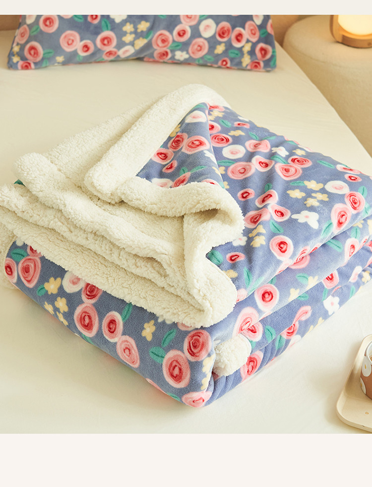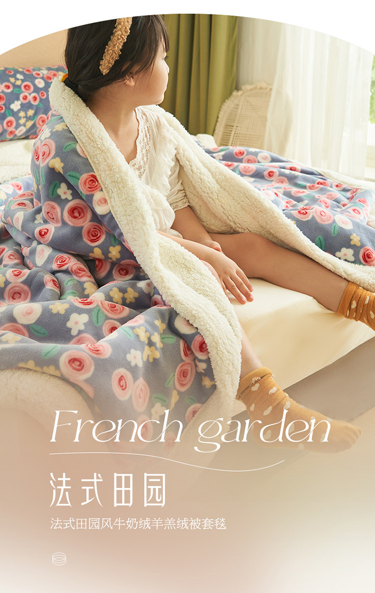 晨曦家纺 2022新款法式田园风牛奶绒羊羔绒被套毯 微甜花园