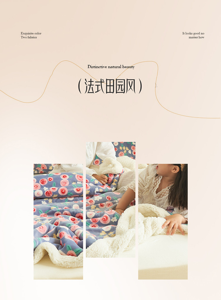 商品名称:晨曦家纺 2022新款法式田园风牛奶绒羊羔绒被套毯 微甜花园
