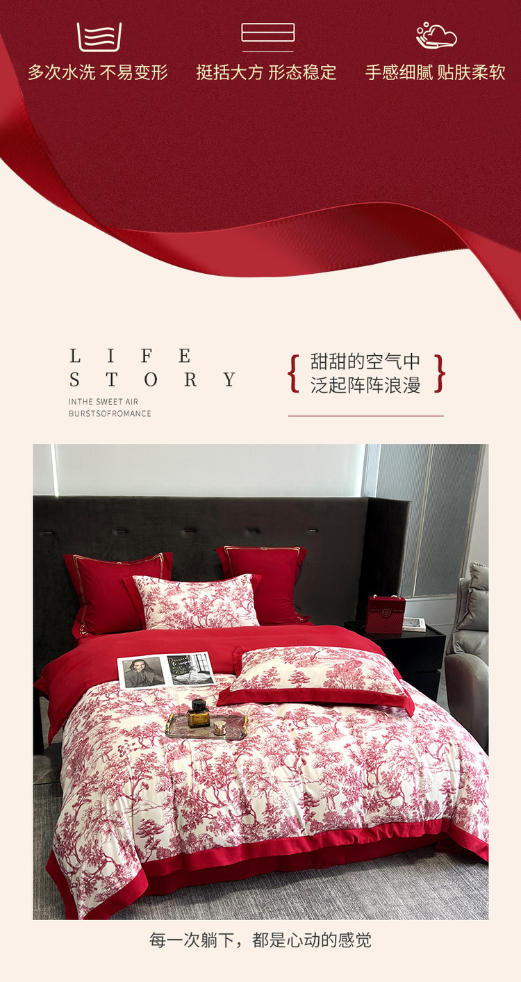 (总)优悦生活馆 2025新款亲肤婚庆夹棉床盖四件套,花嫁,喜悦,心田,予你,缘定