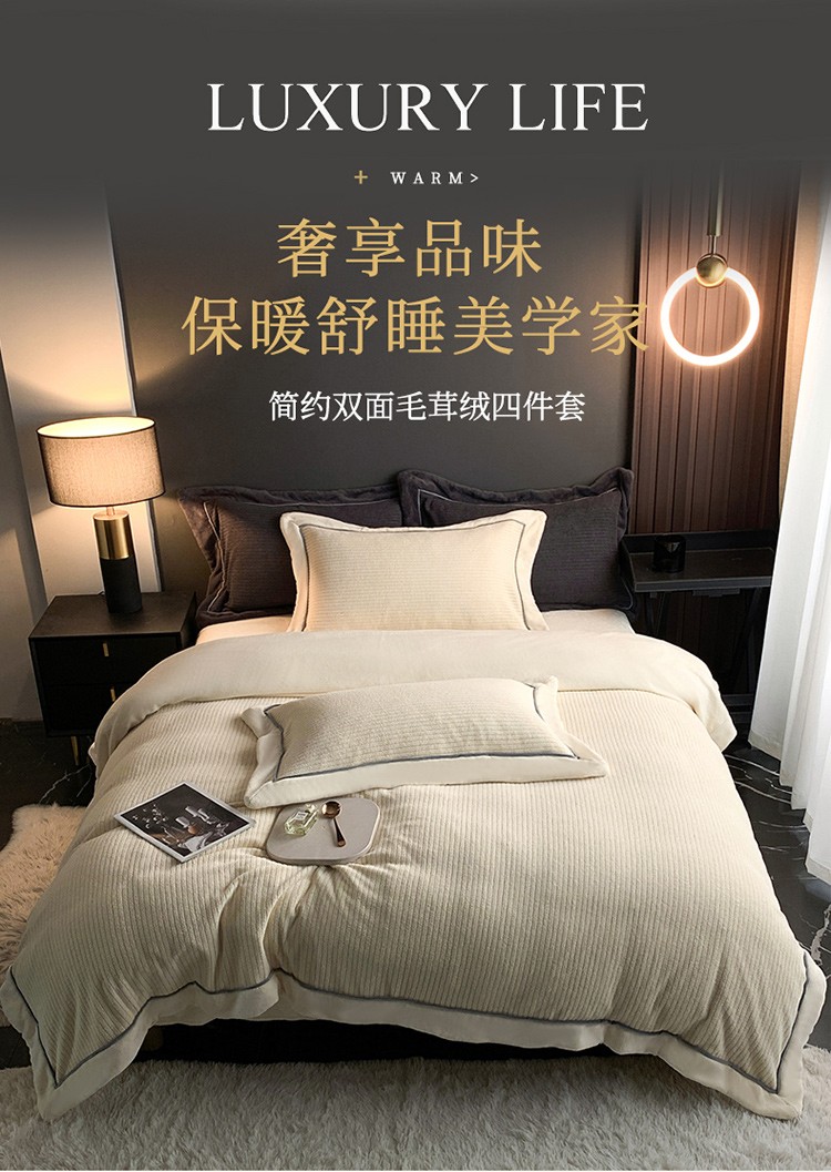 (总)网客 2024新款简约牛奶绒毛茸绒四件套