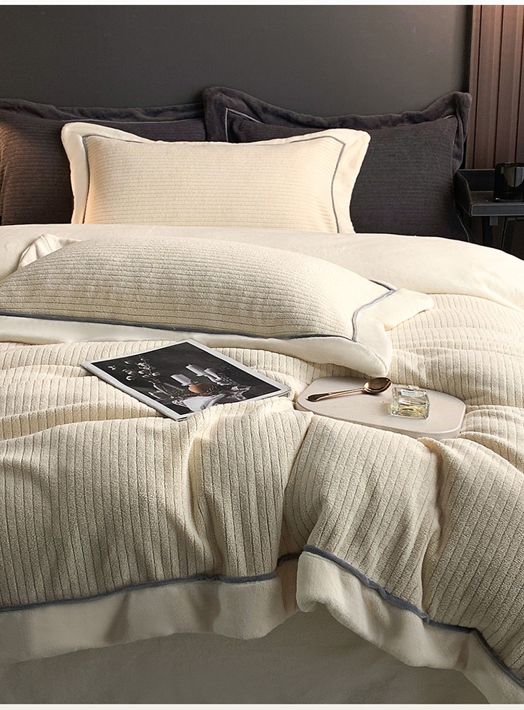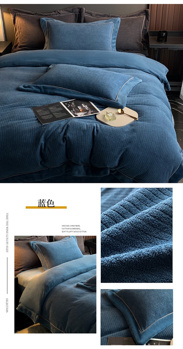 (总)网客家纺 2025新款羊毛绒牛奶绒夹棉床盖四件套,豹点-深灰,简格-黑色,简格-咖色,空间-红色,泥点-灰色,泥点-咖色,维奥-灰色,斜格-灰色,斜格-墨绿