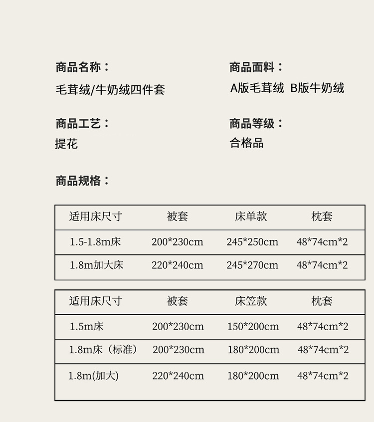 商品名称:(总)网客 2024新款简约牛奶绒毛茸绒四件套
