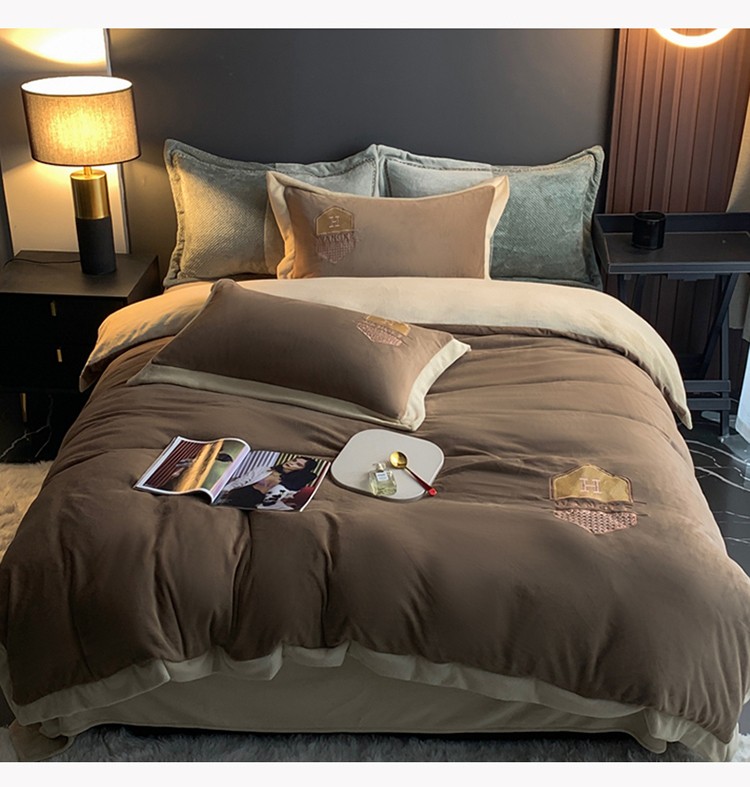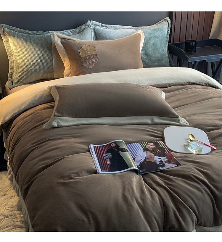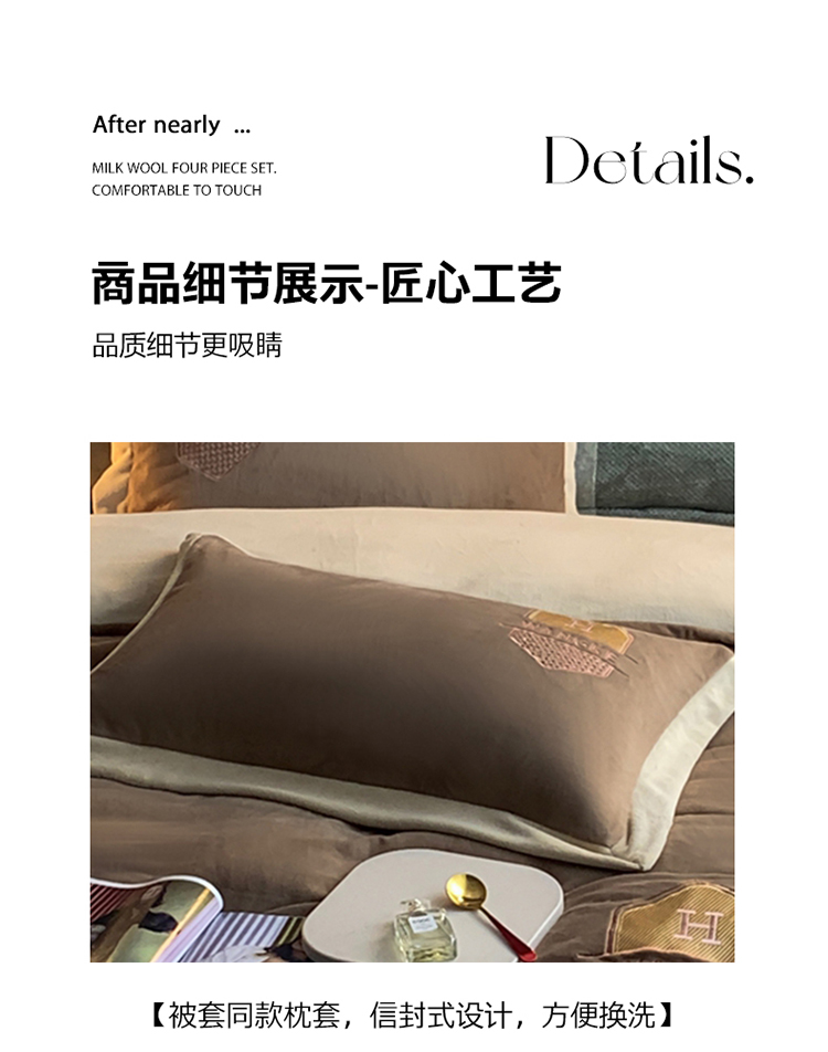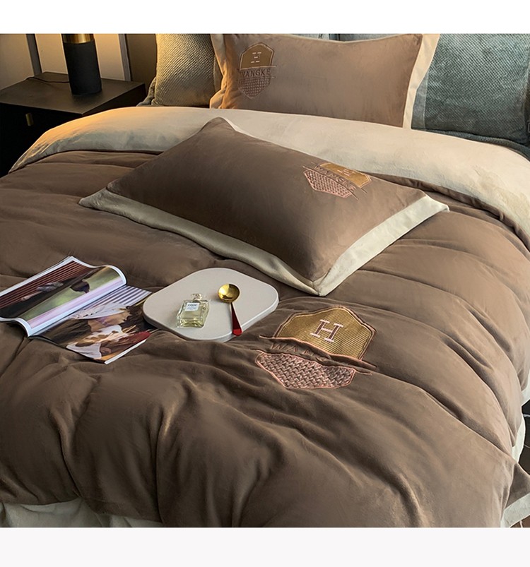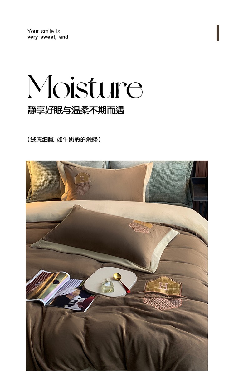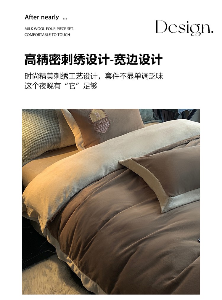 当前位置: 91家纺网 > 商品网购 > 床品套件 > 四件套 > 牛奶绒四件套 > 网客 2024新款牛奶绒四件套拼色绣花系列 奶咖