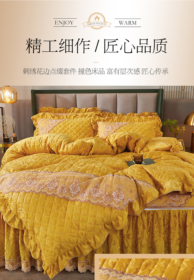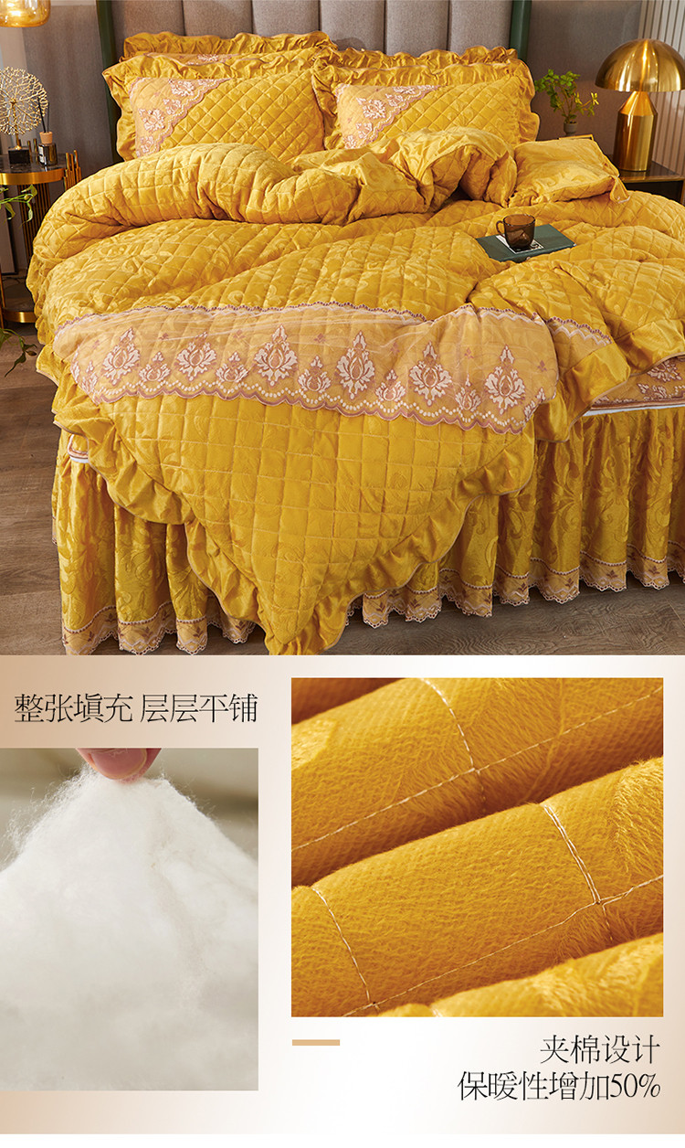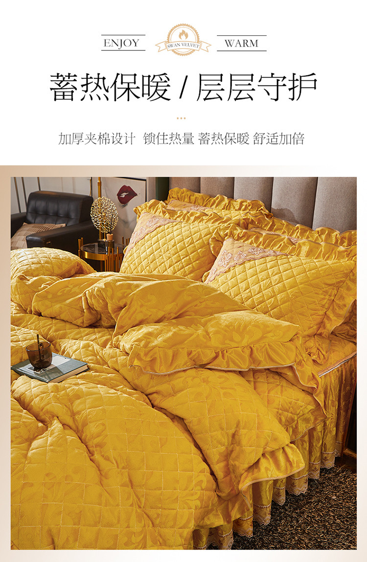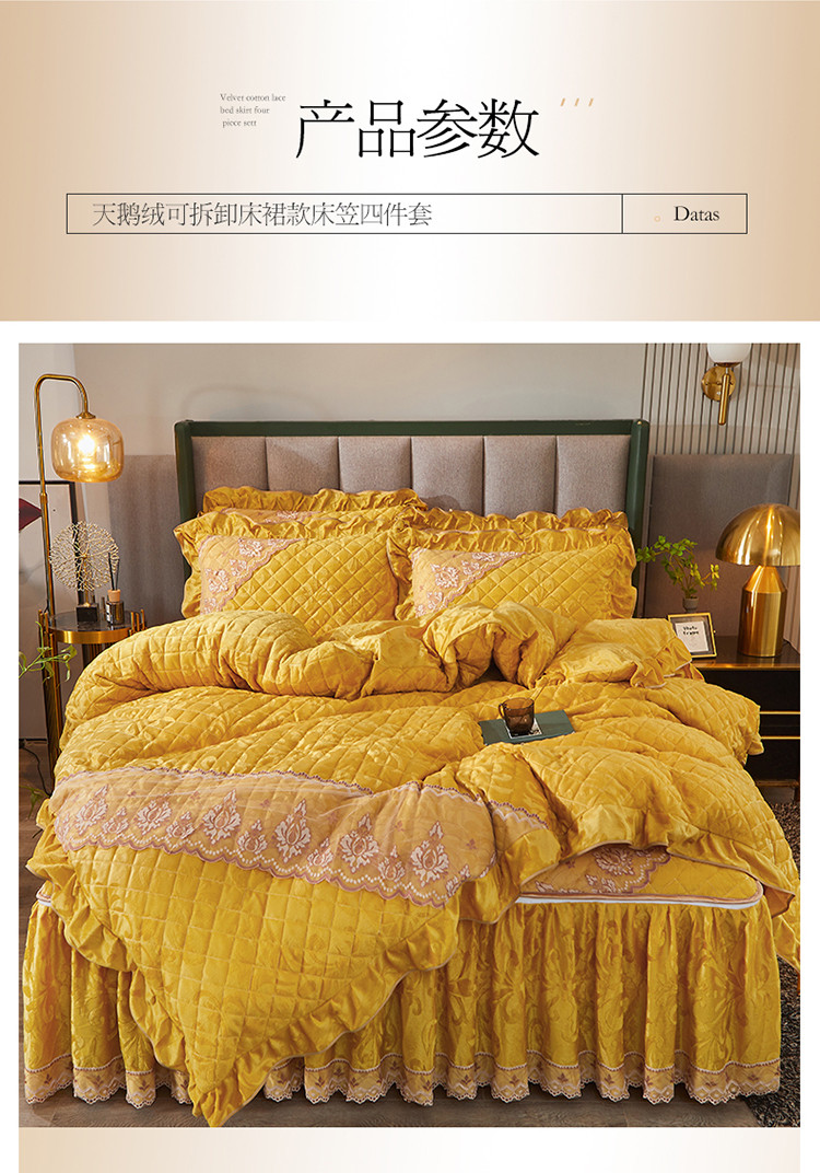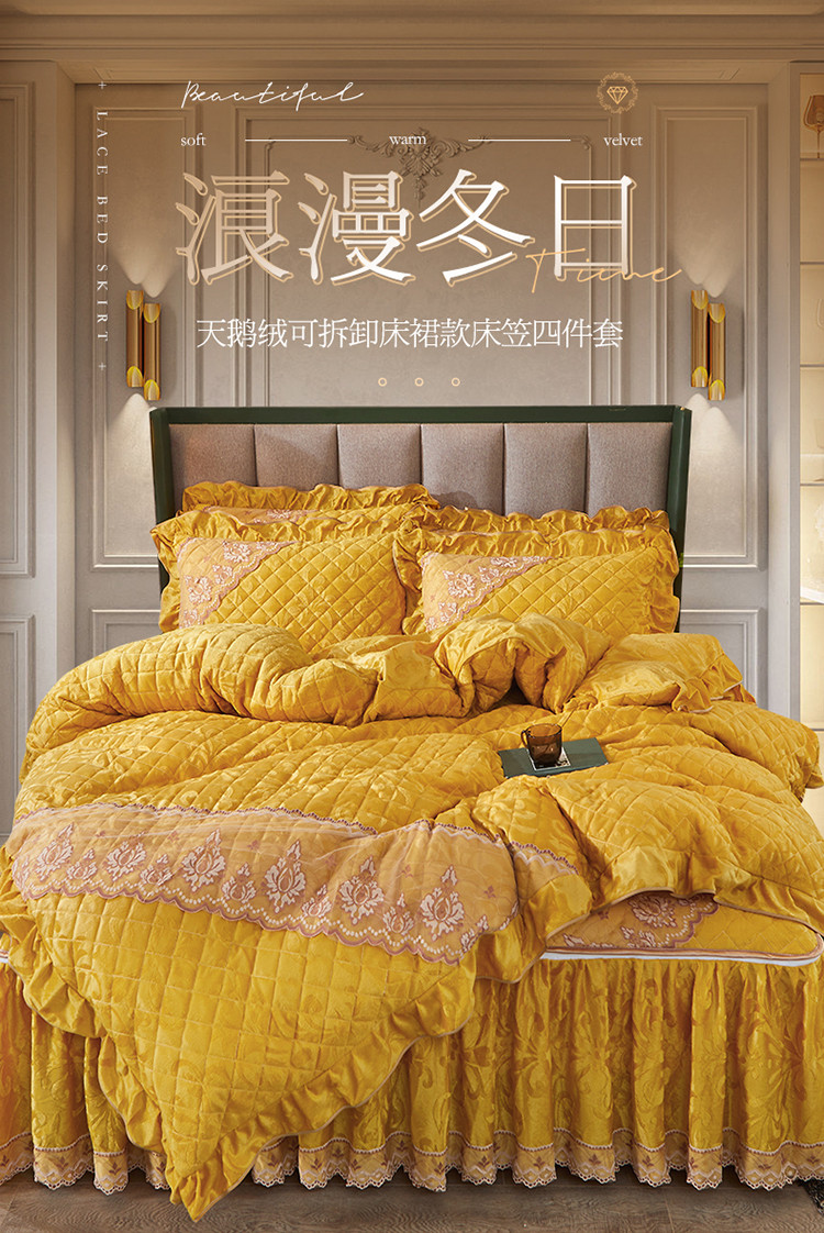 当前位置: 91家纺网 > 商品网购 > 床品套件 > 四件套 > 天鹅绒四件套 > 网红馆 2025新品天鹅绒夹棉床裙四件套 幻城巴黎 姜黄