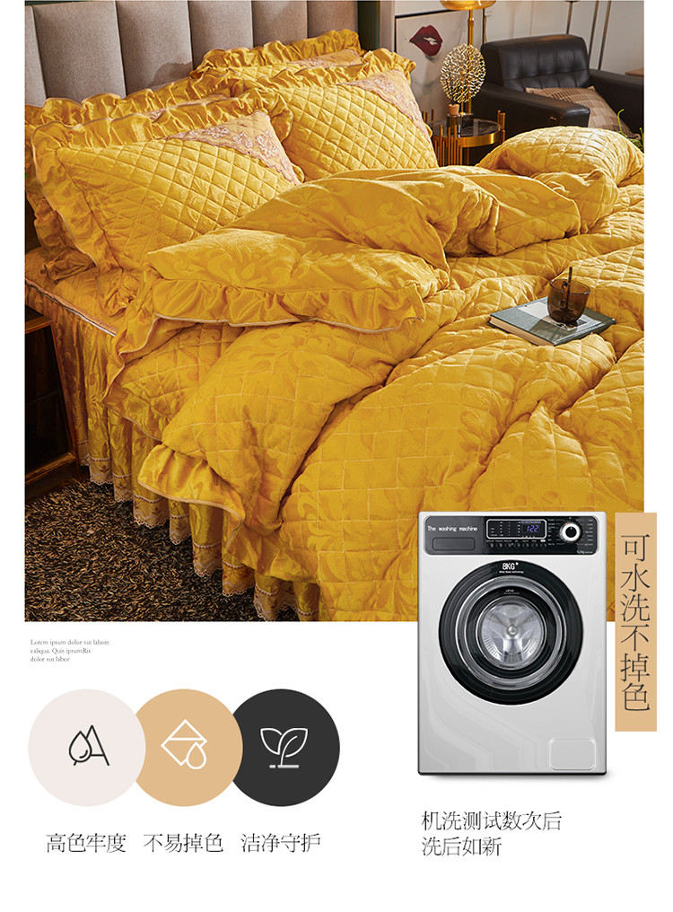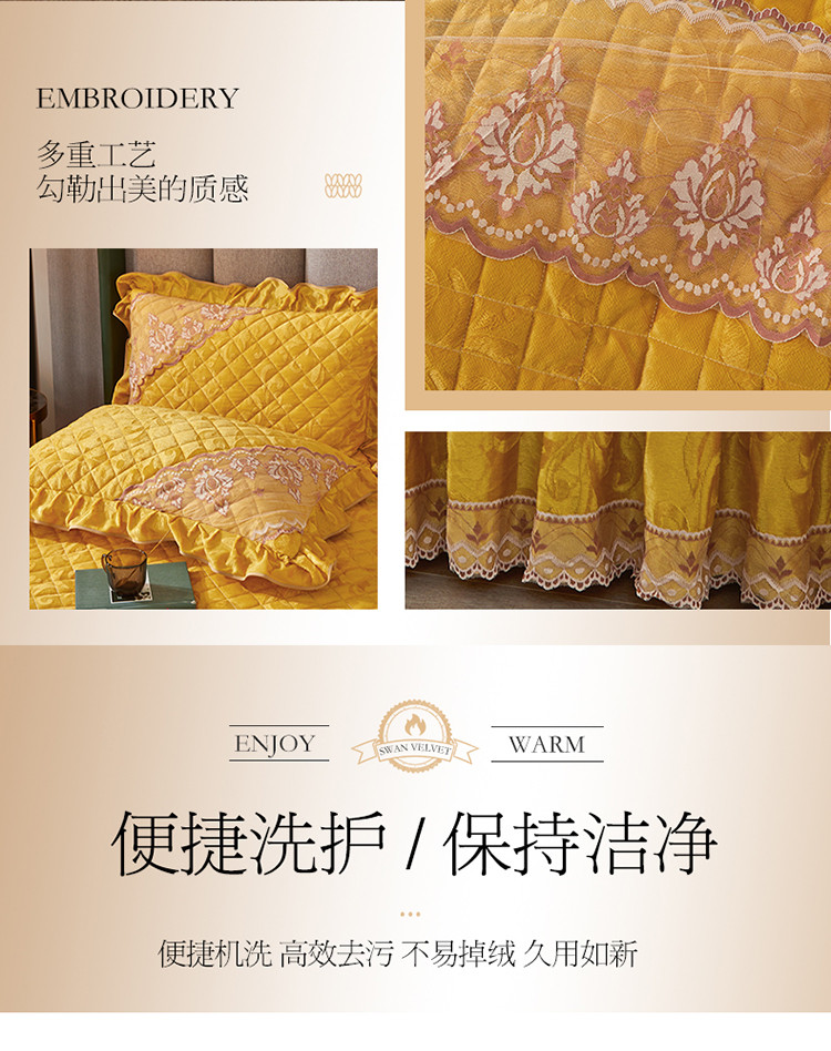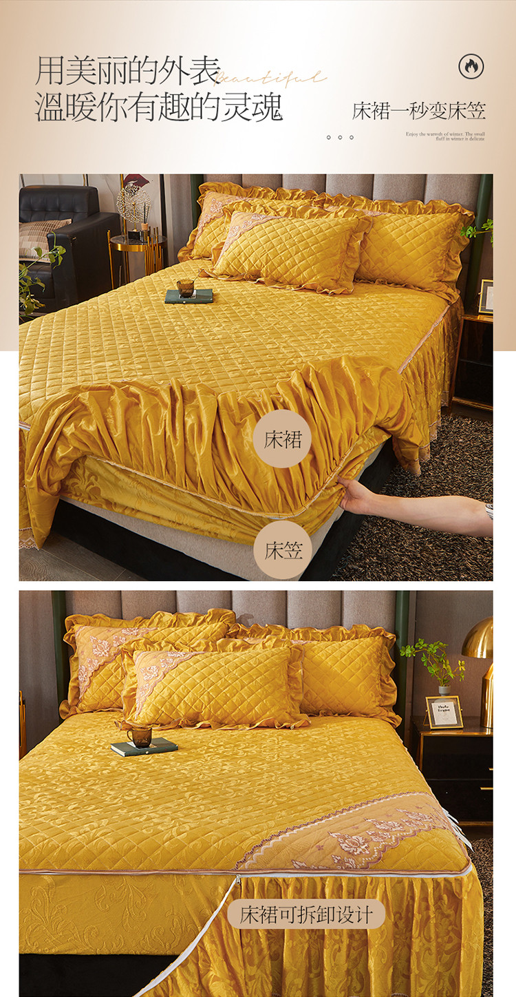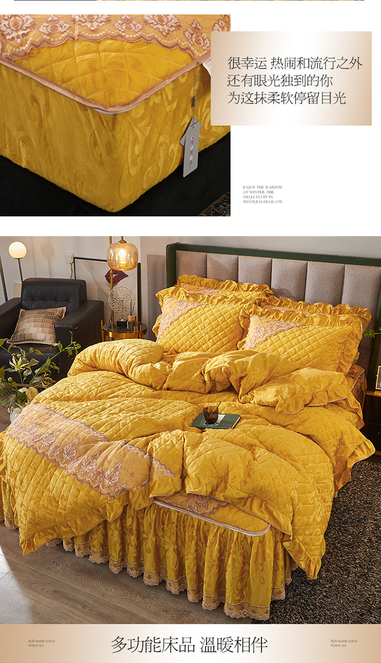 当前位置: 91家纺网 > 商品网购 > 床品套件 > 四件套 > 天鹅绒四件套 > 网红馆 2025新品天鹅绒夹棉床裙四件套 幻城巴黎 姜黄