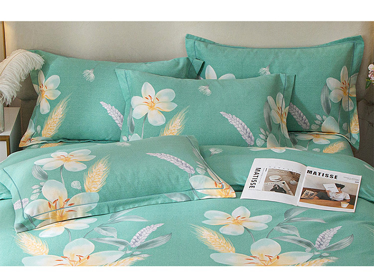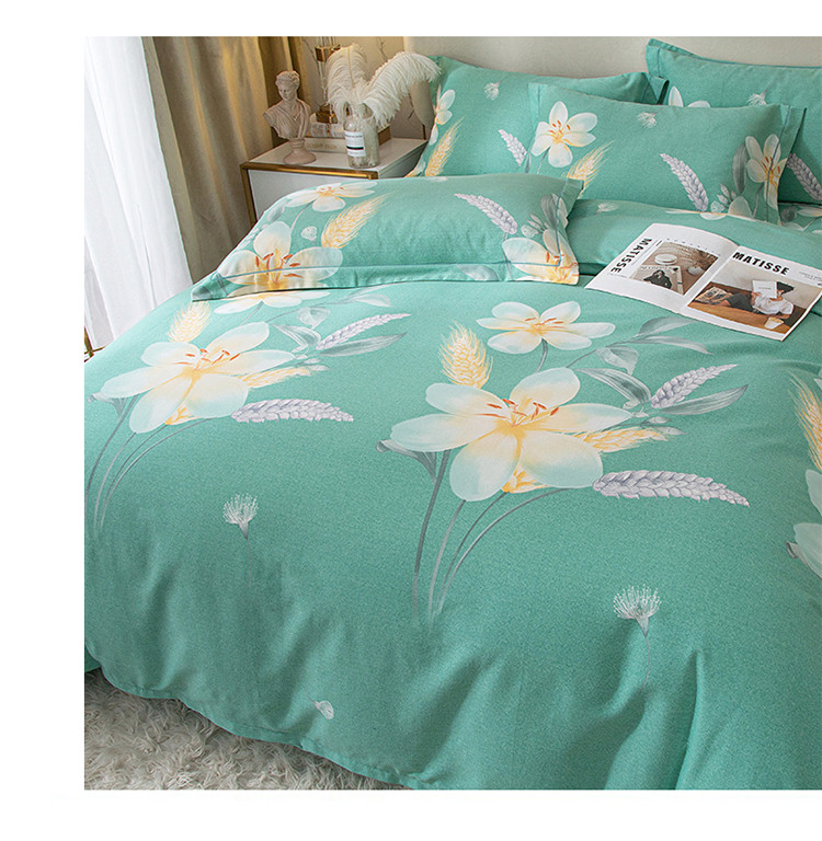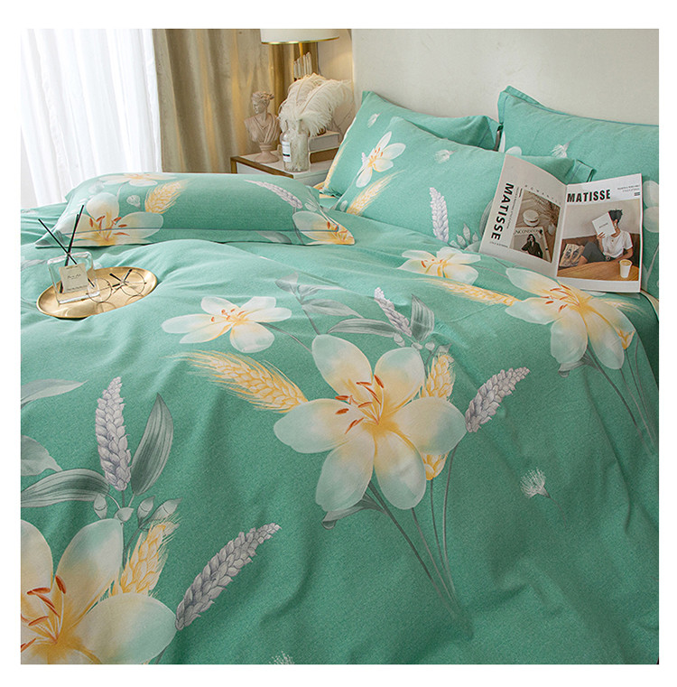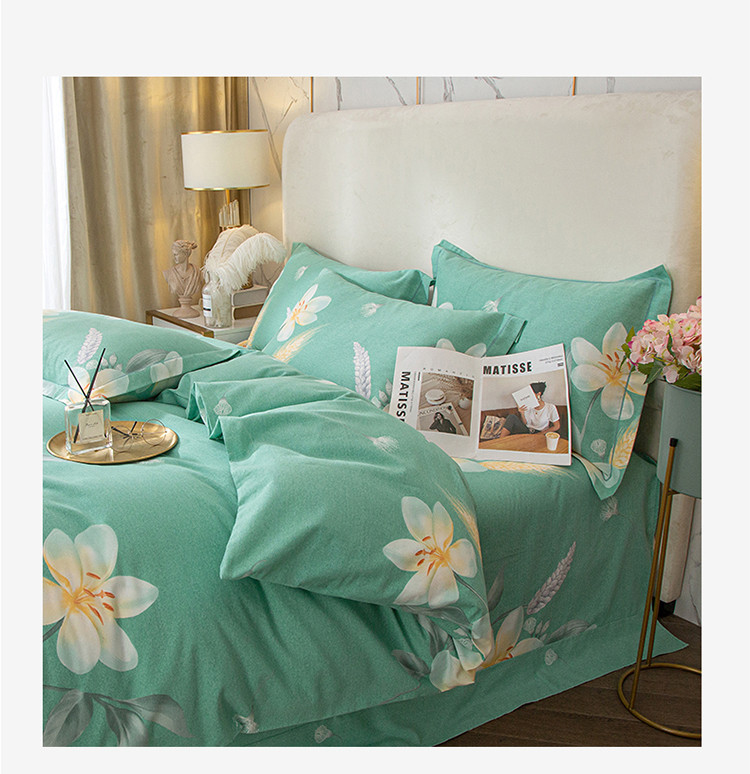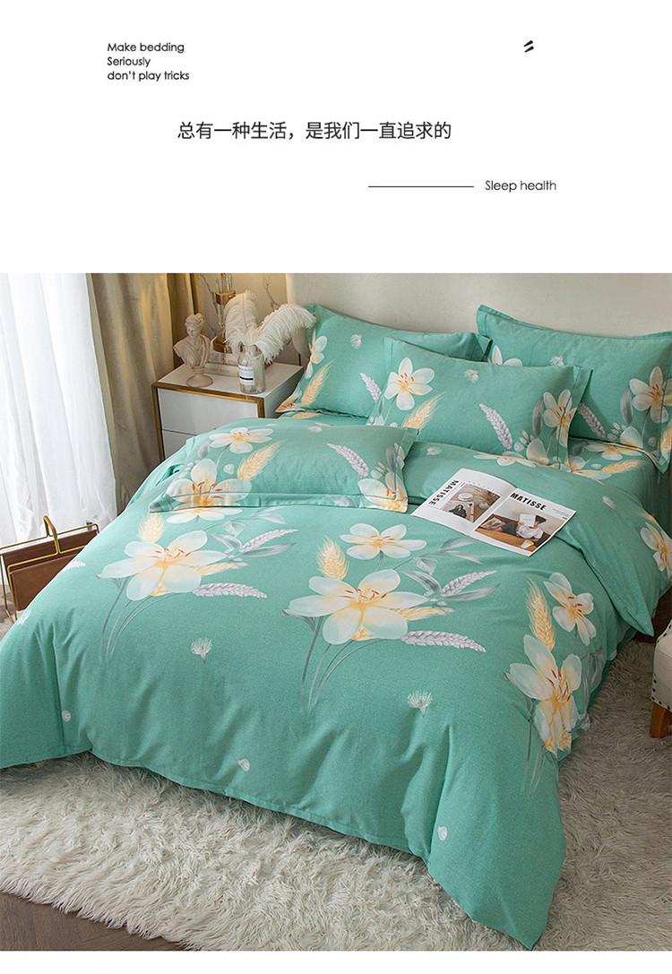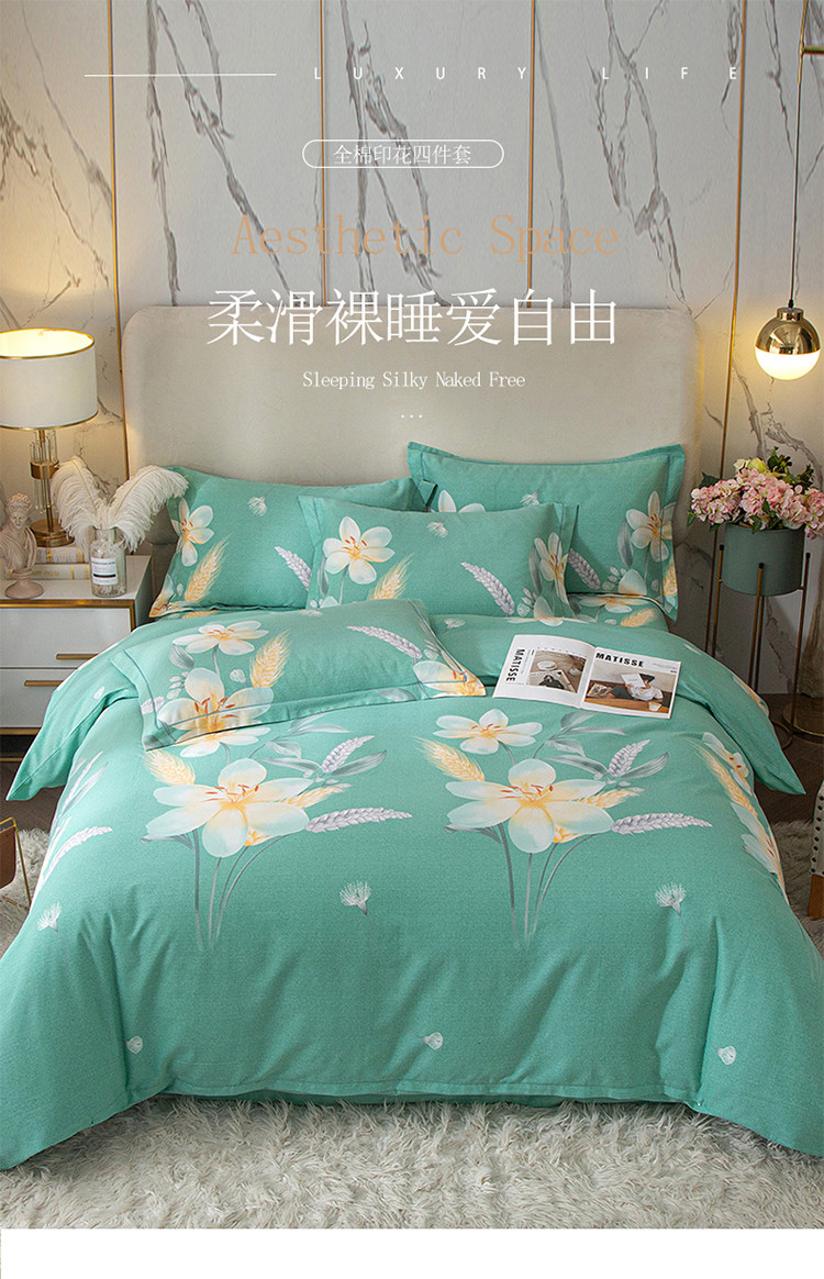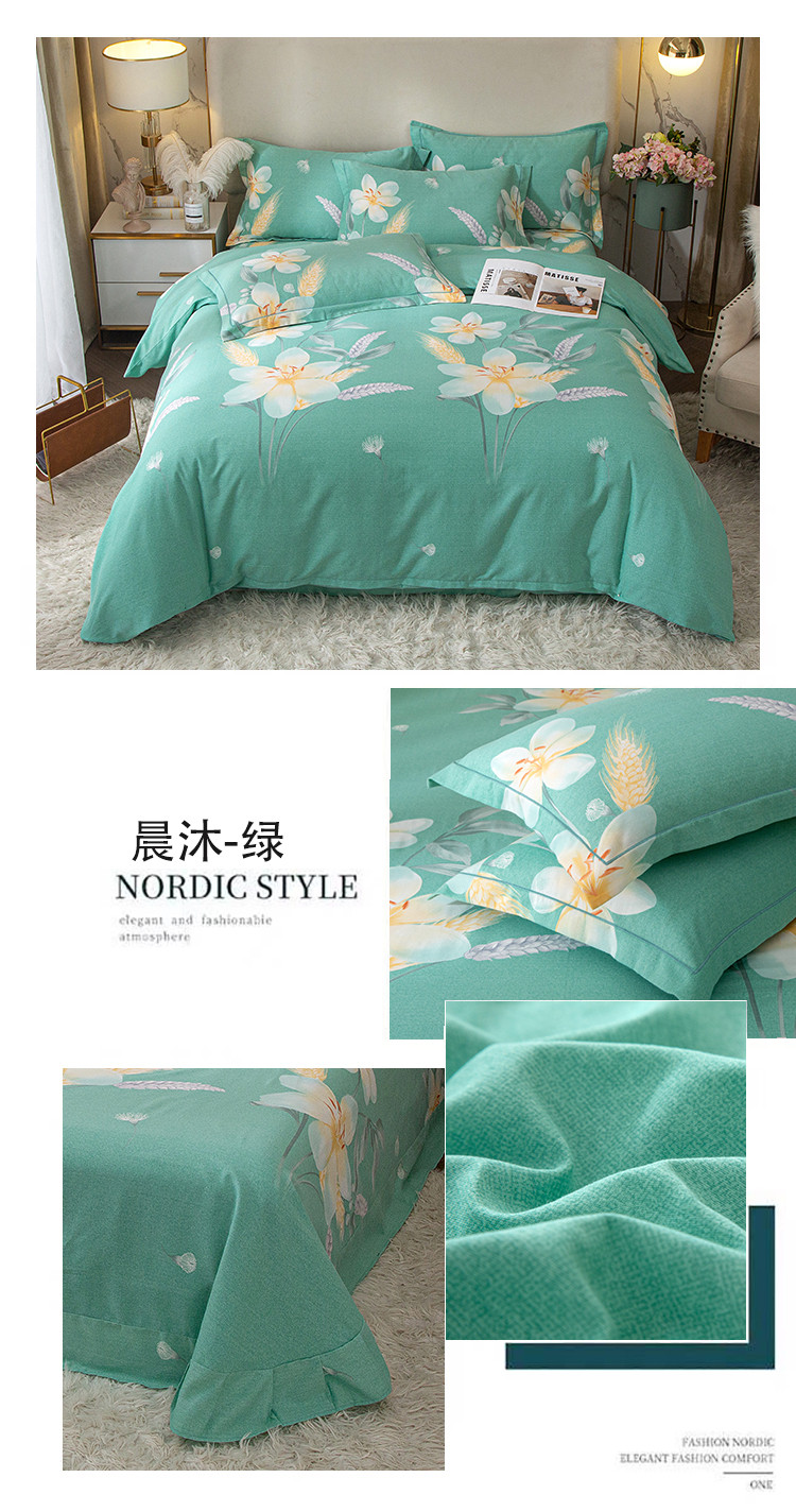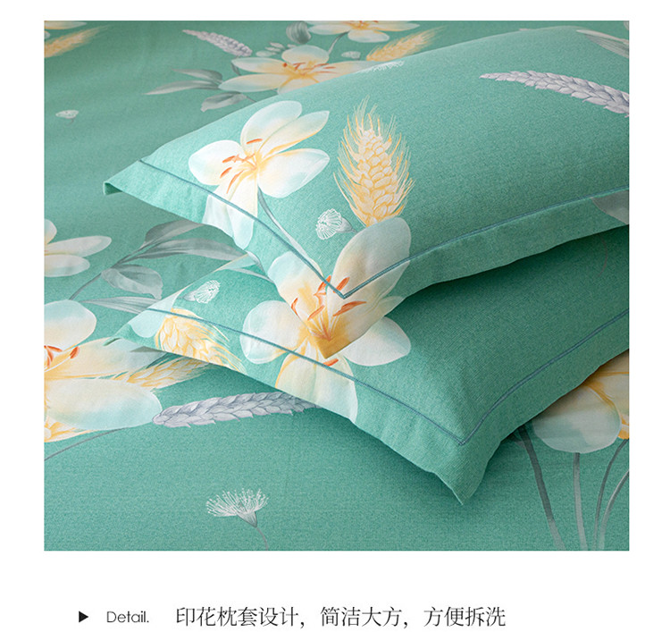 商品名称:金纱玉纺 2022新款全棉印花加厚磨毛四件套晨沐-绿