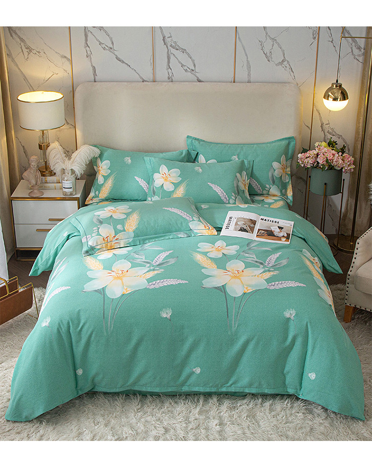 金纱玉纺 2022新款全棉印花加厚磨毛四件套晨沐-绿