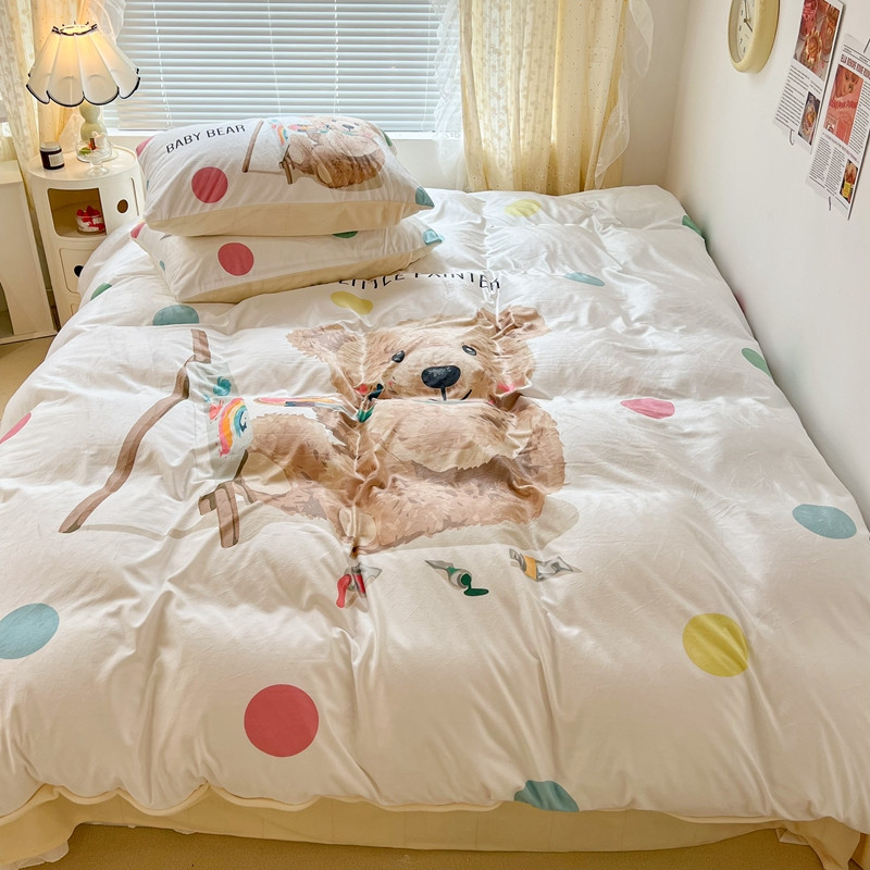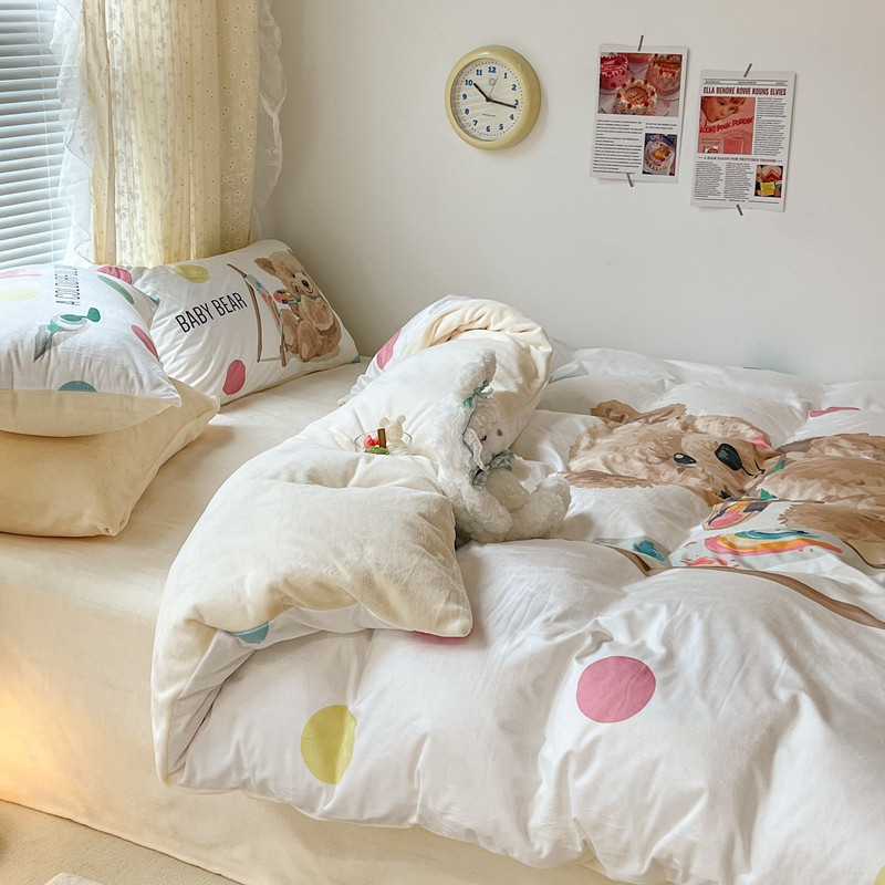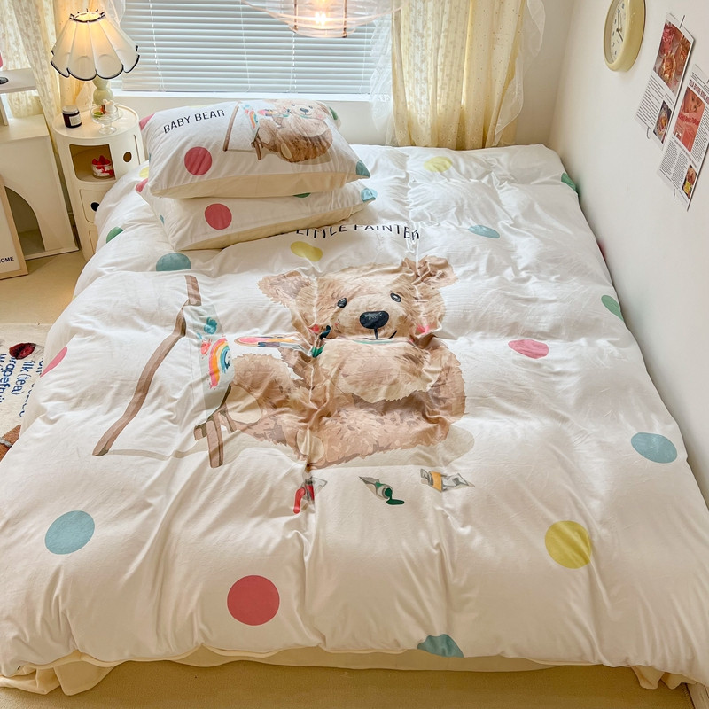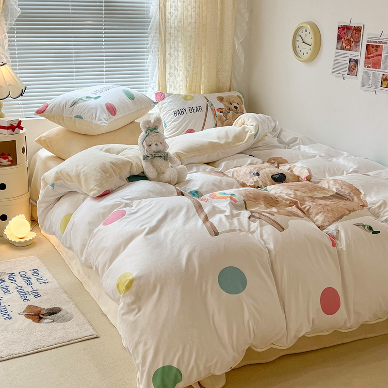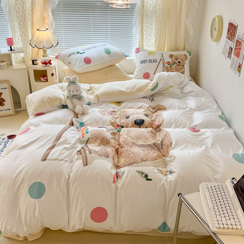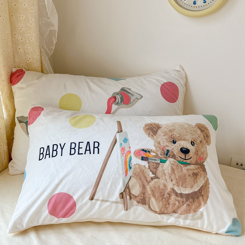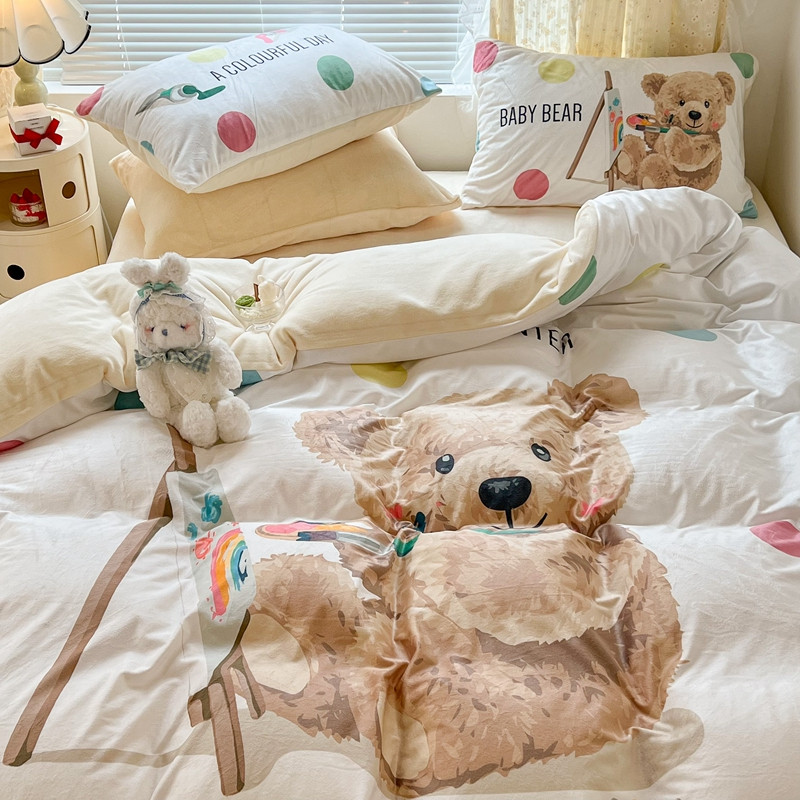 商品名称:昔可 2022新款大版数码印花牛奶绒四件套 画画熊仔