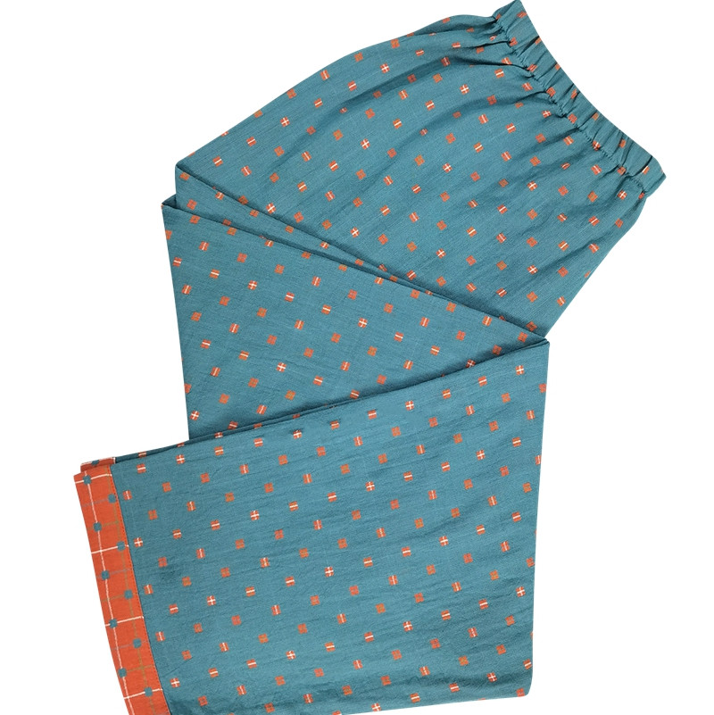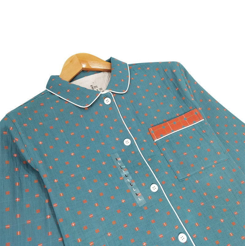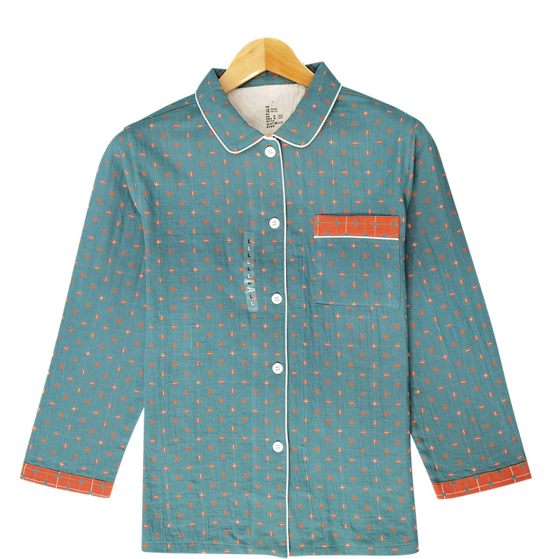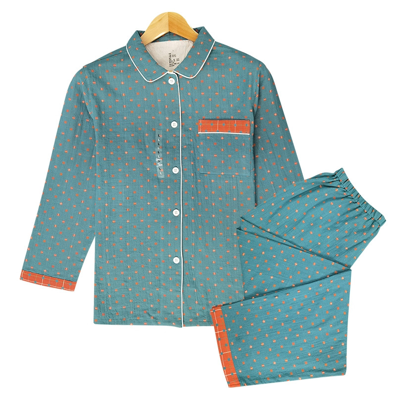皇寝世家2023新嵌线纯棉双层纱长袖长裤家居服套装 812女-布丁格蓝