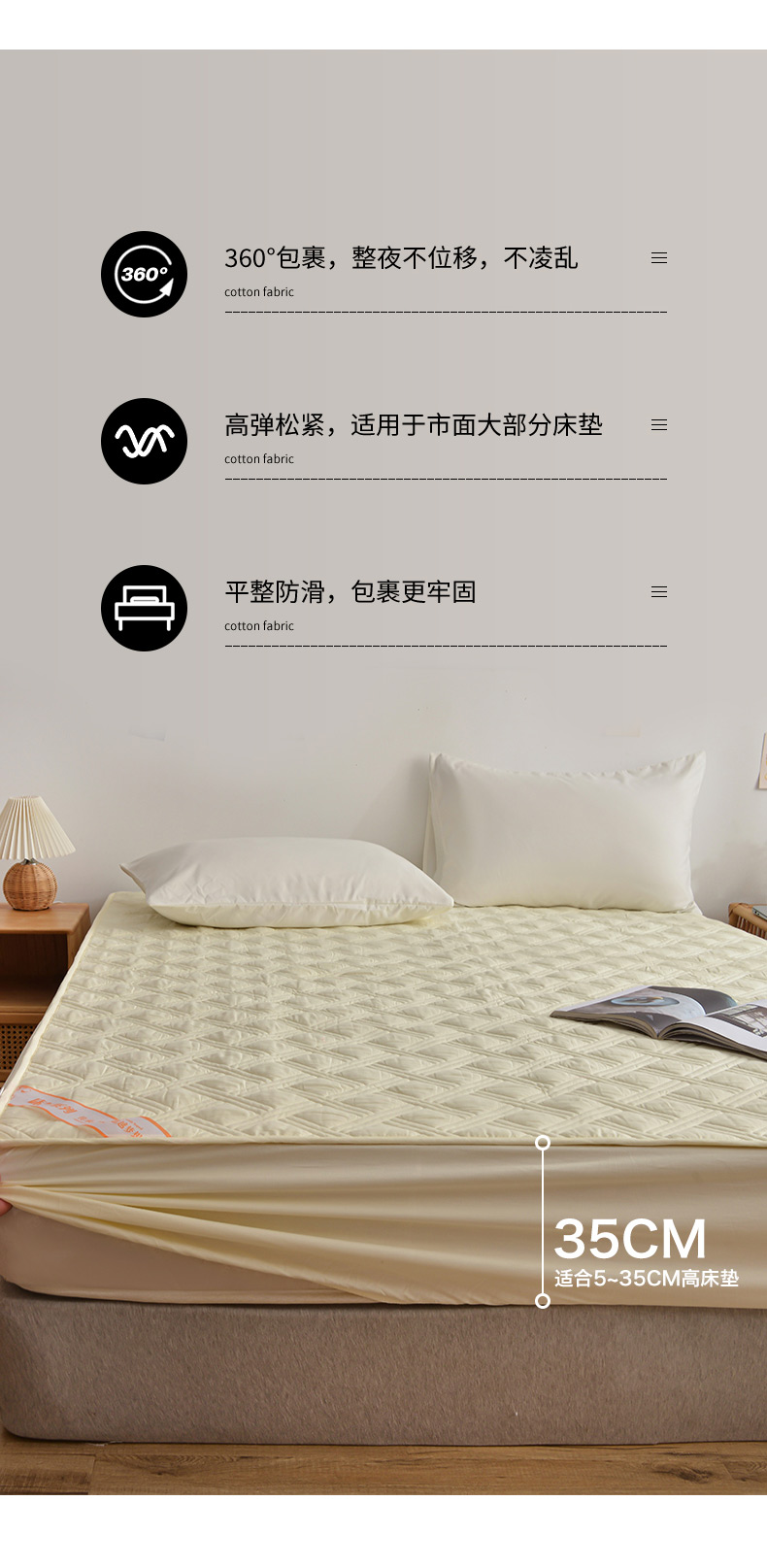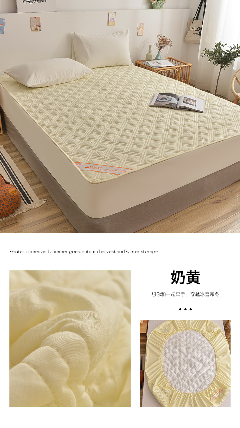 商品名称:梦柏 2023新款13372全棉斜纹夹棉床笠 奶黄