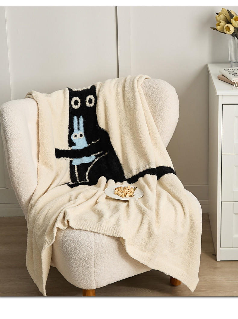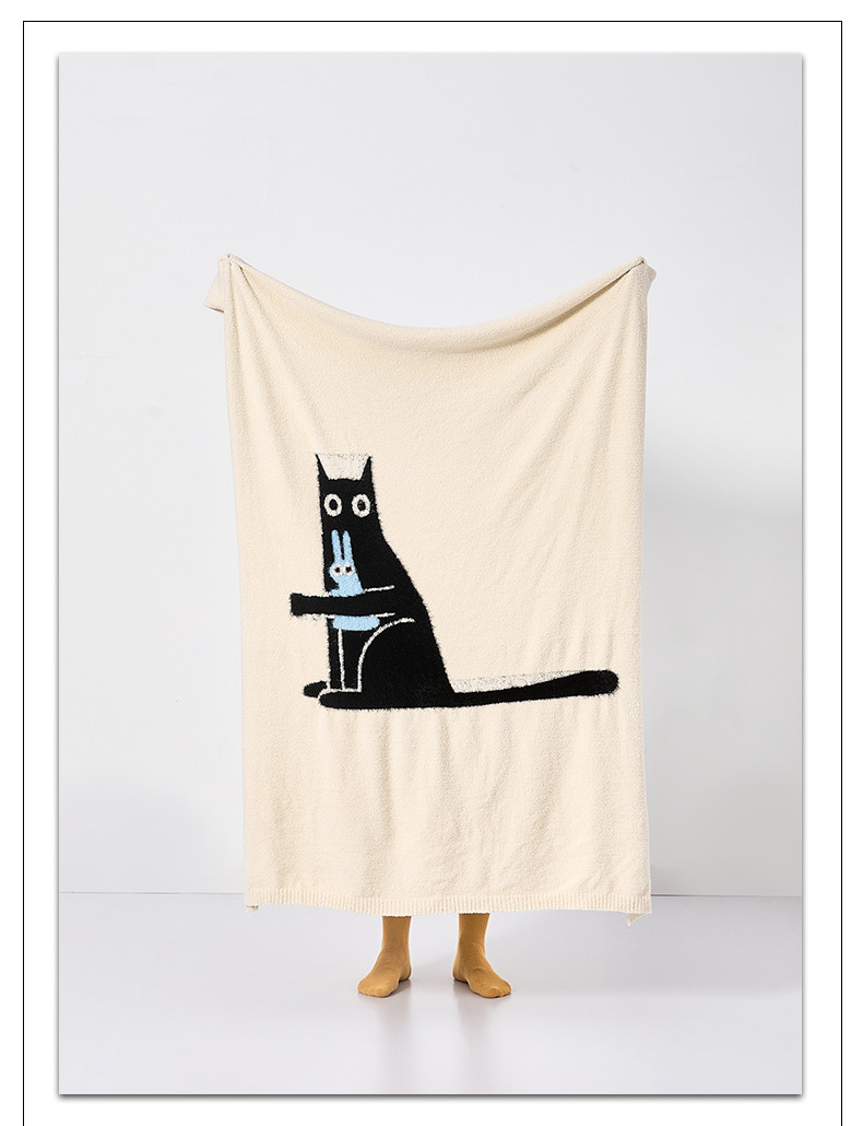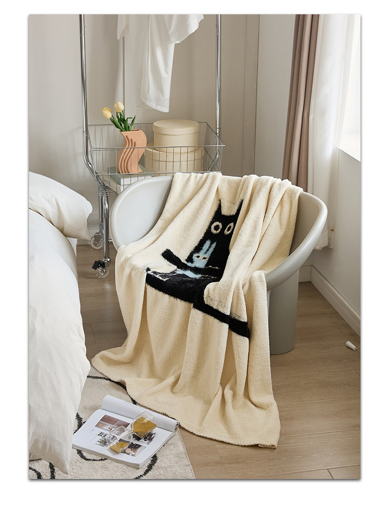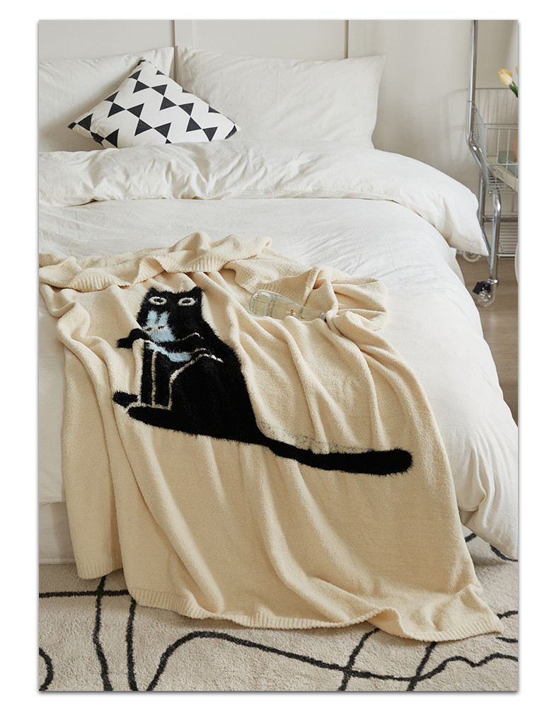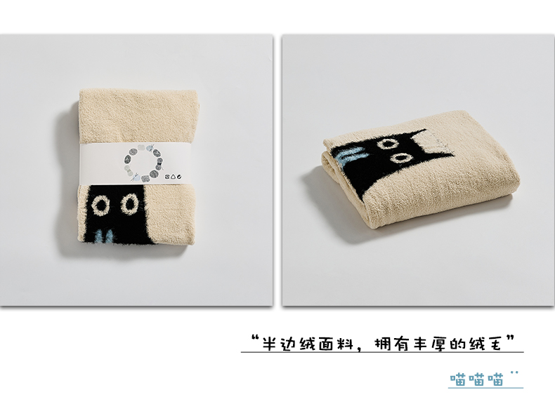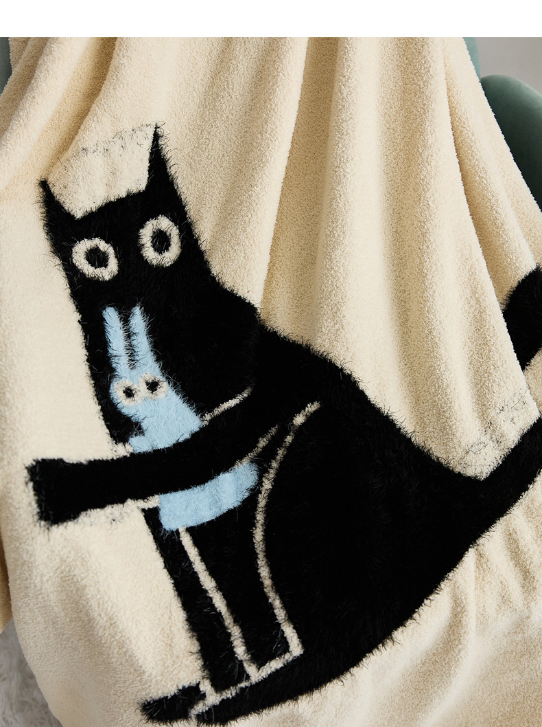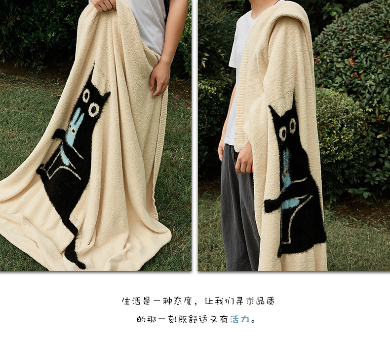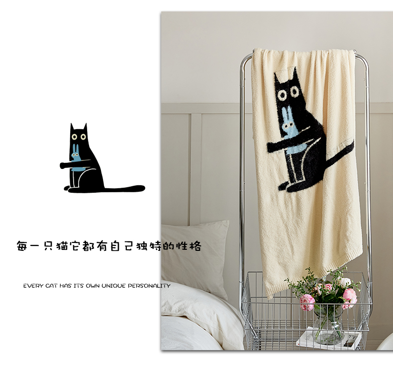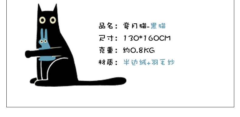 商品名称:暖绵绵 新款半边绒毛毯-弯月猫系列 弯月猫-黑猫