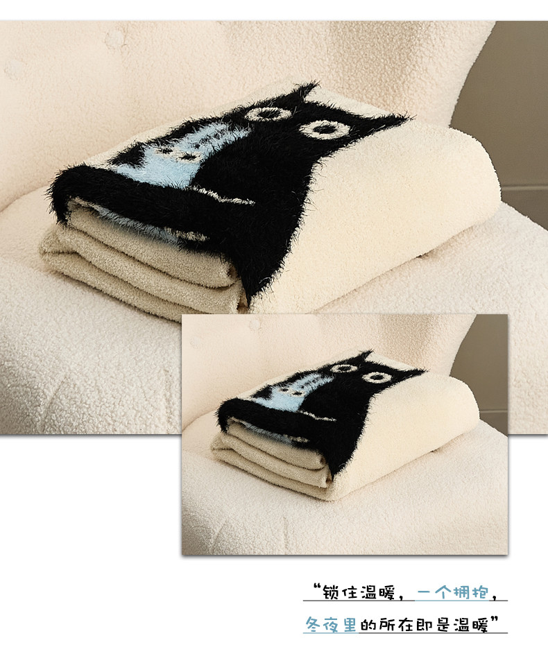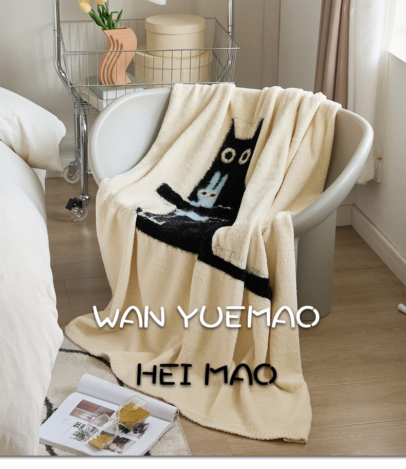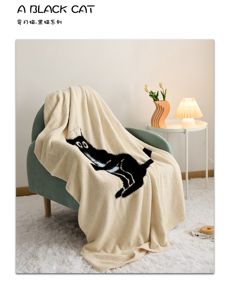 暖绵绵 新款半边绒毛毯-弯月猫系列 弯月猫-黑猫