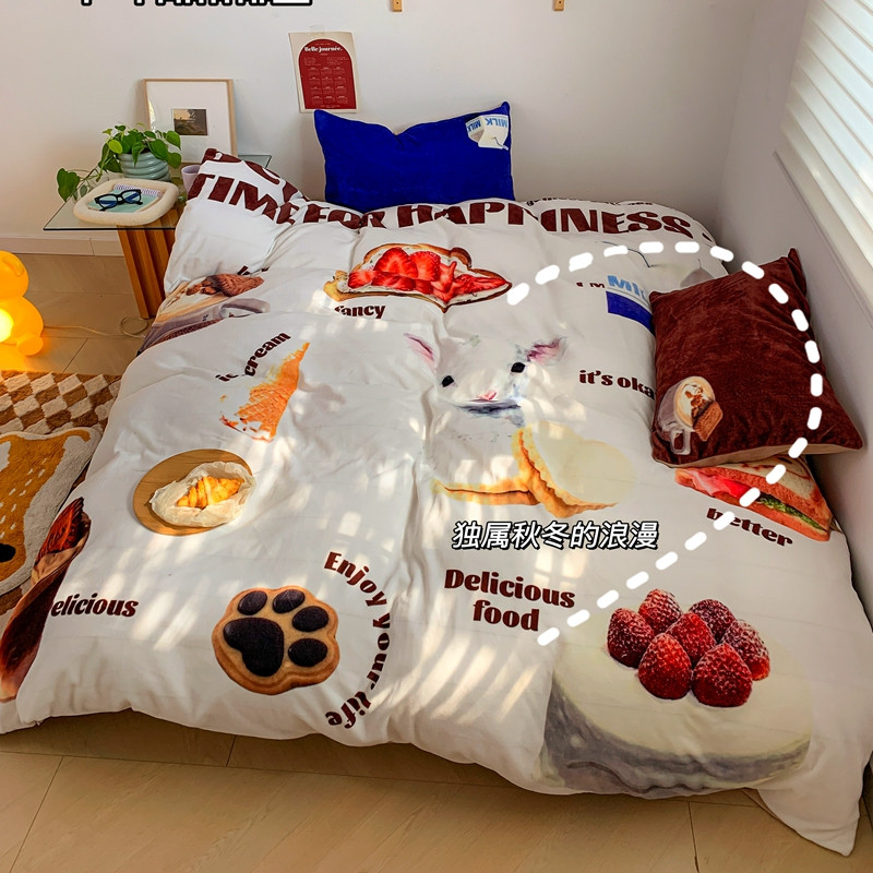 (总)顾里家纺 2024新款ins韩风甜感刺绣标牛奶绒四件套,蛋糕狗狗,烛台小熊,ins可颂,ins苹果,ins沙发狗,ins小象,ins樱桃猫