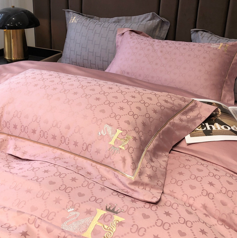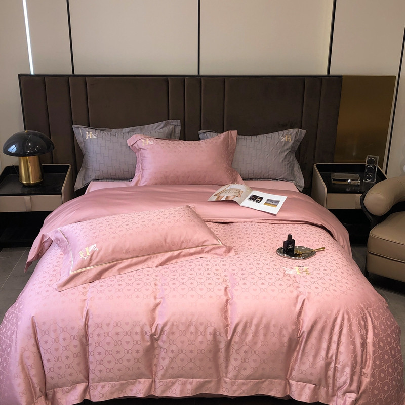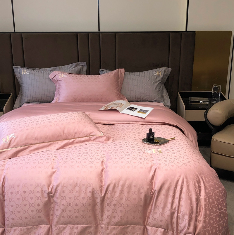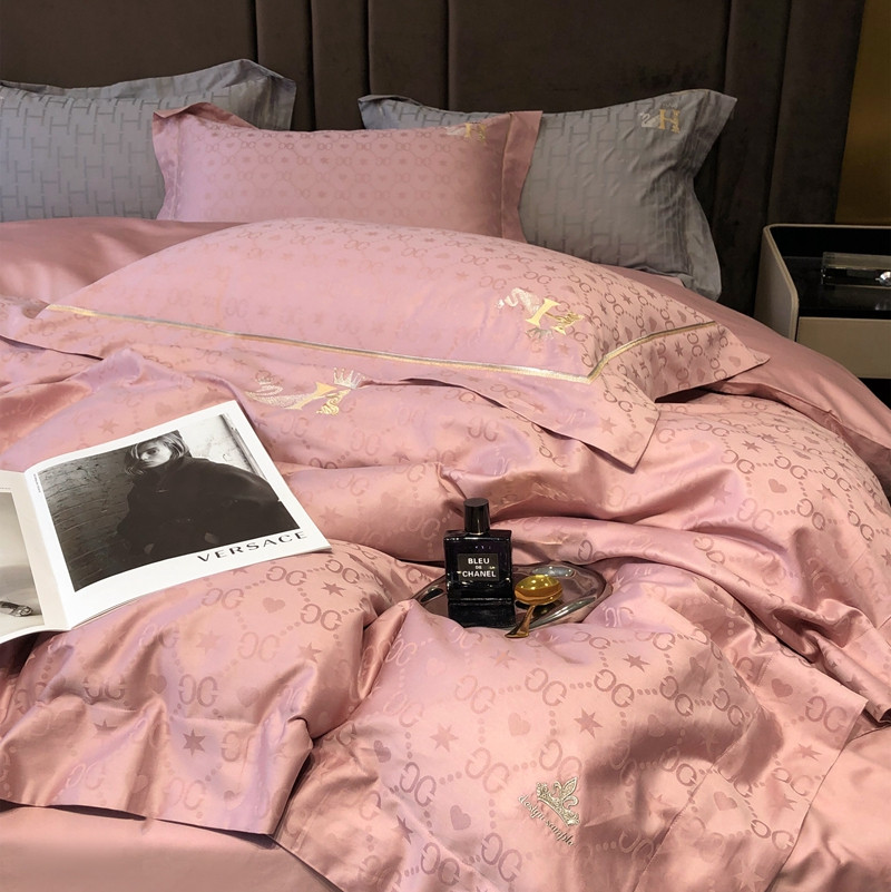 玖玖爱 2023新款120支贡缎提花四件套 古琦豆沙