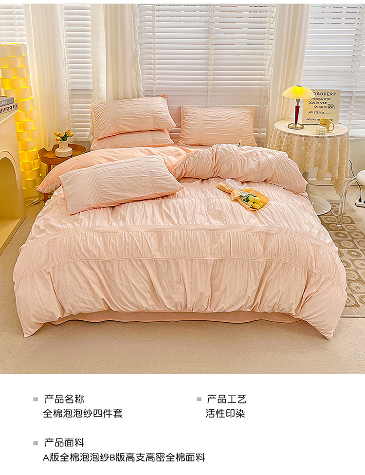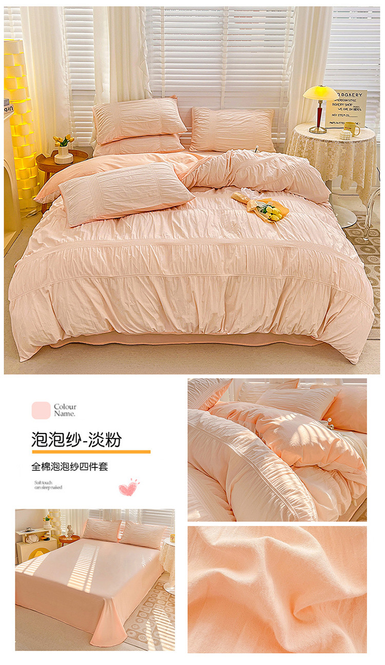 当前位置: 91家纺网 > 商品网购 > 床品套件 > 四件套 > 全棉普通四件套 > 娜娜 2022新款全棉泡泡纱四件套 泡泡纱-淡粉