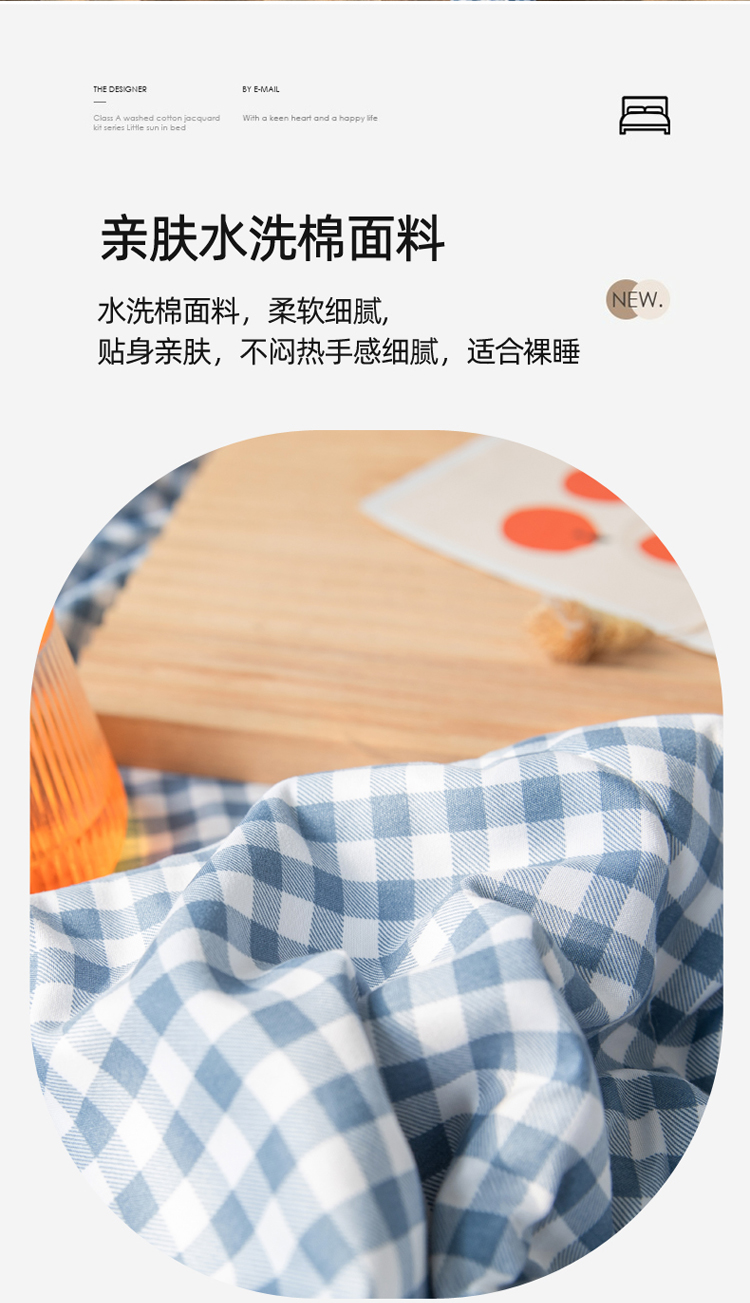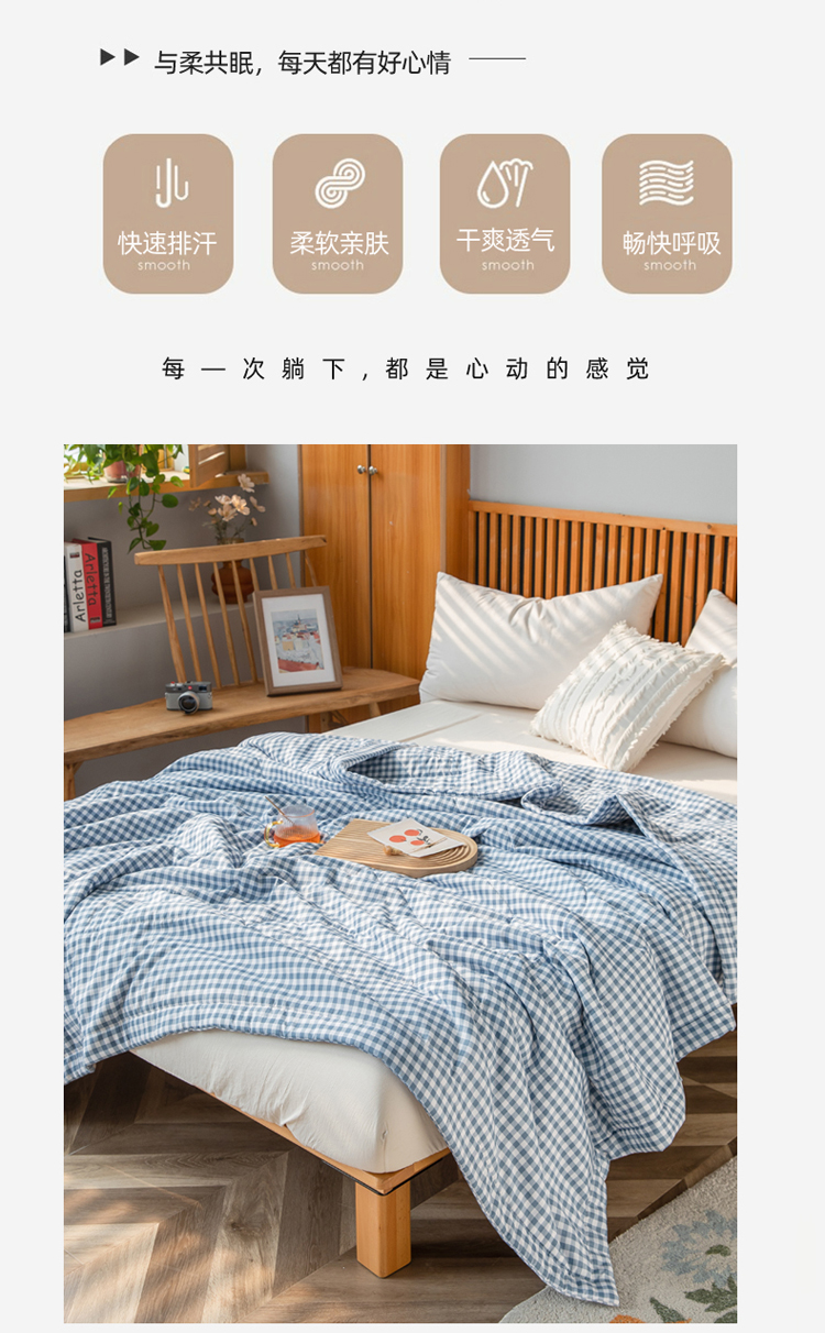 商品名称:久云居 2024新款水洗棉新疆棉花被格纹夏被 海蓝格