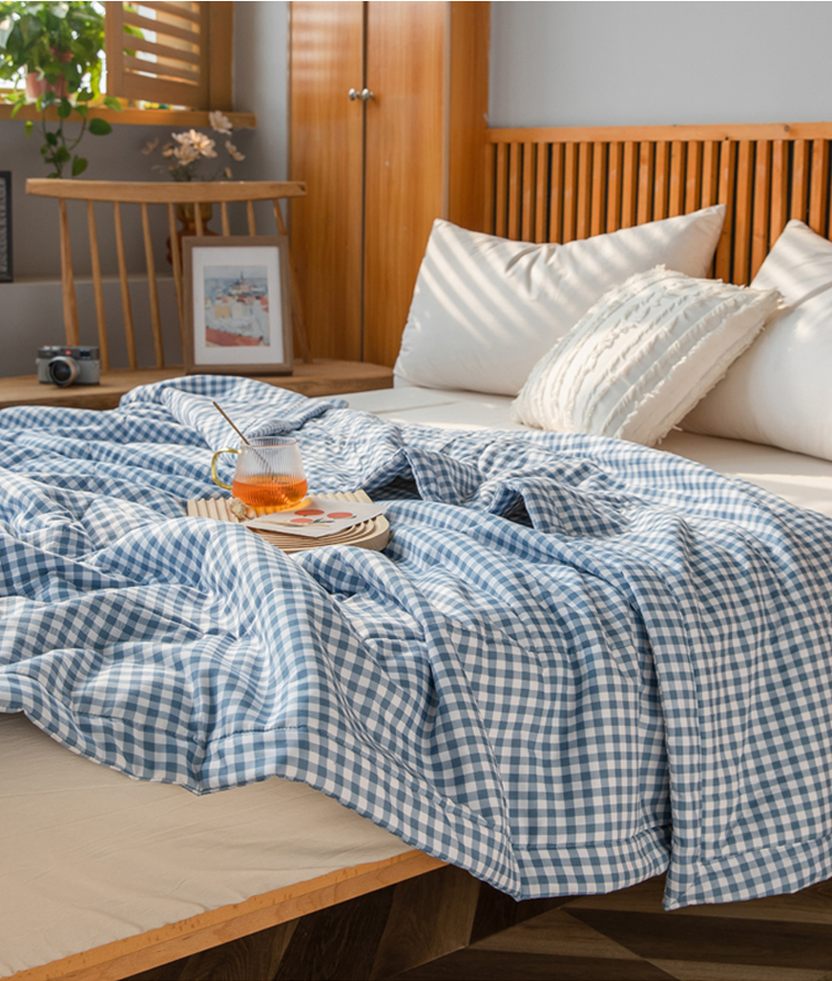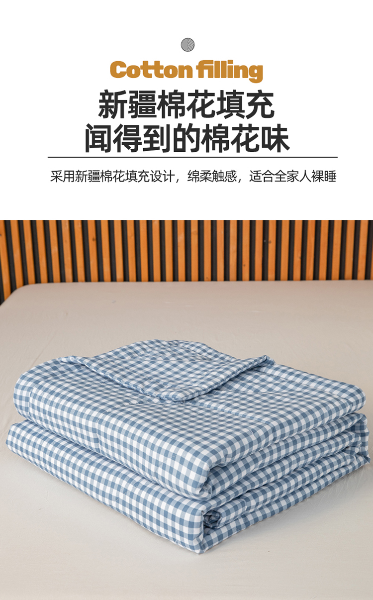 久云居 2024新款水洗棉新疆棉花被格纹夏被 海蓝格