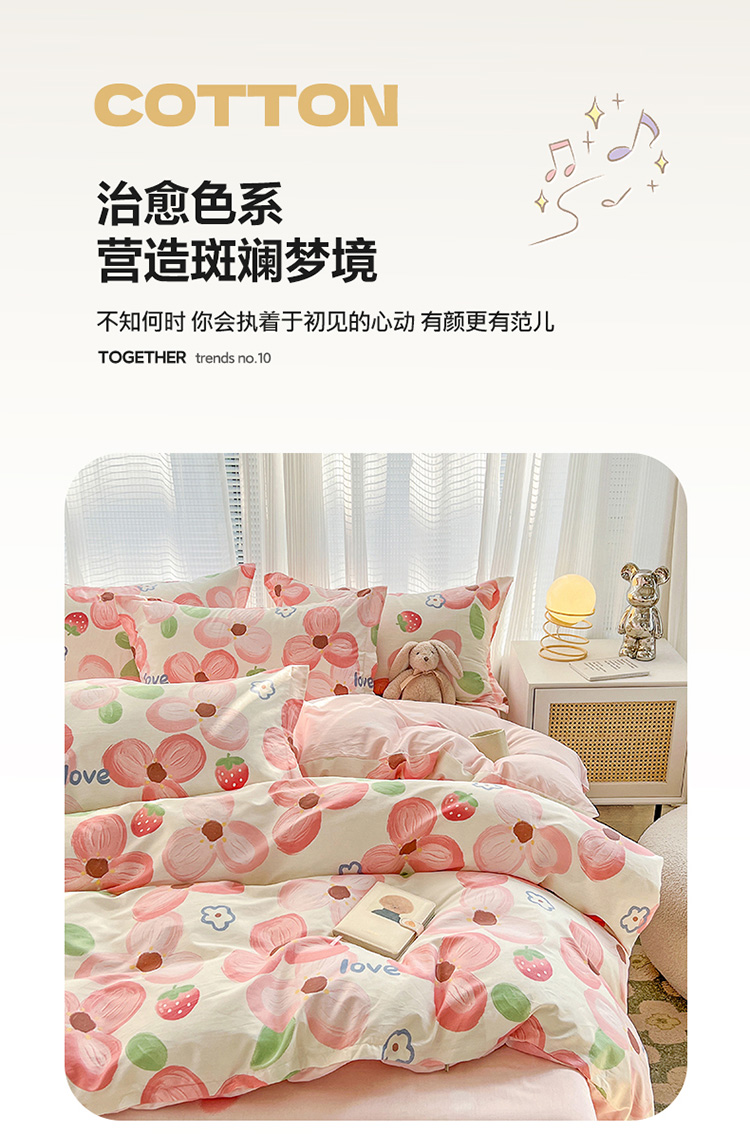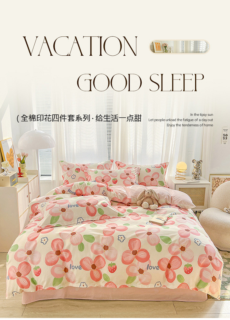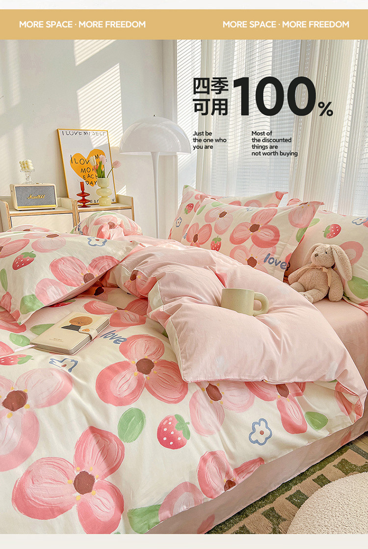 总盛馨家纺 2023新款ins北欧风高支高密全棉喷气小清新纯棉四件套,花丛兔,锦鲤,快乐小狗,梦幻,梦境小兔,入夏,若微,溪沐,叶墨新晨,樱桃兔,星球家园,草莓兔,花粉兔,花花小熊,花开富贵,花蓝兔,花胥梦粉,花韵,狂想曲蓝,萌宠乐园,蜜桃公主,莫奈花园蓝,奇妙幻想蓝,曲奇小熊,圣歌娜,诗情画意,桃桃兔,甜蜜小花,文特森 咖,小黄鸭,叶叶小花,油画草莓,丛林家园,粉色花海,可可大草莓,浪漫花朵,满庭花开,漫时光,暖阳紫,郁金香小兔