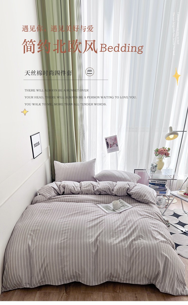 (总)宏源家纺 2023新款天丝棉条纹系列四件套,粗黑条,粗橘条,粗蓝条,粗绿条,粗紫条,细黑白条,细灰条,细蓝条,细绿条,细天蓝条