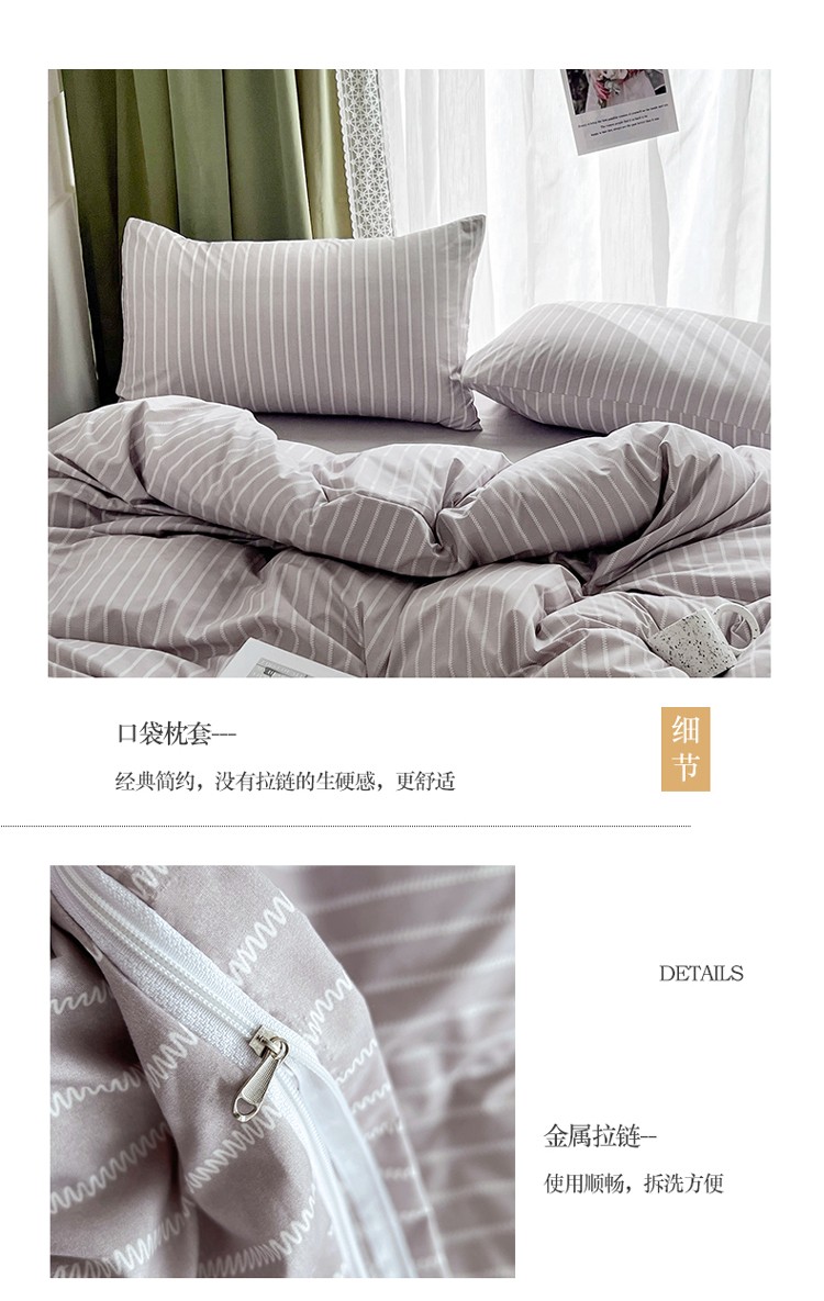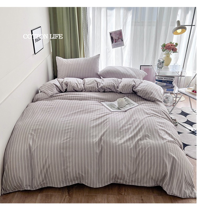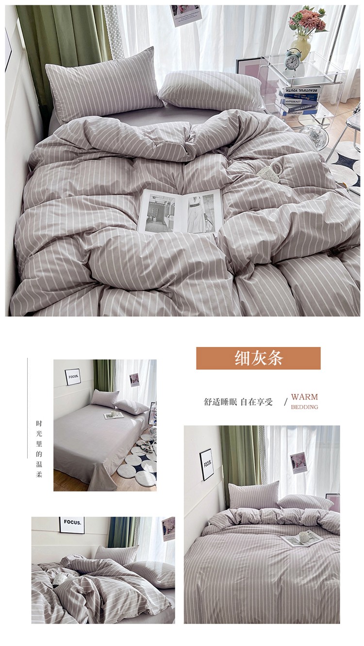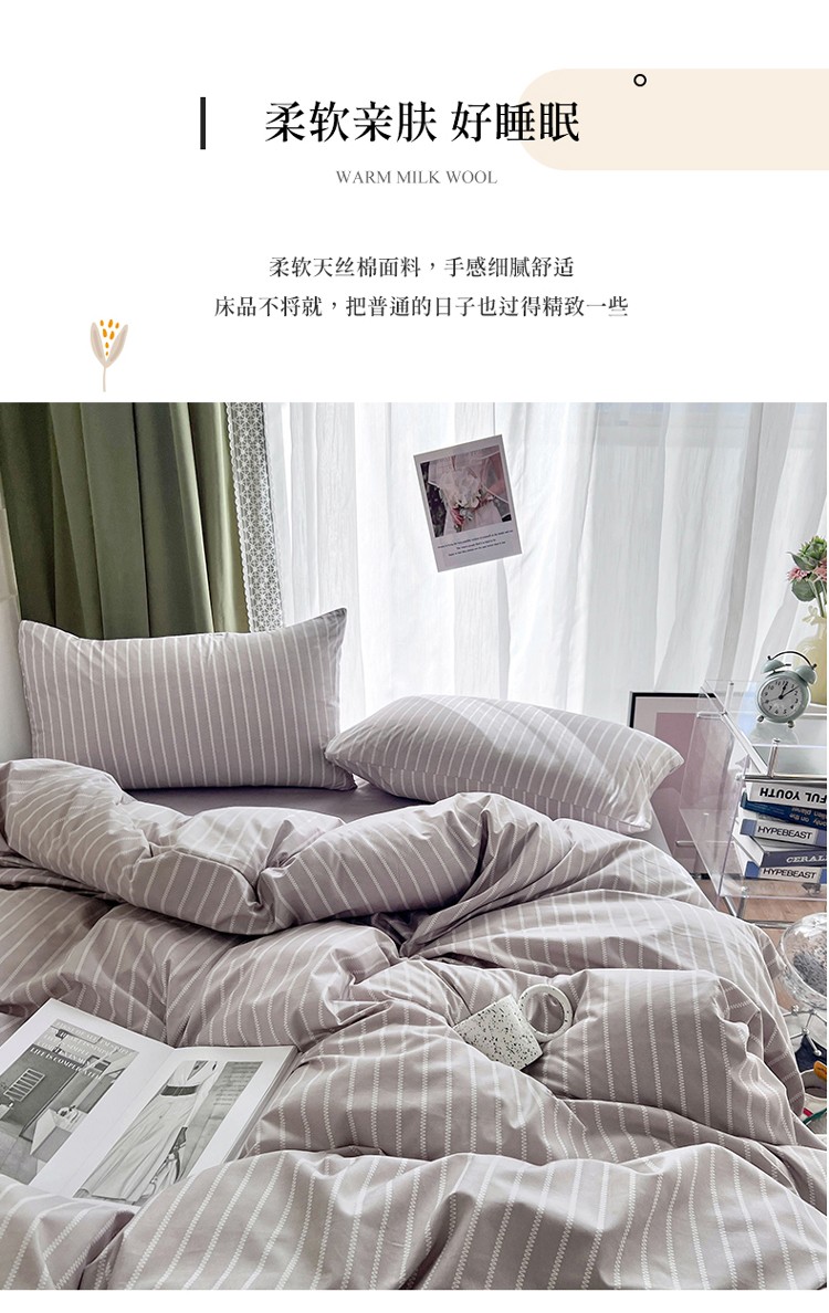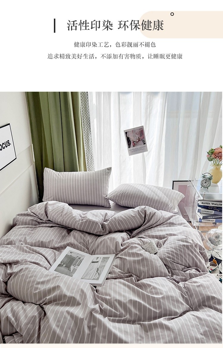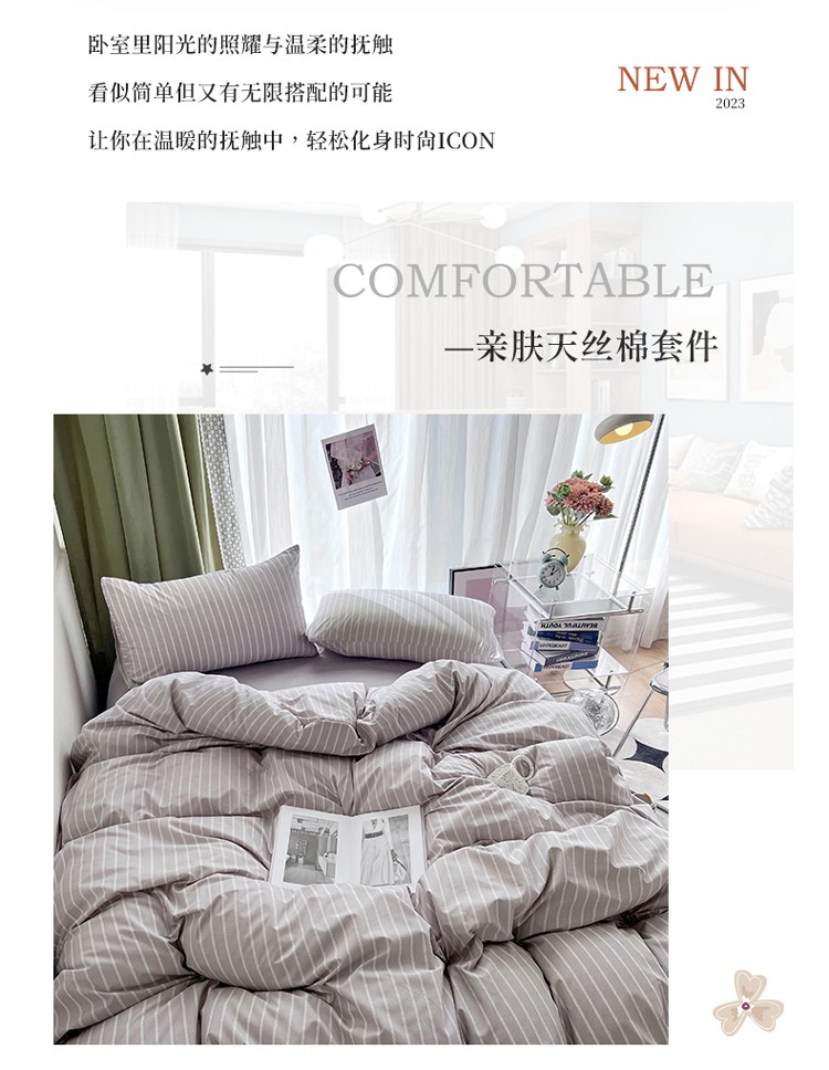 宏源家纺 2023新款天丝棉条纹系列单被套 细灰条