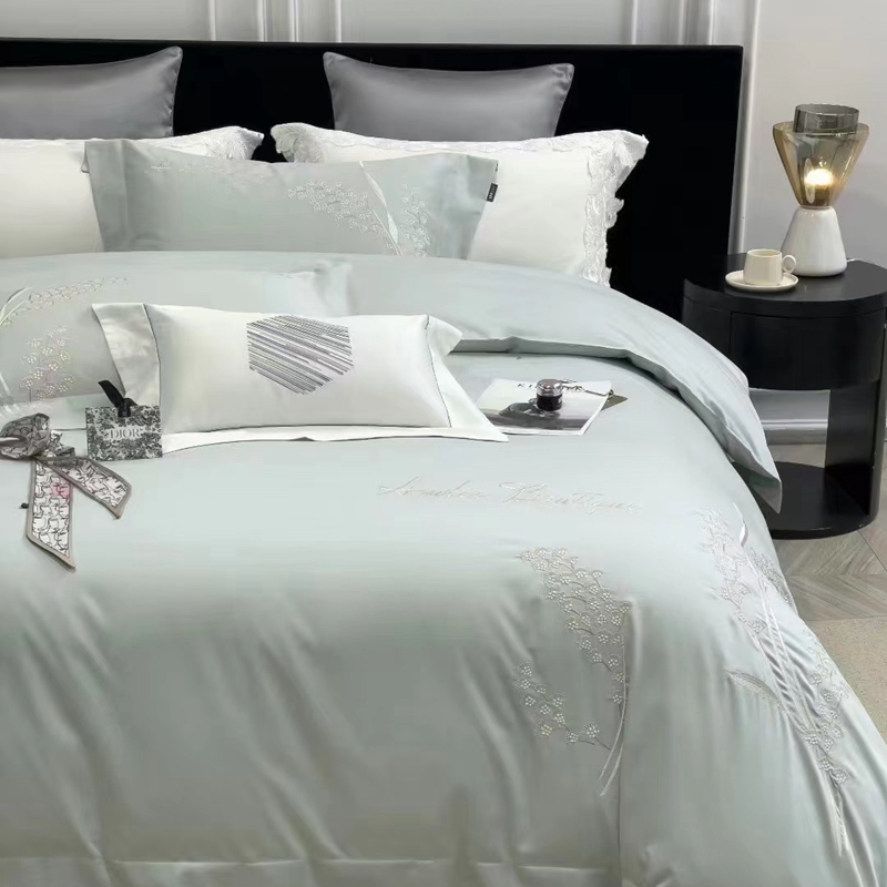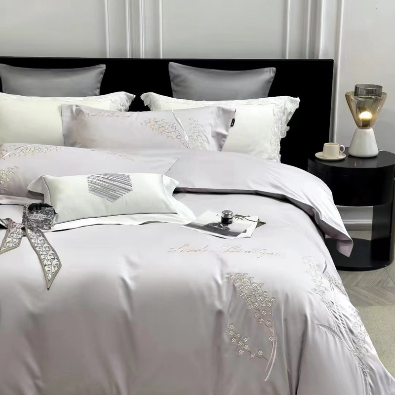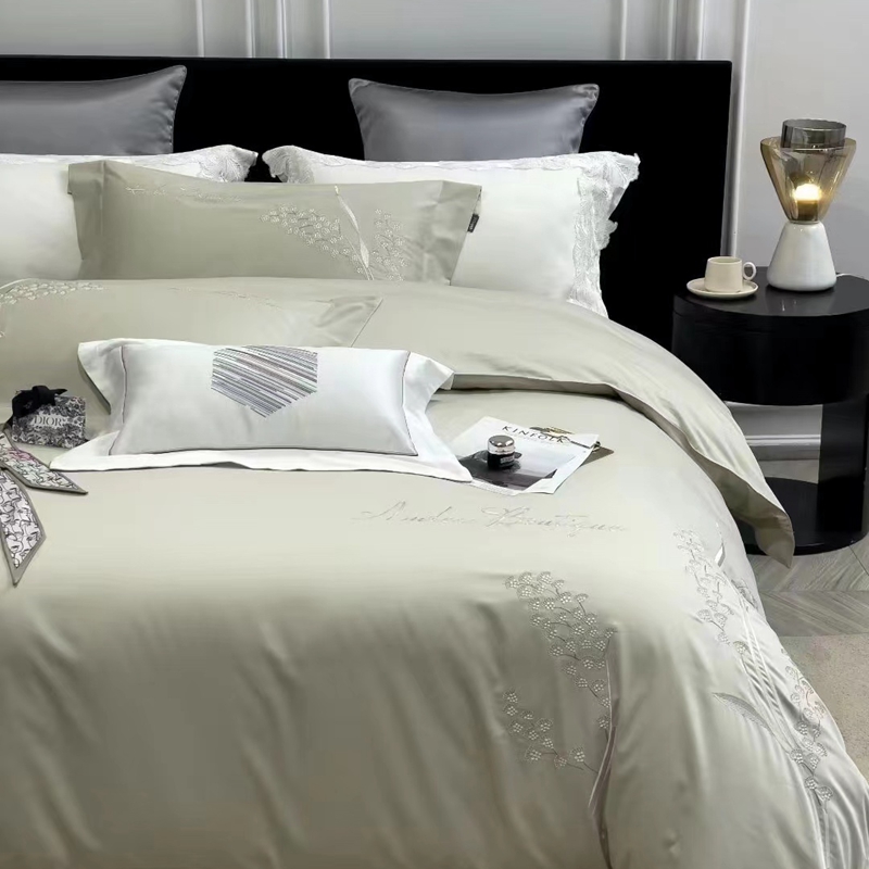 总玖玖爱家纺 纯棉100支贡缎长绒棉刺绣被套三件套四件套加大四件套,白色,高级灰,卡其,蓝灰,绿色,浅桔,深蓝,紫豆沙
