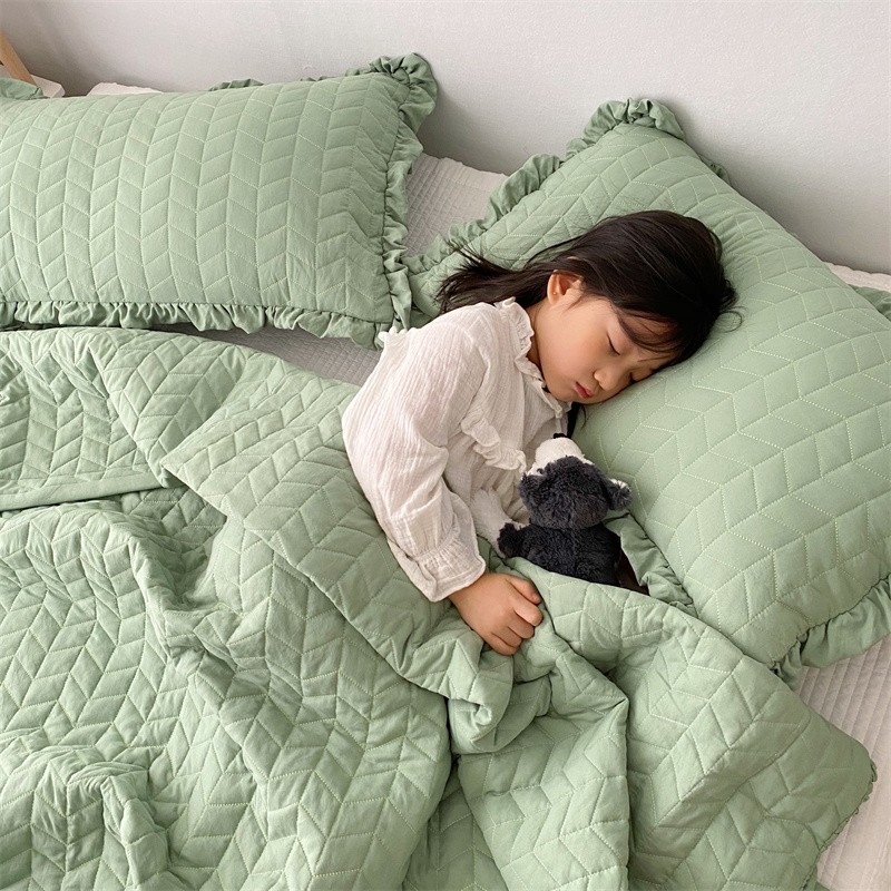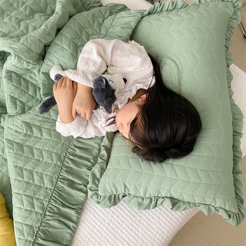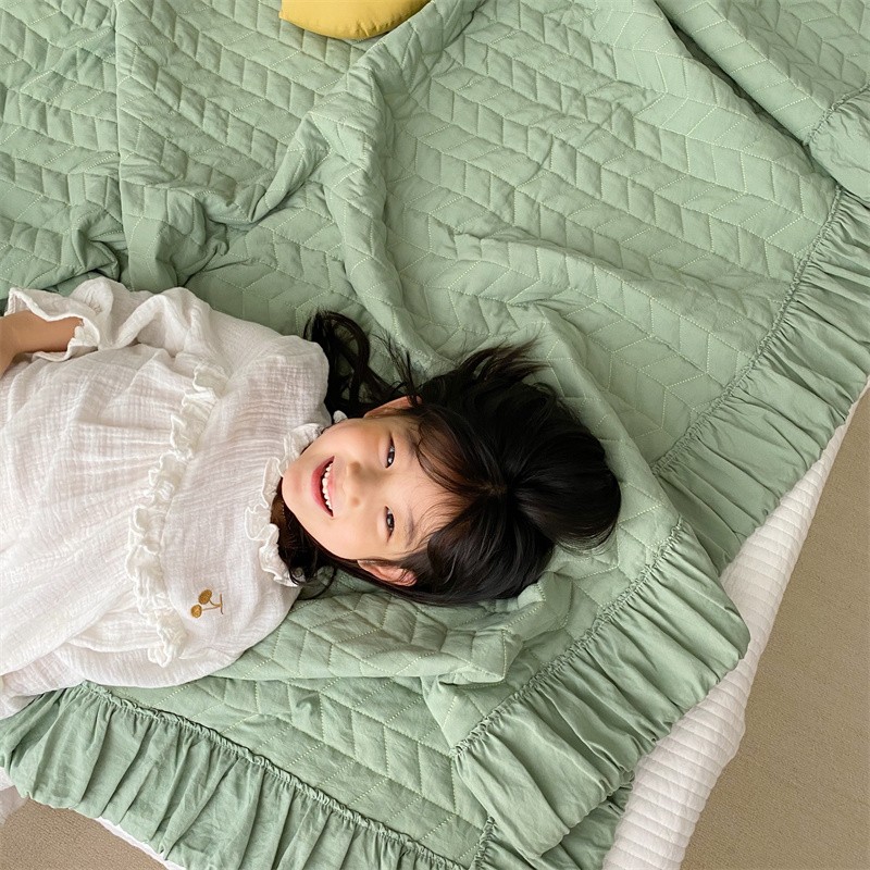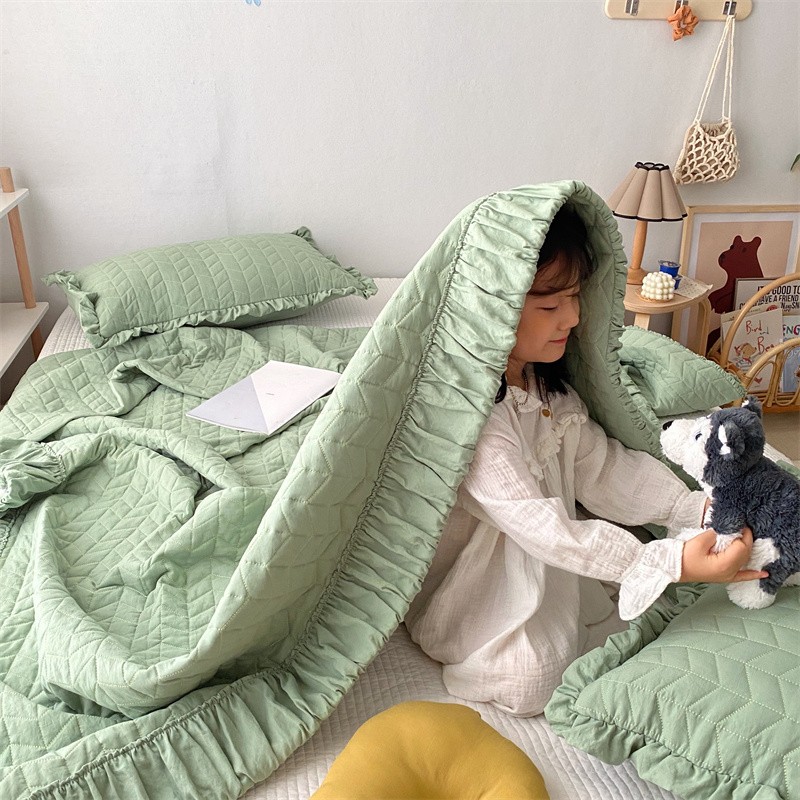 乐卧家居 2026新款韩国INS风简约时尚绗缝荷叶边夏被 绿色