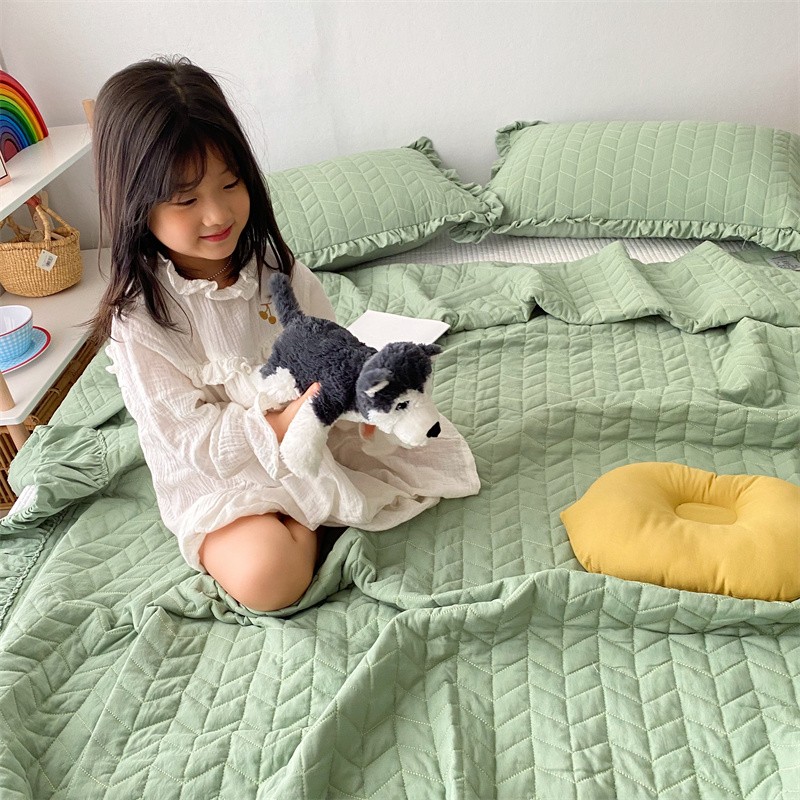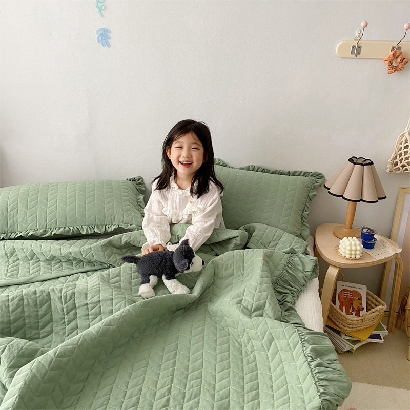 商品名称:乐卧家居 2026新款韩国INS风简约时尚绗缝荷叶边夏被 绿色