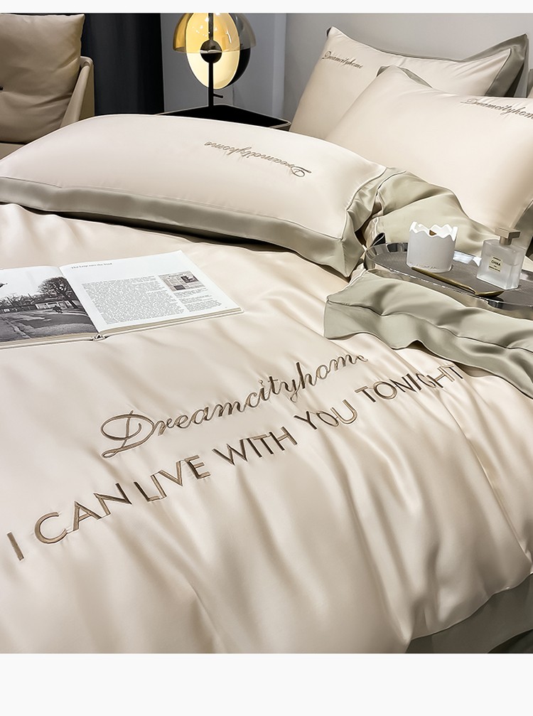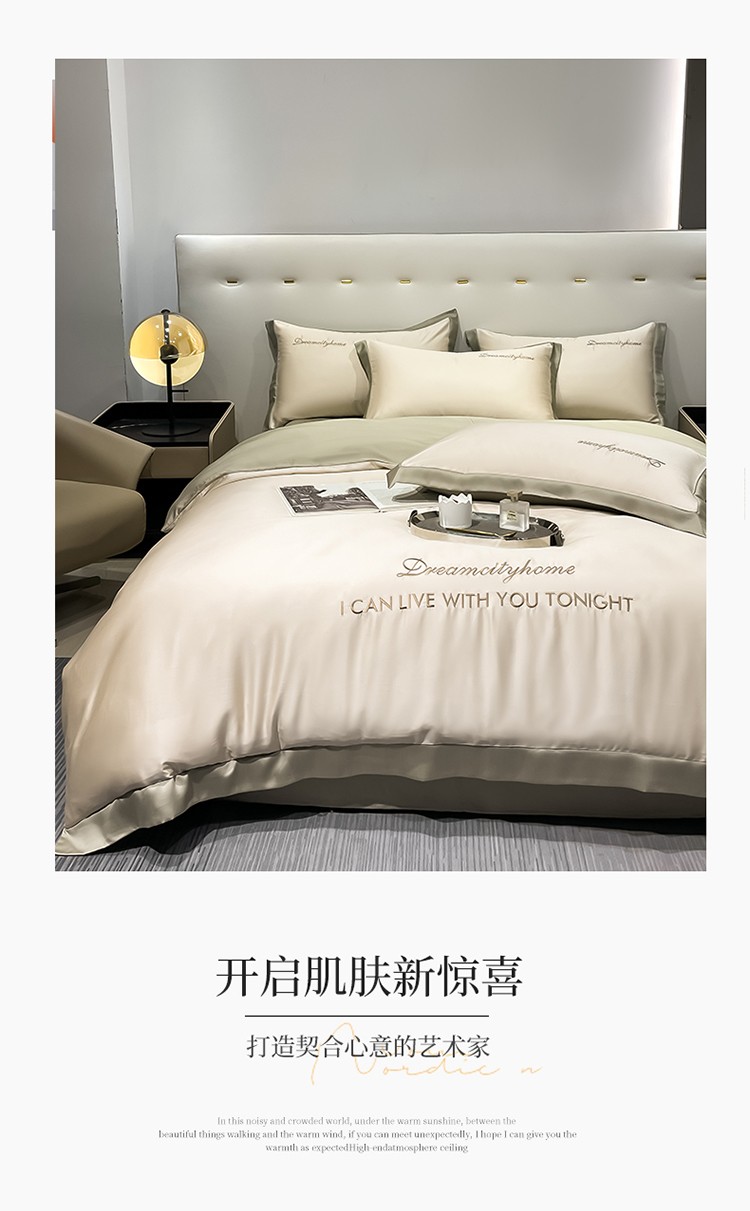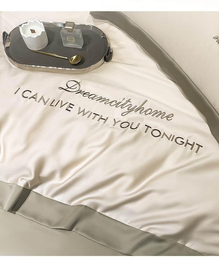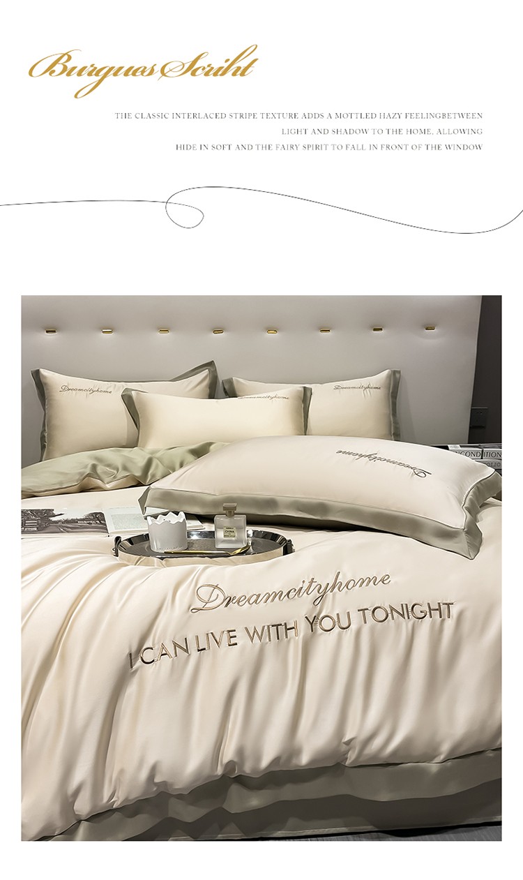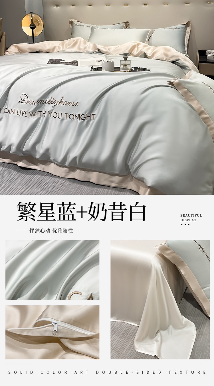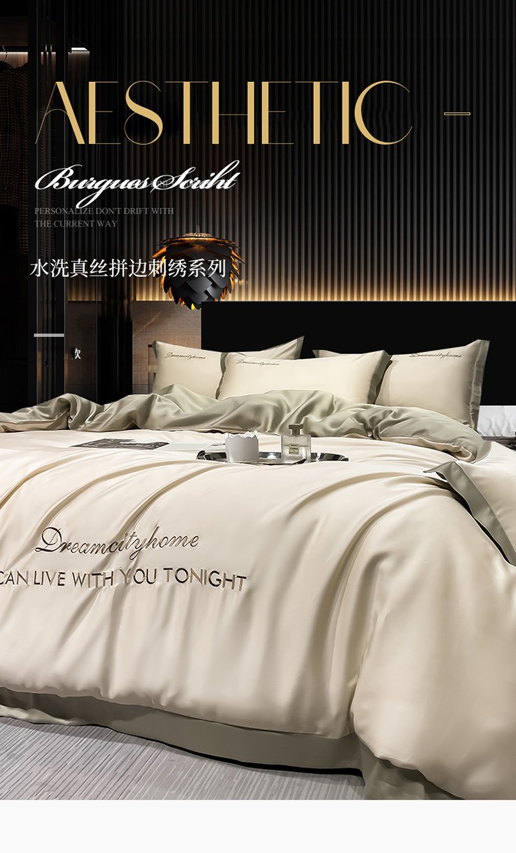 商品名称:(总) 梦幻之城 2023新款水洗真丝拼边两排字母四件套--曼森系列
