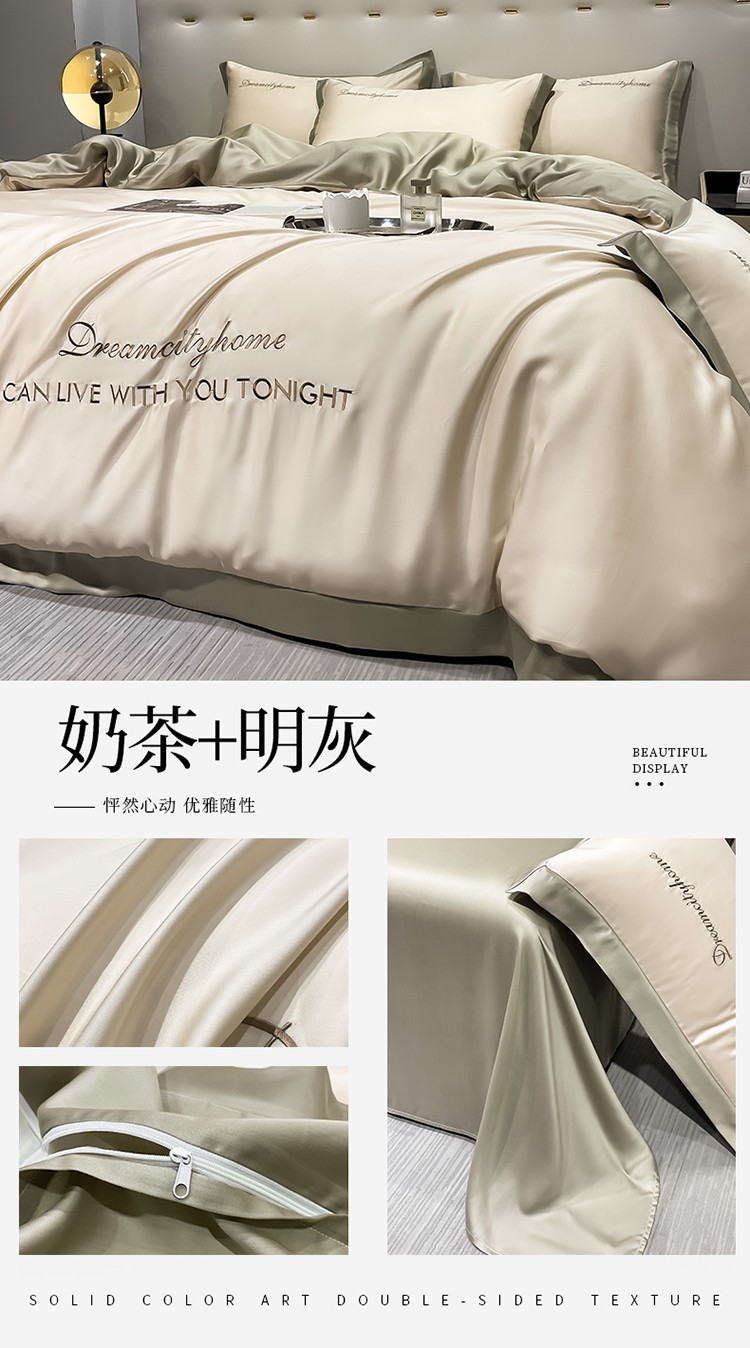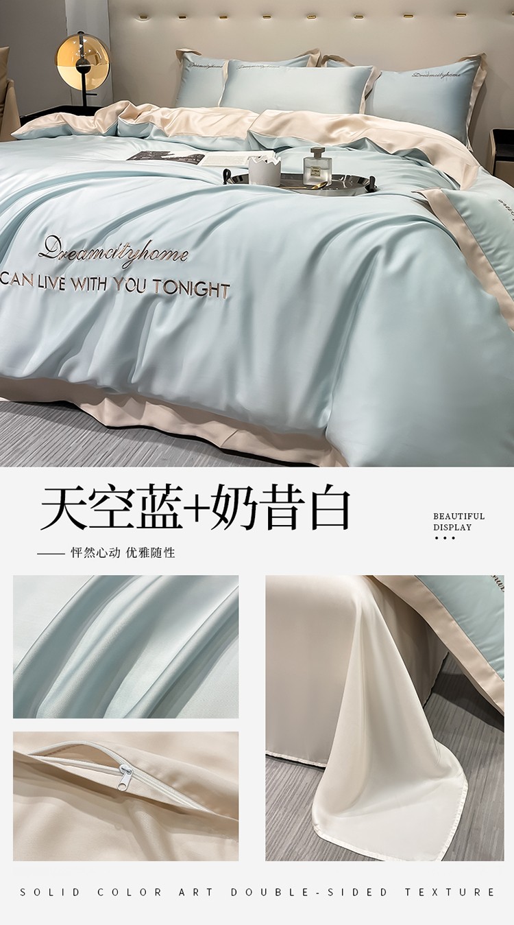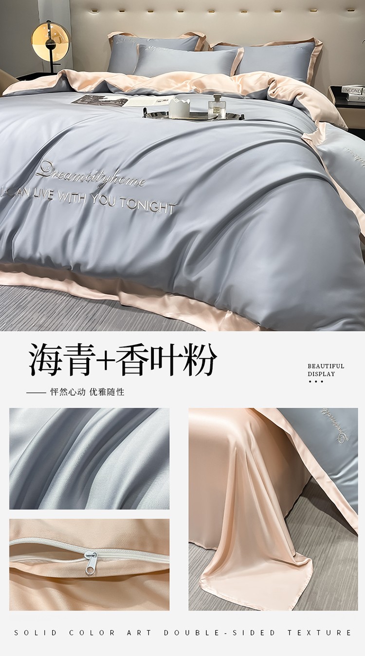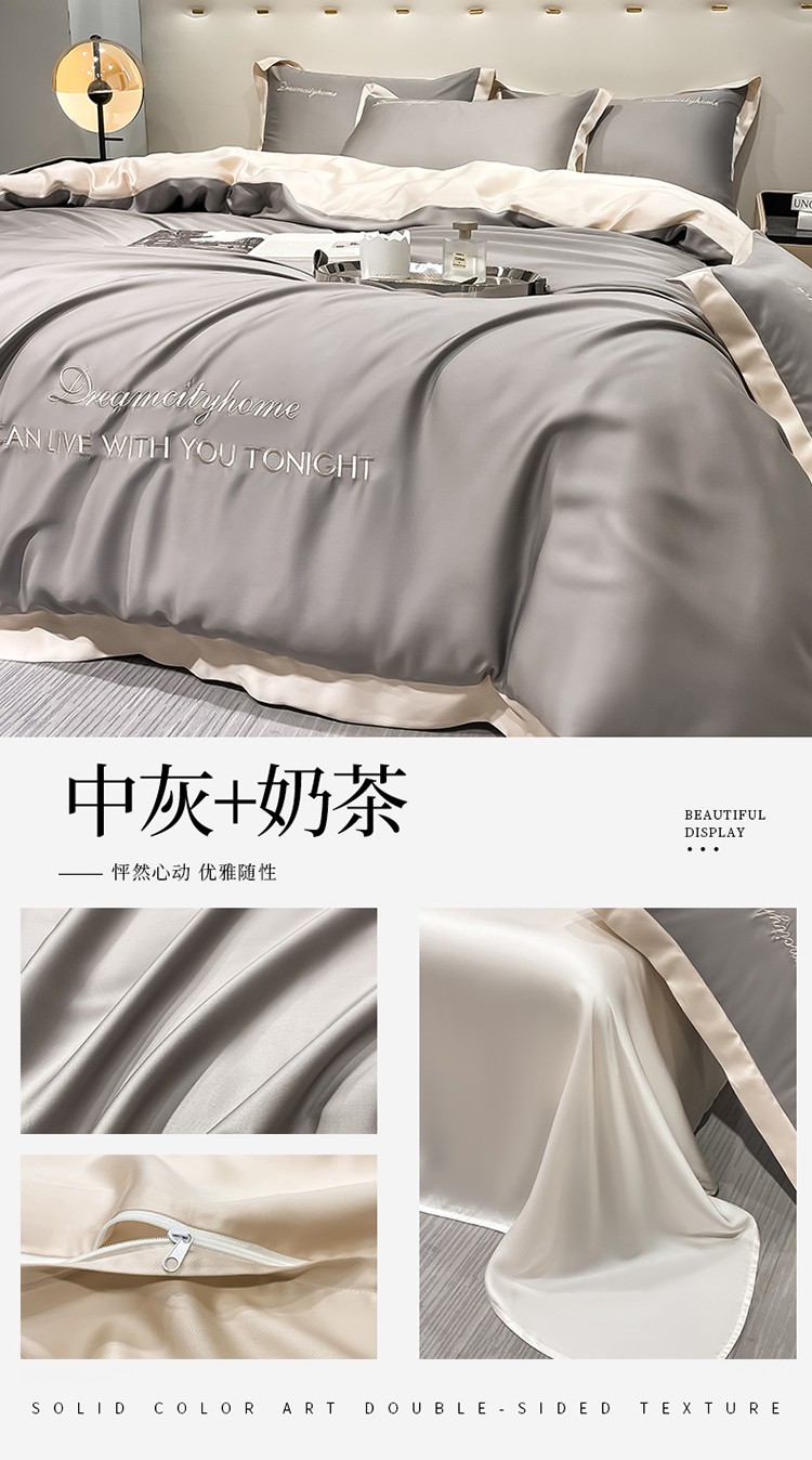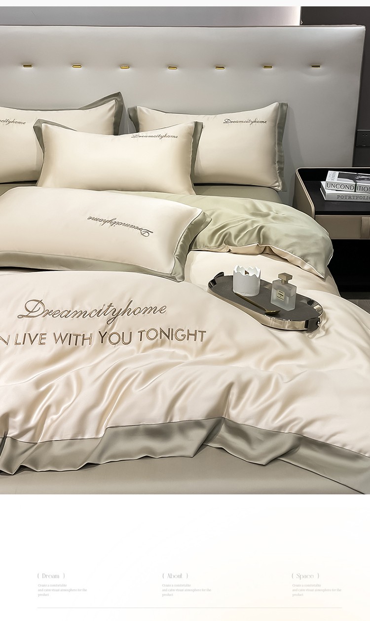 商品名称:(总) 梦幻之城 2023新款水洗真丝拼边两排字母四件套--曼森系列