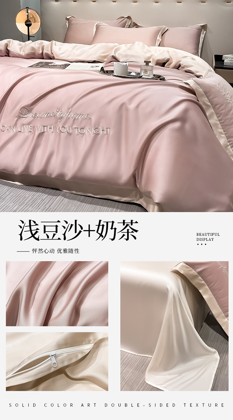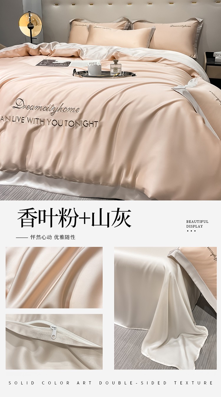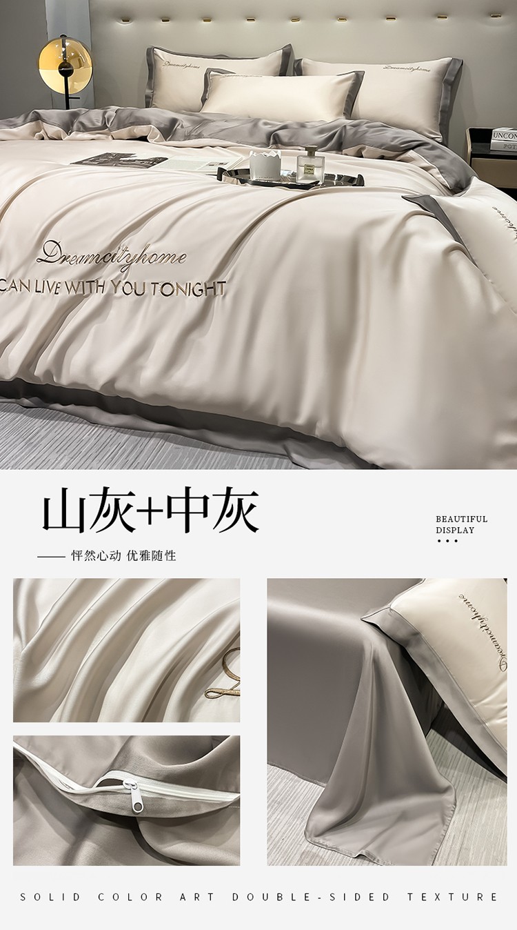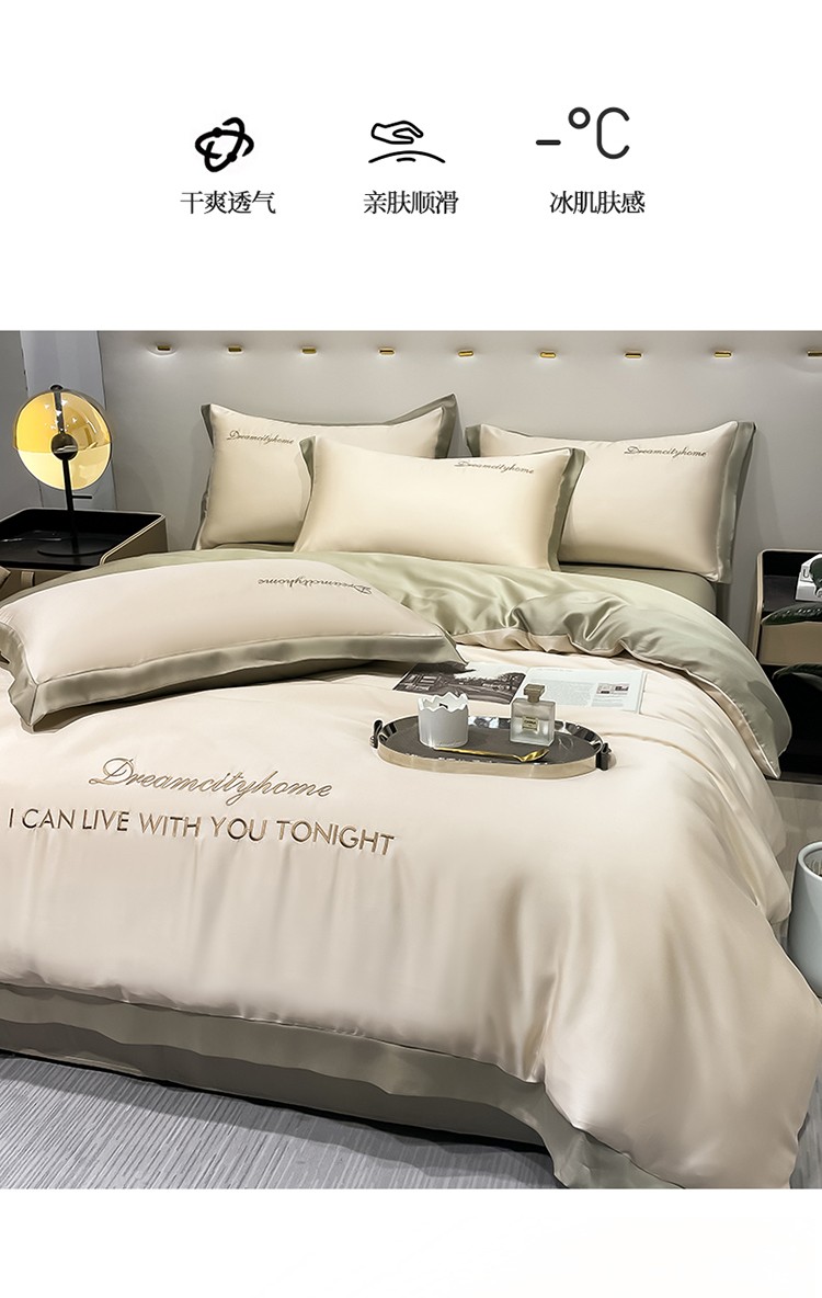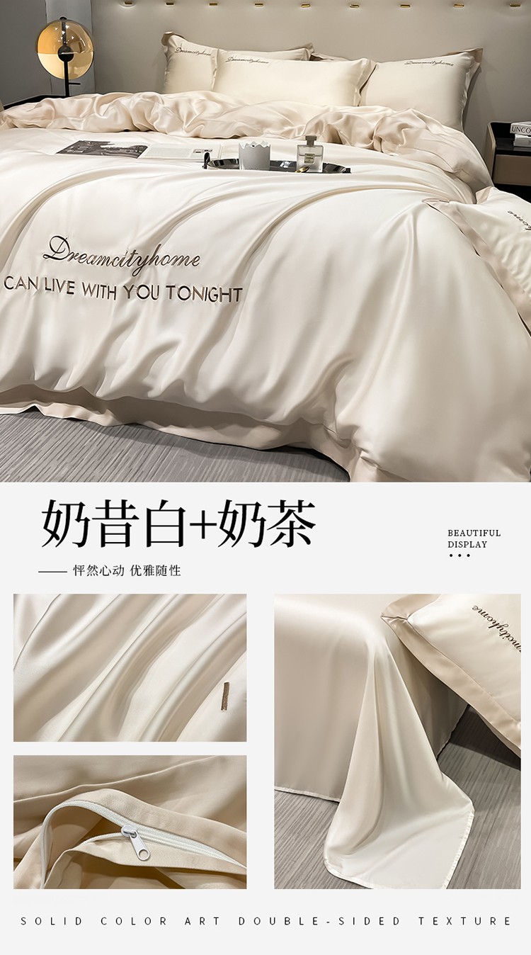 商品名称:(总) 梦幻之城 2023新款水洗真丝拼边两排字母四件套--曼森系列