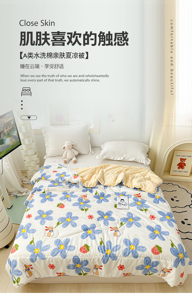 商品名称:寐居 2023新款A类亲肤水洗棉夏凉被 花兔