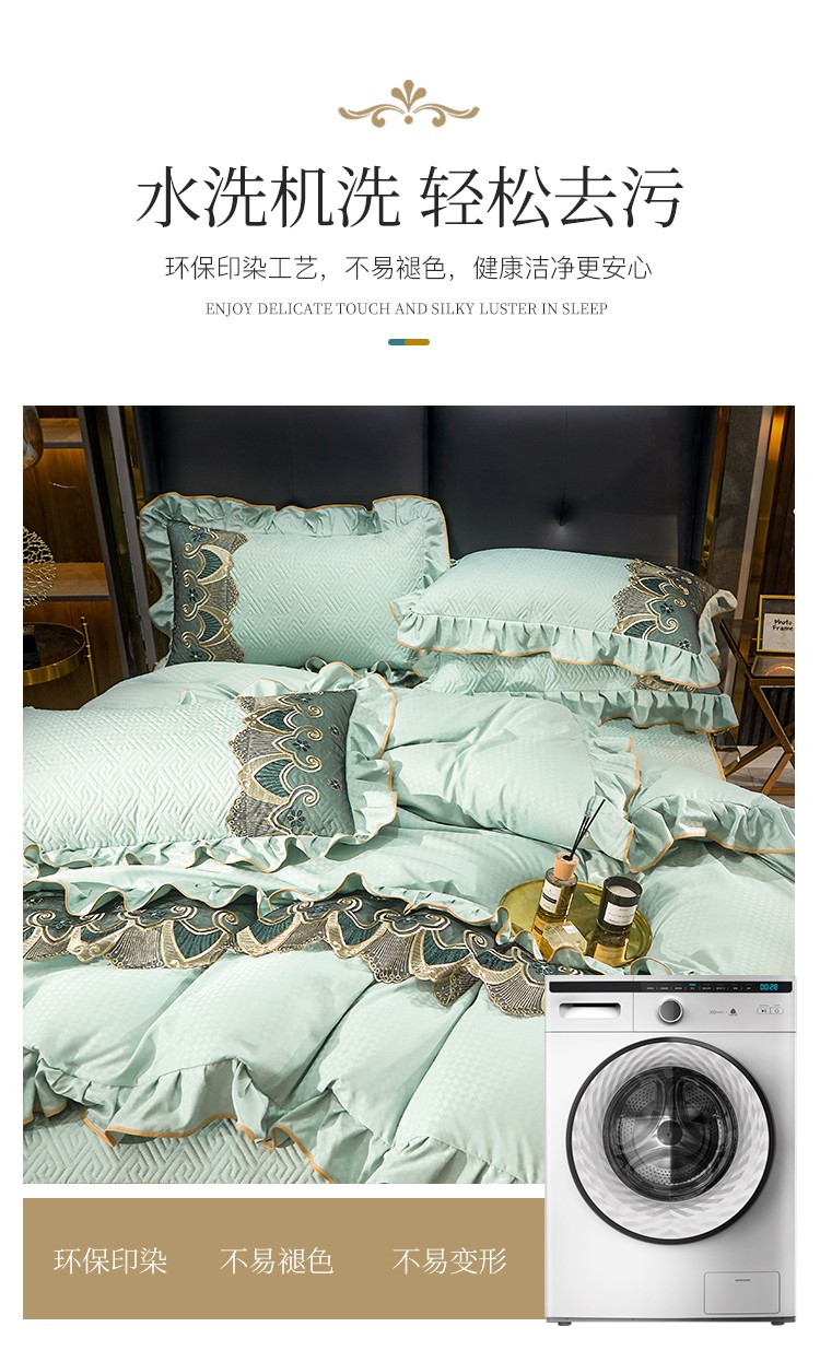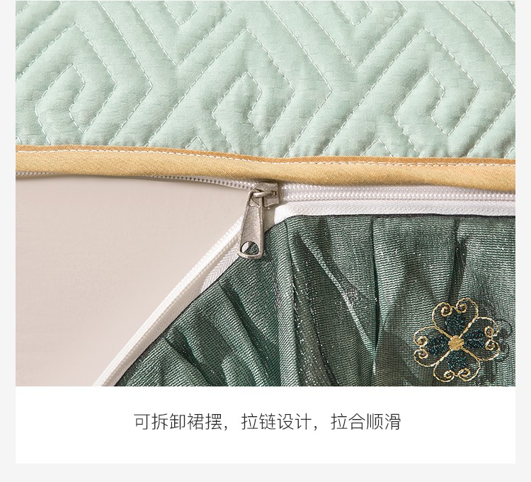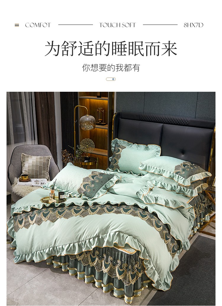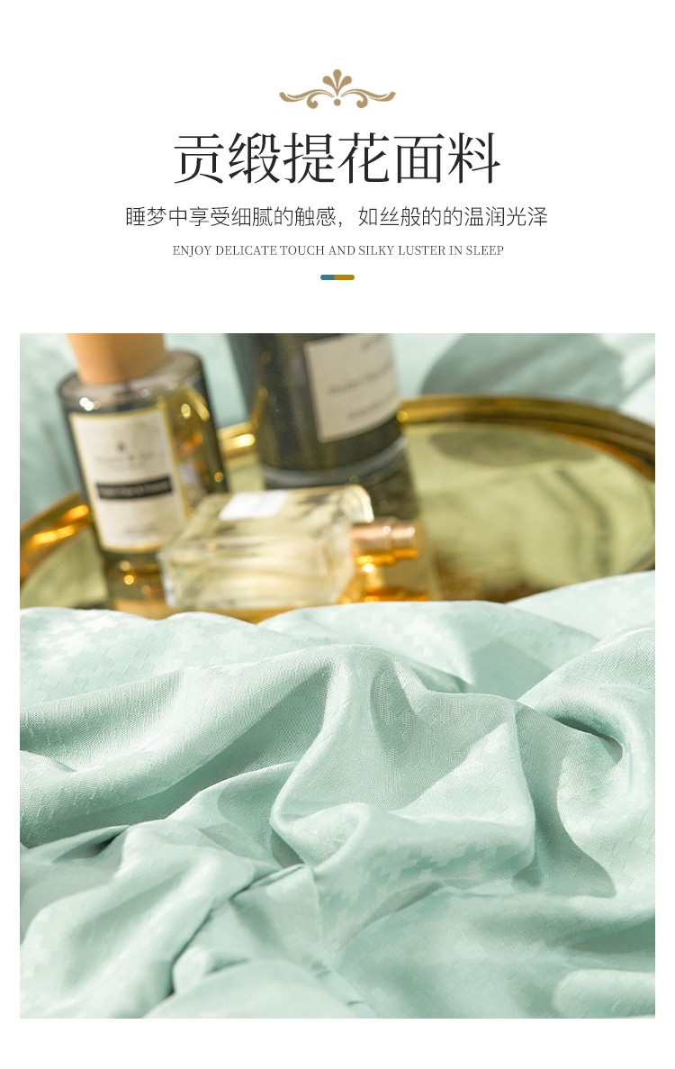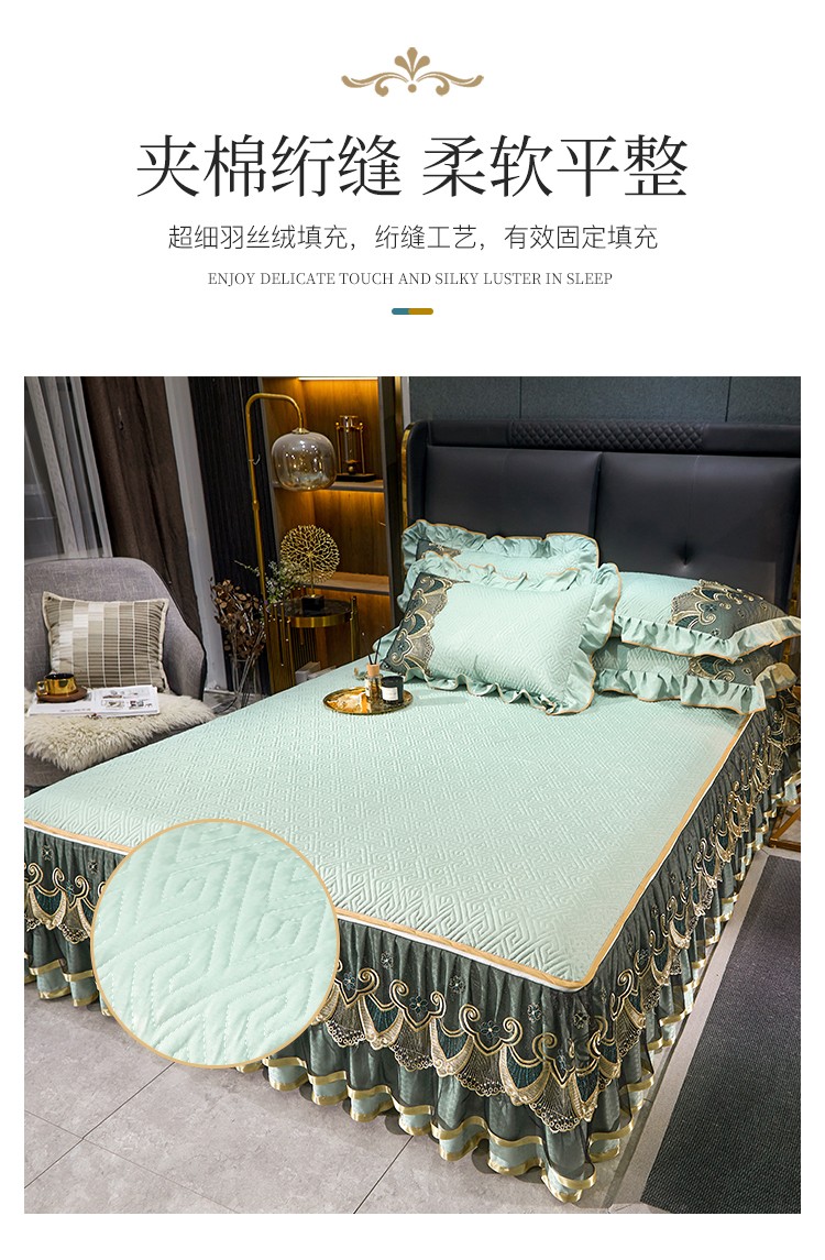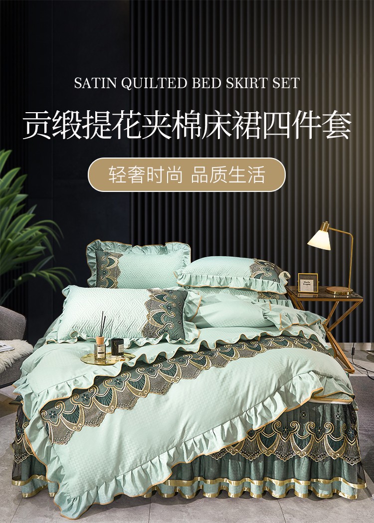 • 91家纺网 家纺一手货源 找家纺 罗艺轩 2024新款贡缎提花夹棉床裙四件套千鸟格系列 千鸟格-薄荷色