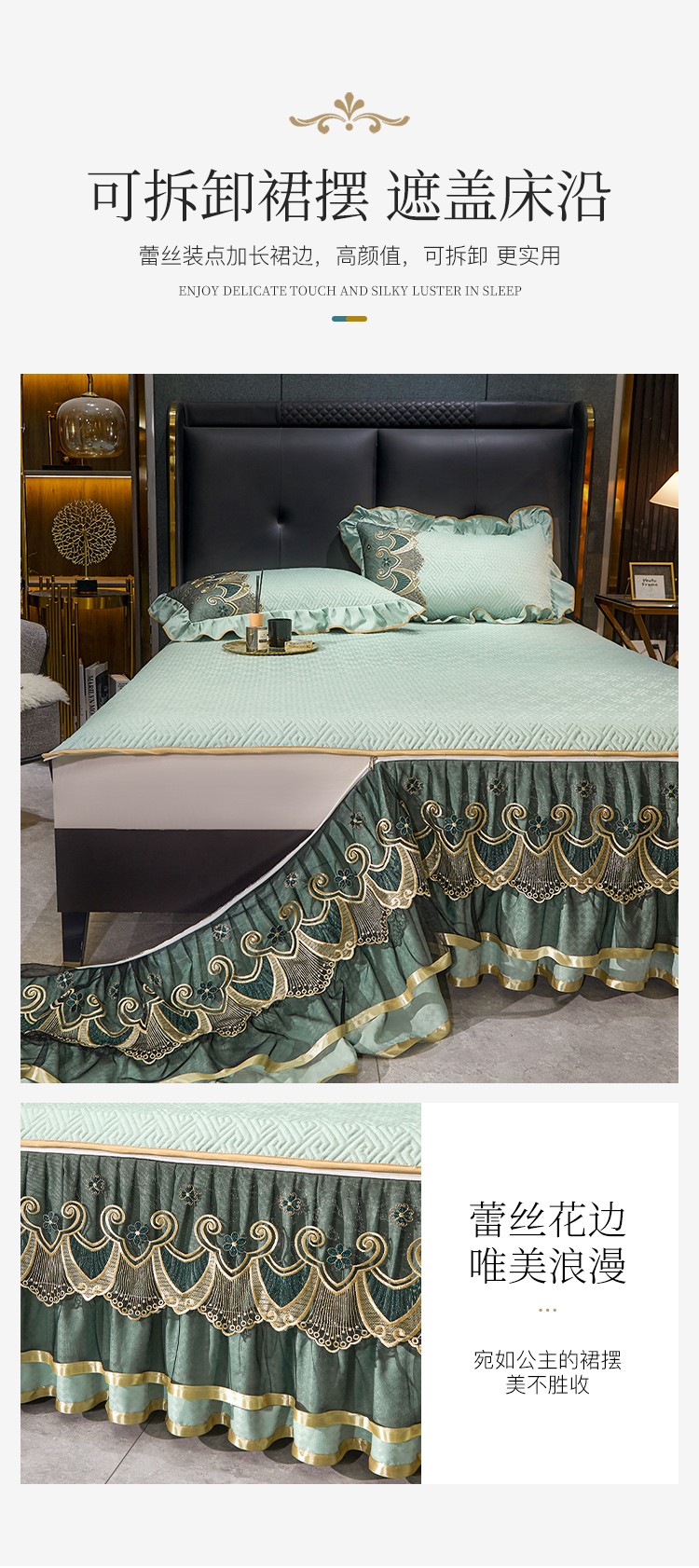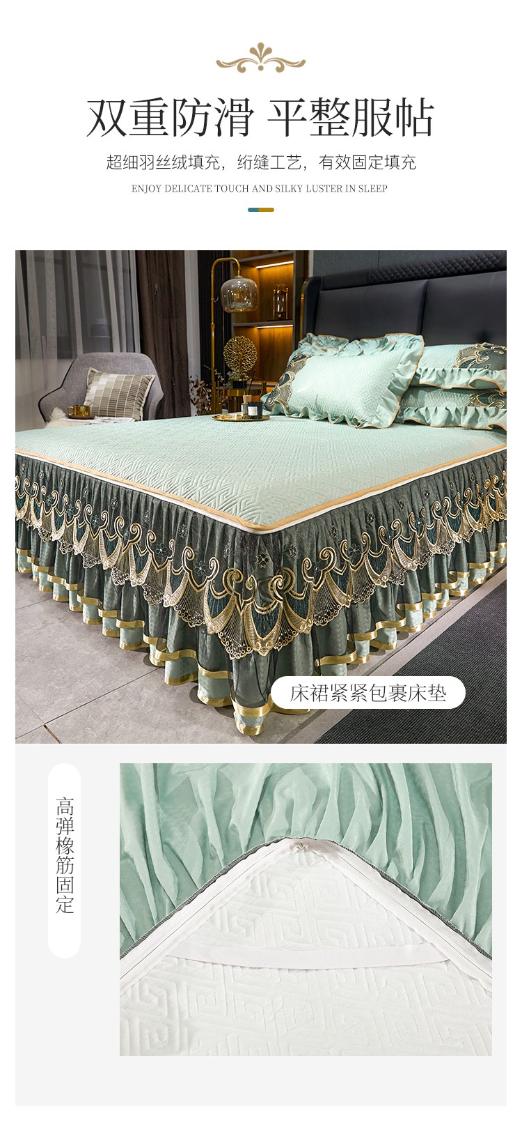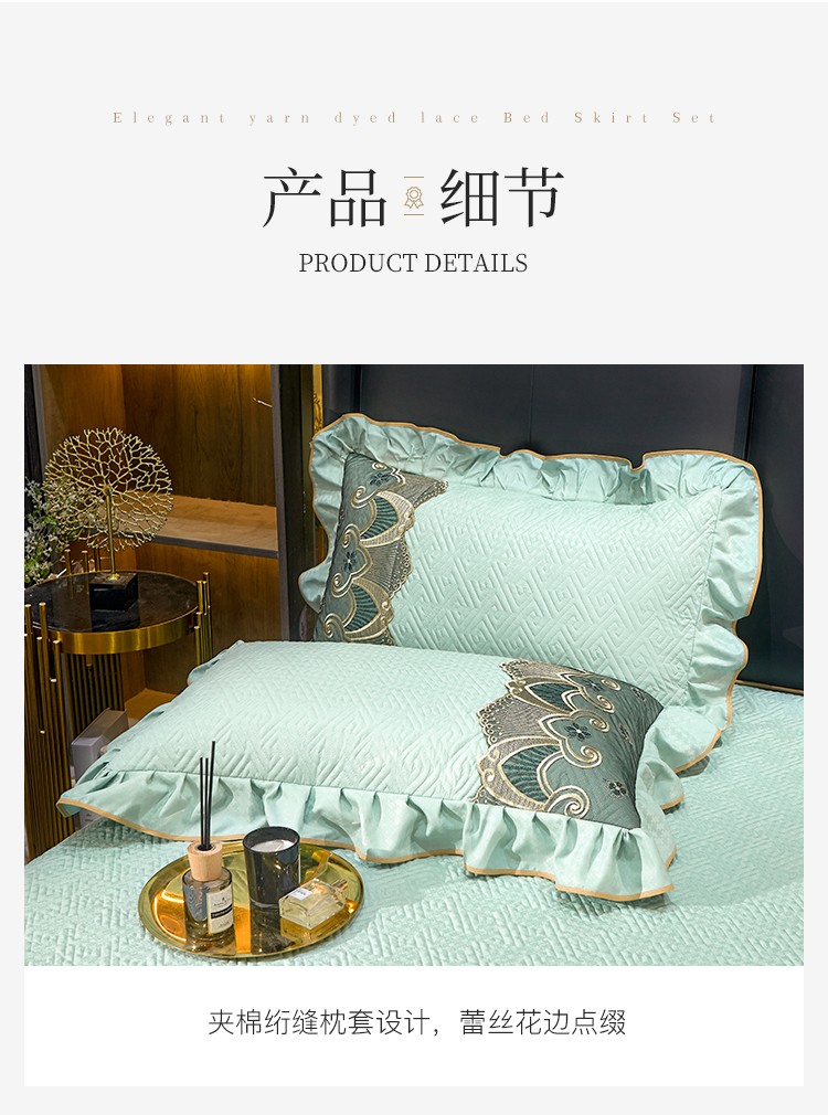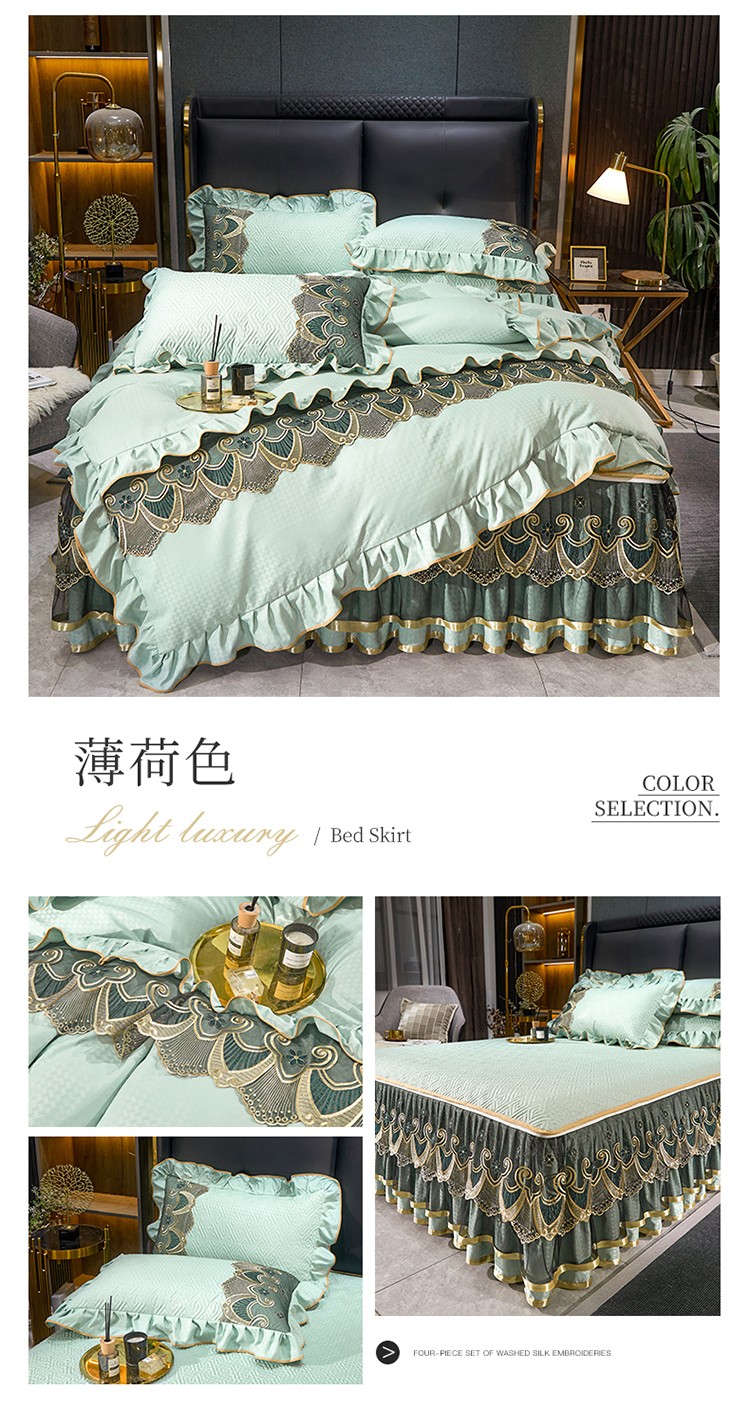 罗艺轩 2024新款贡缎提花夹棉床裙四件套千鸟格系列 千鸟格-薄荷色