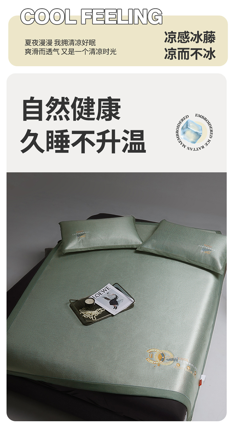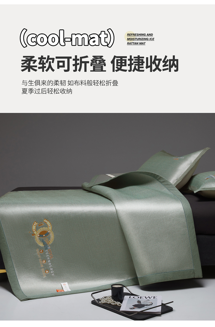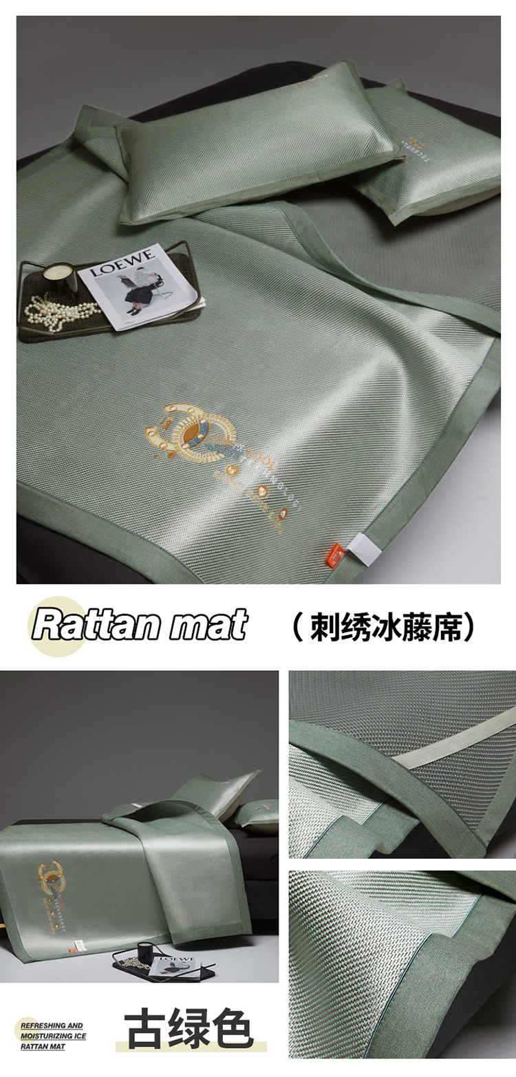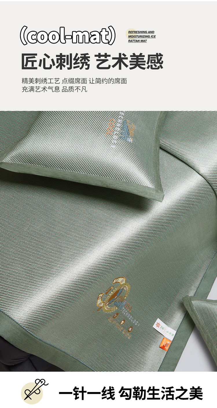 伊被源 2023新款凉感冰藤刺绣软席-冷酷 古绿色