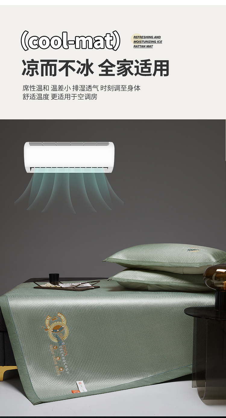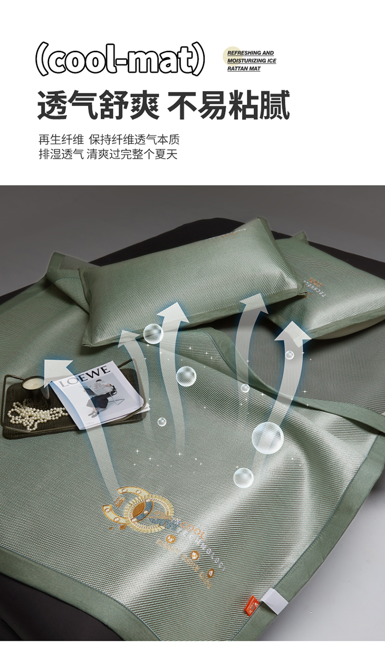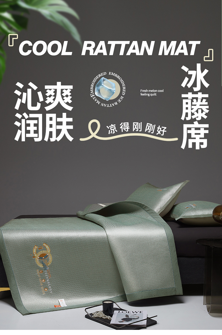 商品名称:伊被源 2023新款凉感冰藤刺绣软席-冷酷 古绿色