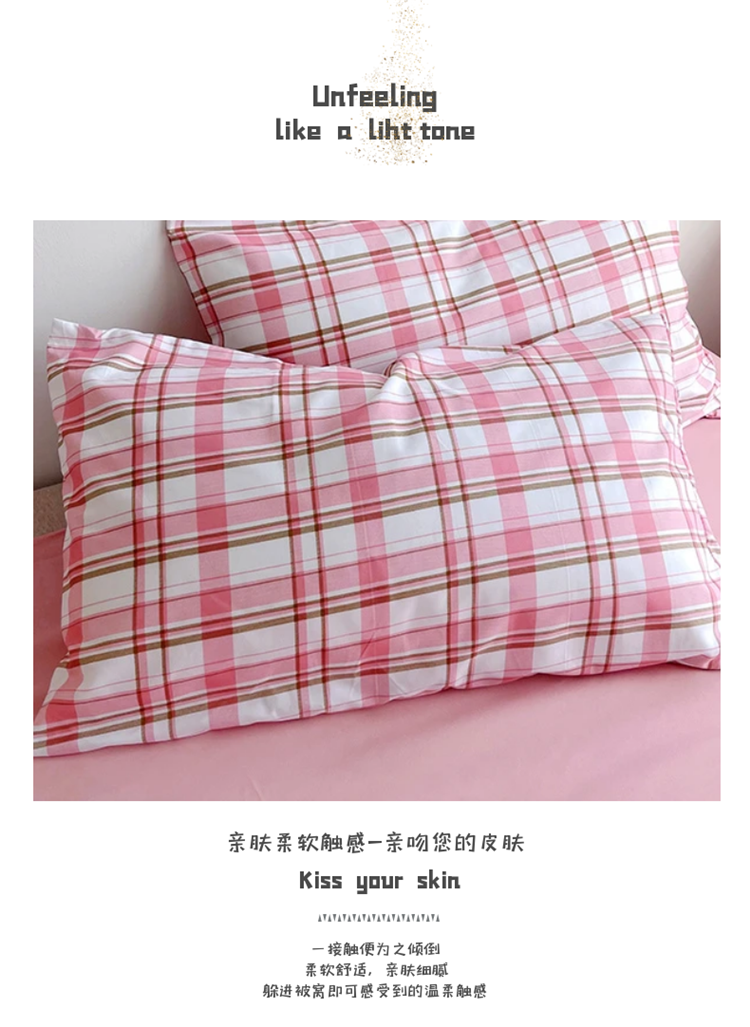 商品名称:曼璐单人枕套加厚水洗棉日式无印风格子条纹枕芯套48*74cm 草莓格