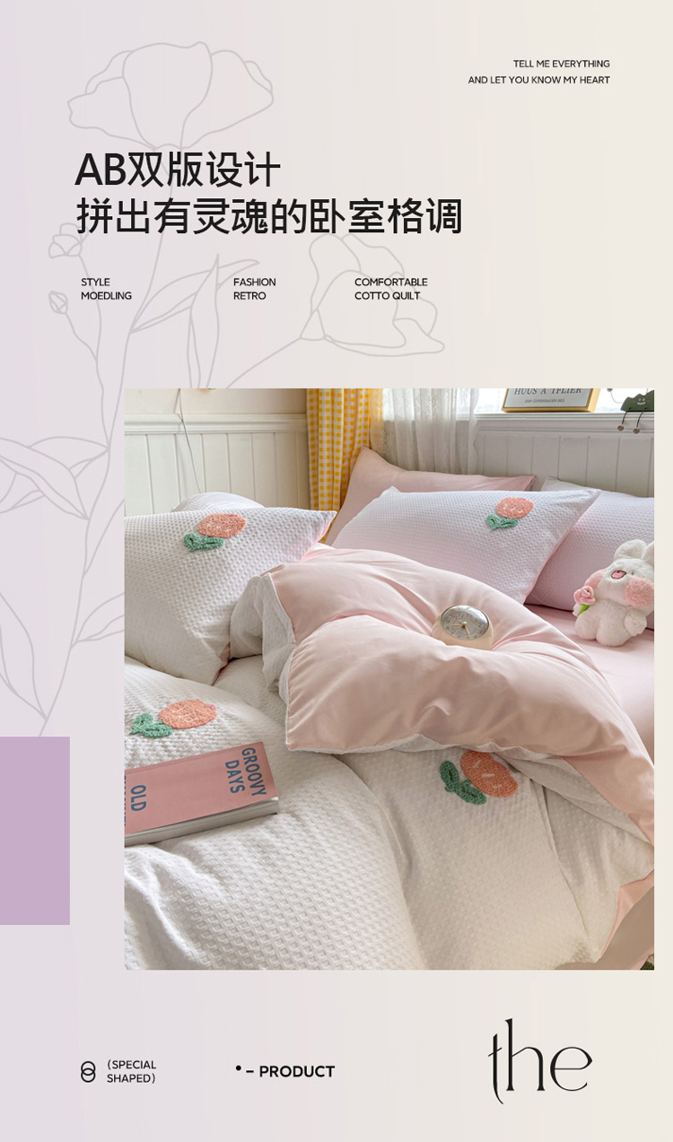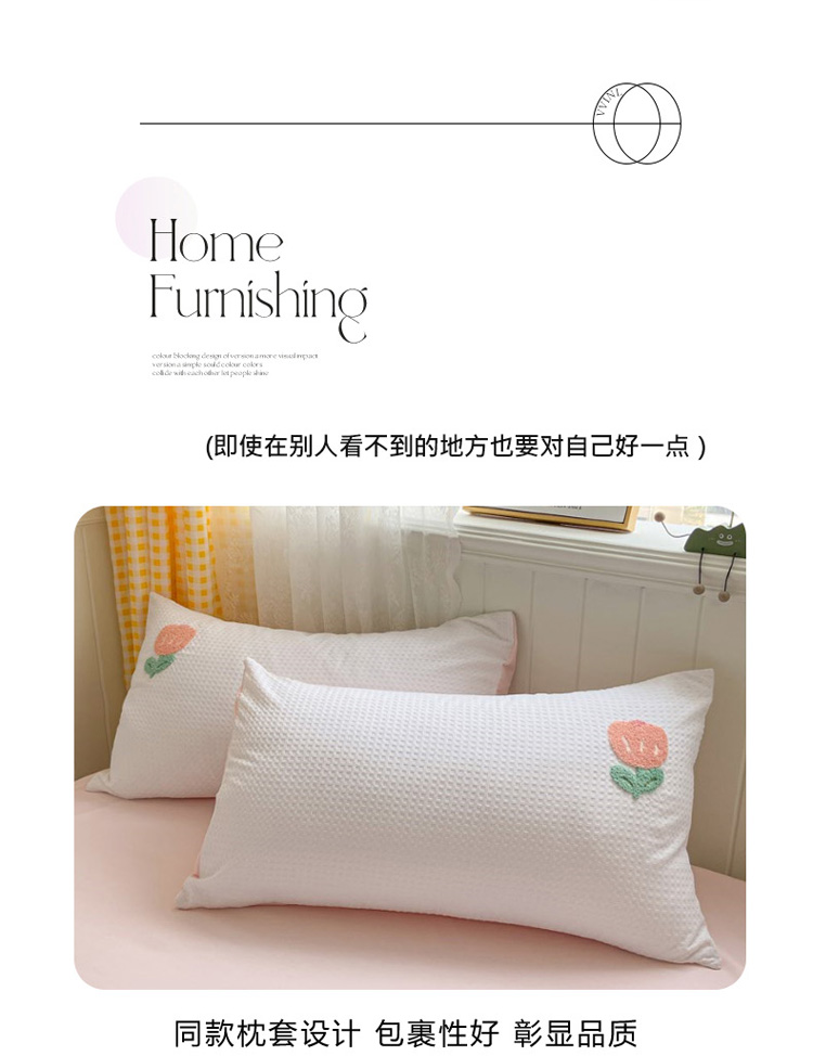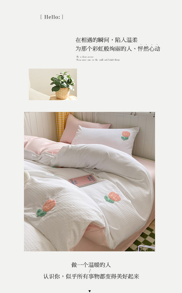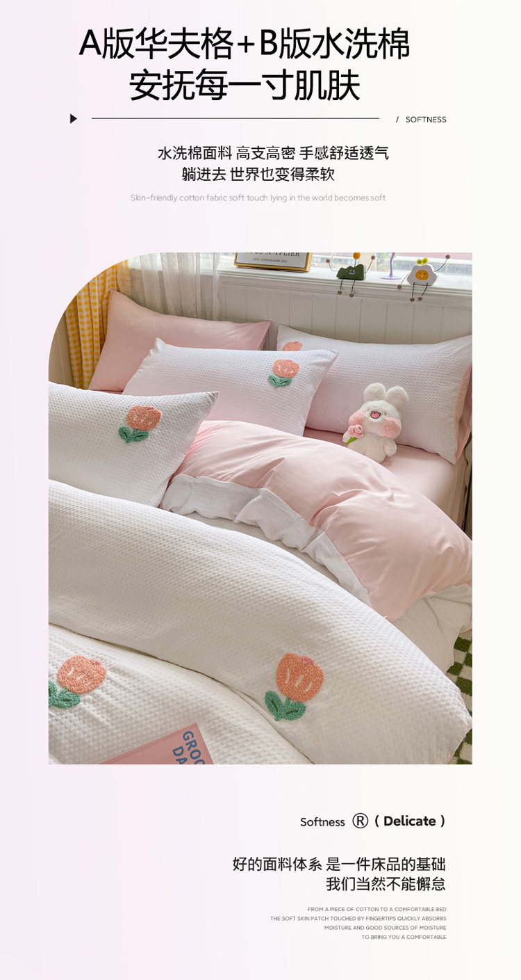 商品名称:慕澄 2023新款高克重小清新华夫格毛巾绣系列四件套 小花-白+粉