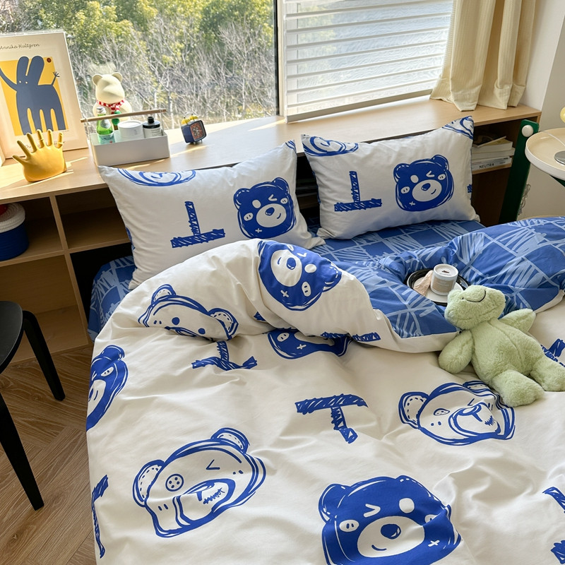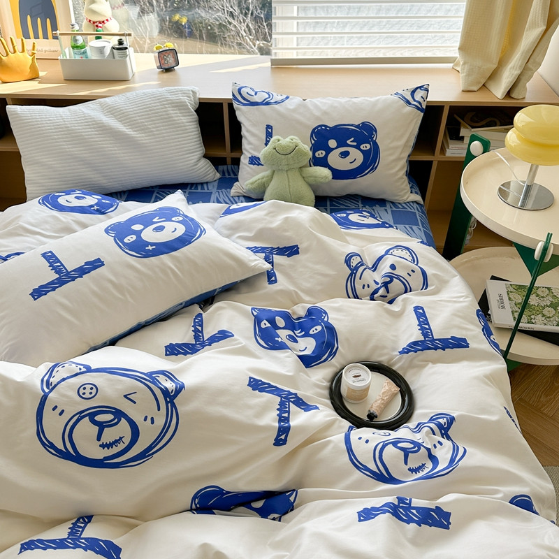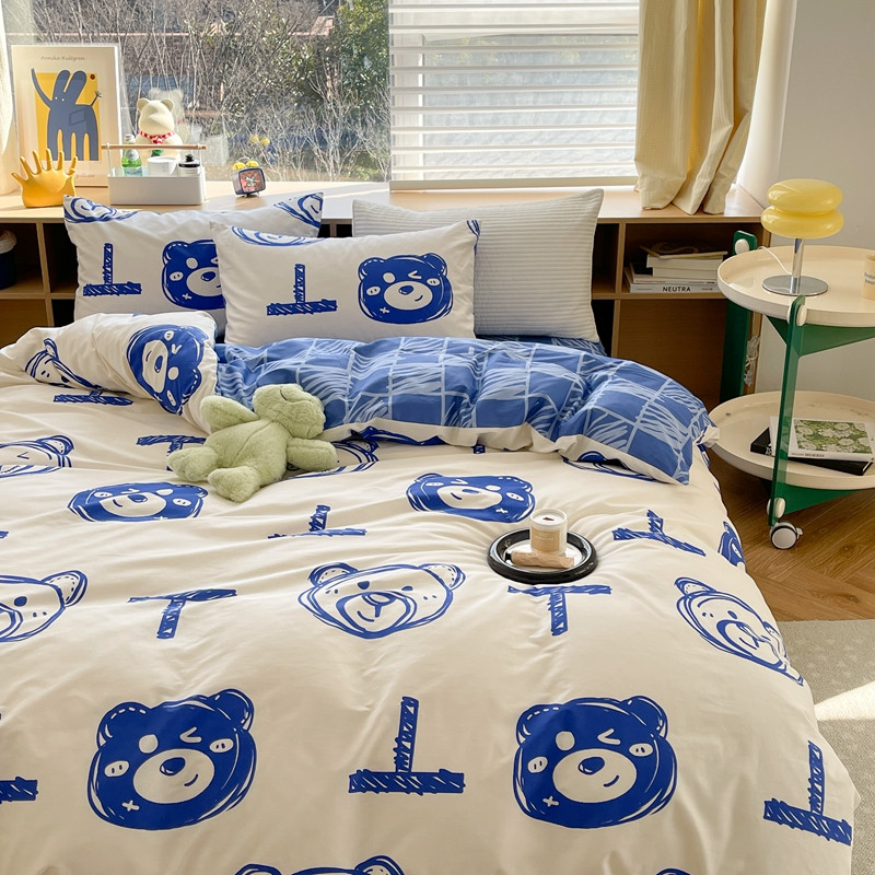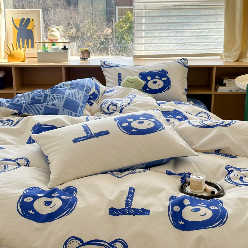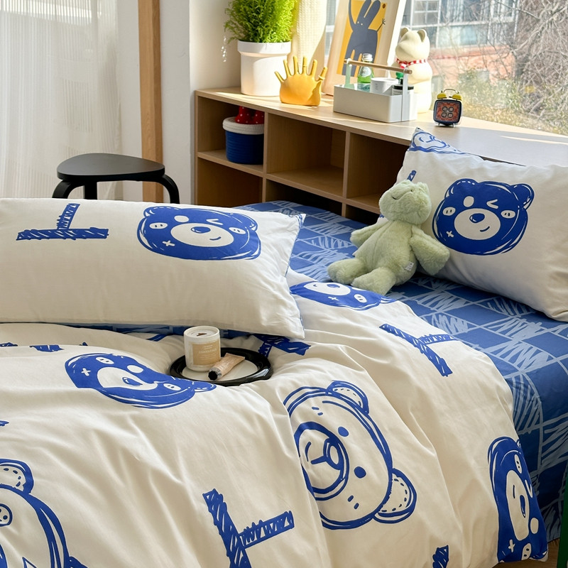 (总)时年家纺 2025新款全棉磨毛大版卡通印花系列套件,趣味熊,爱心熊,安静小象,波点兔,可爱熊宝,萌宝,奶油玩偶,小奥汀,慵懒猫咪