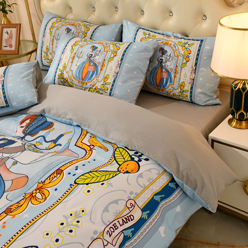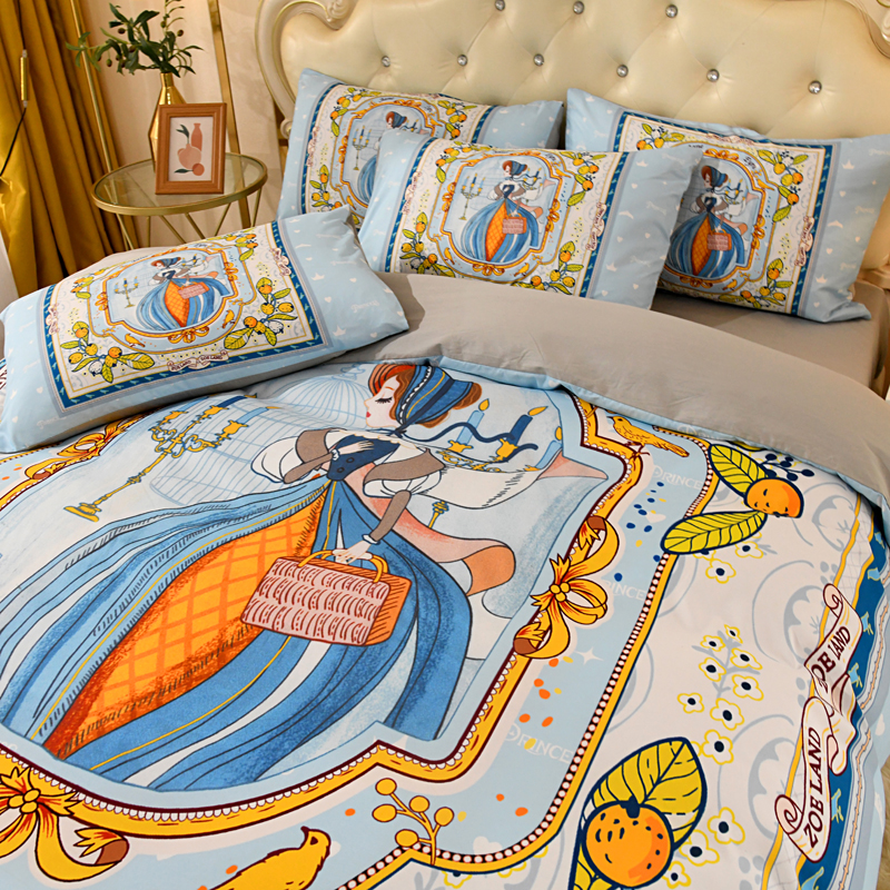 爵仕 2023新款轻奢简约风全棉四件套 手绘公主