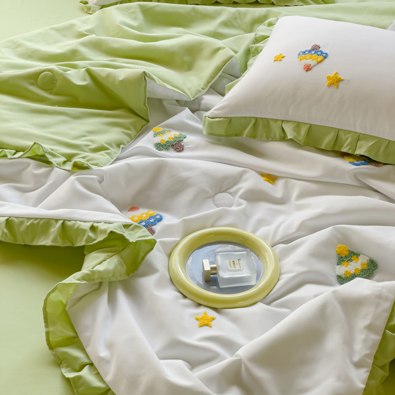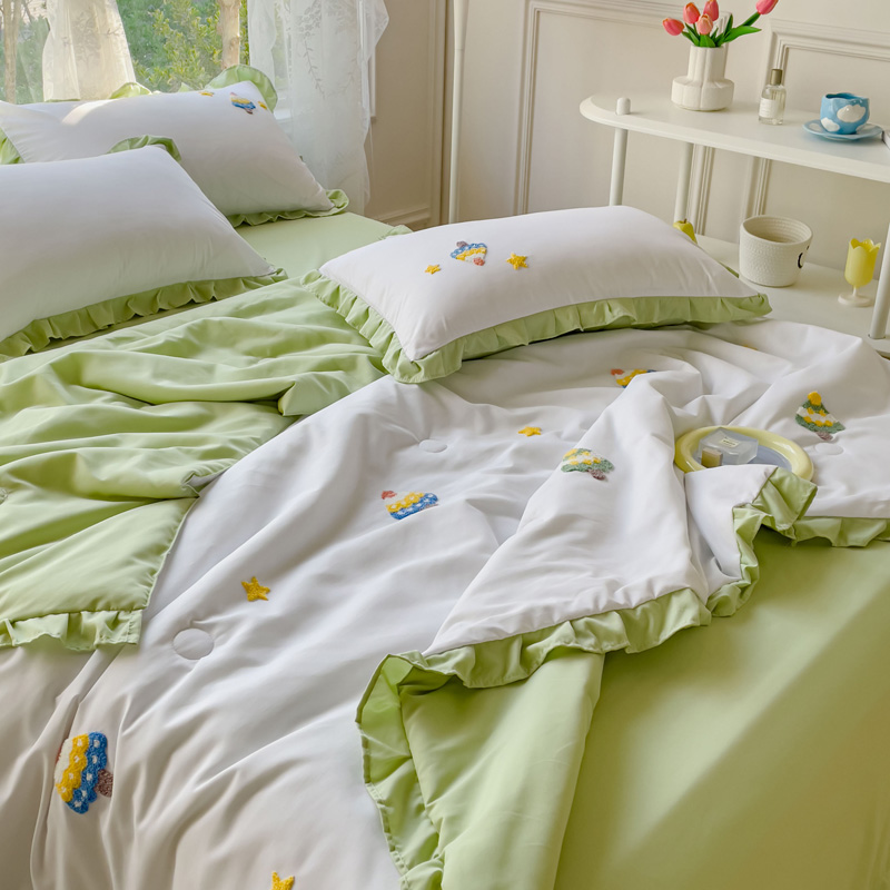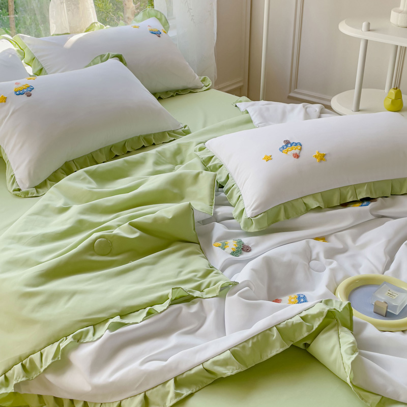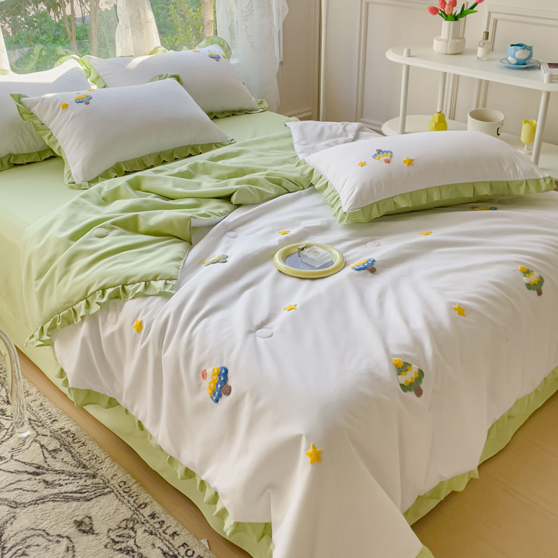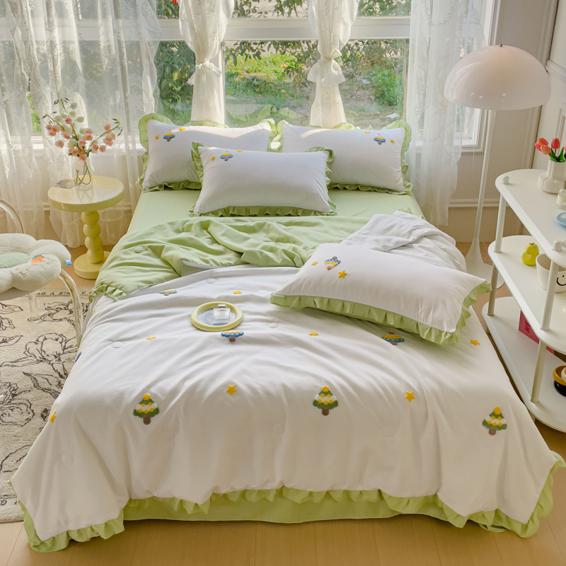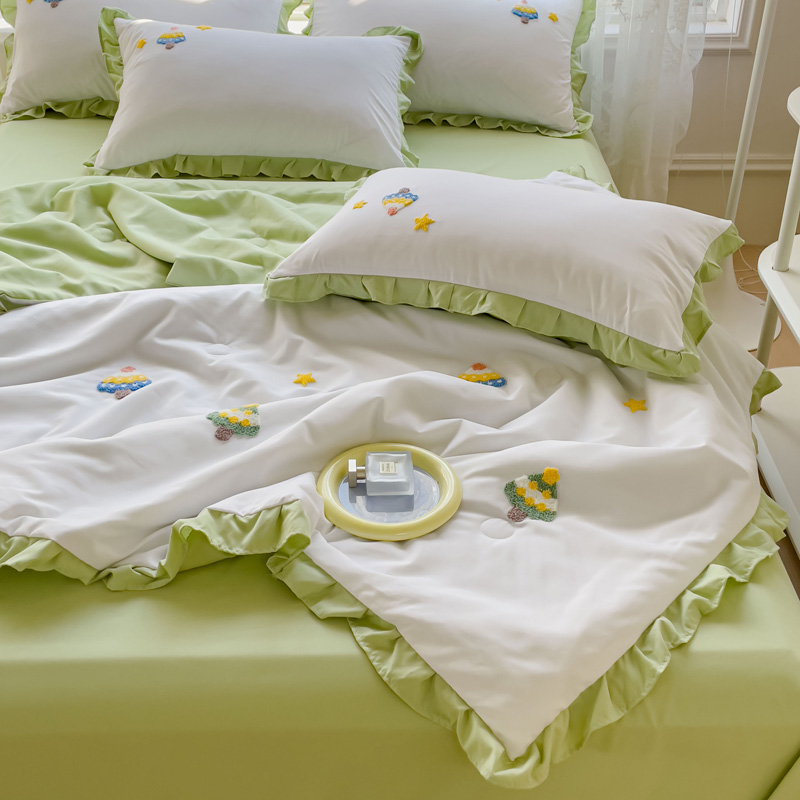 商品名称:麦朵家居 2023新款花边款毛巾绣夏被四件套 星空树-果绿