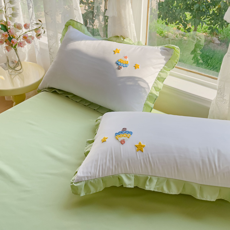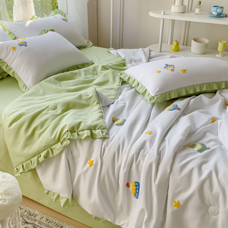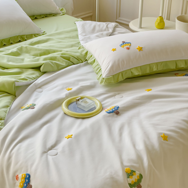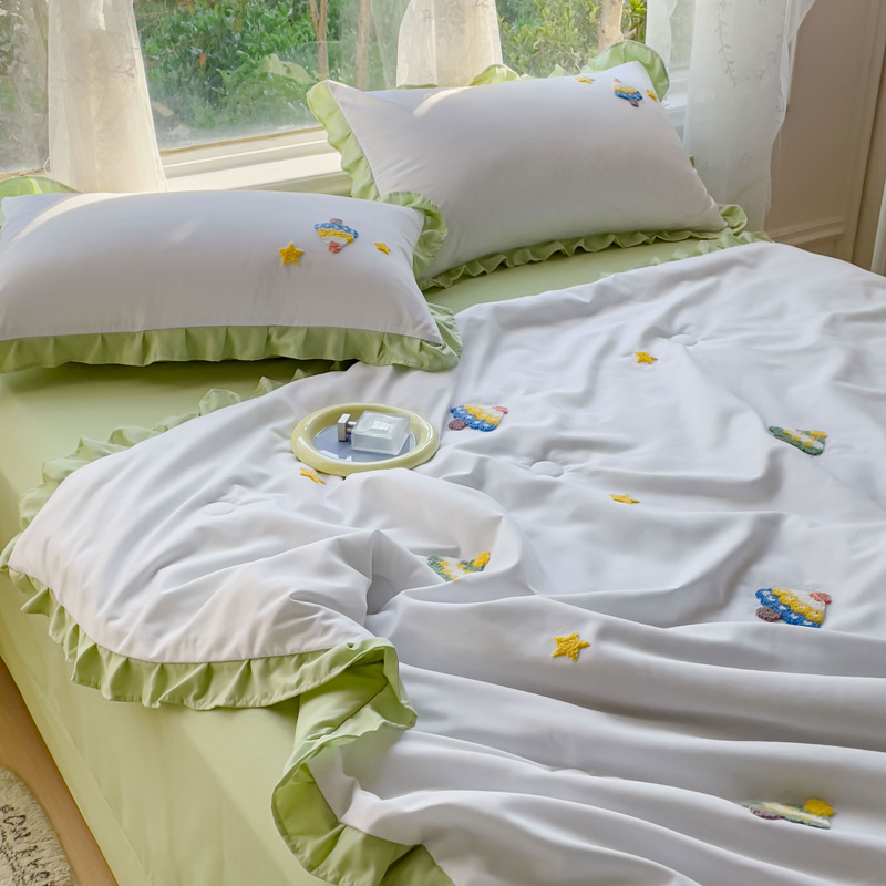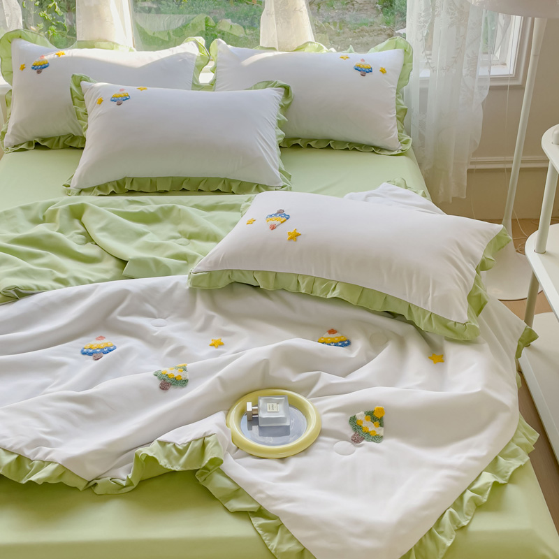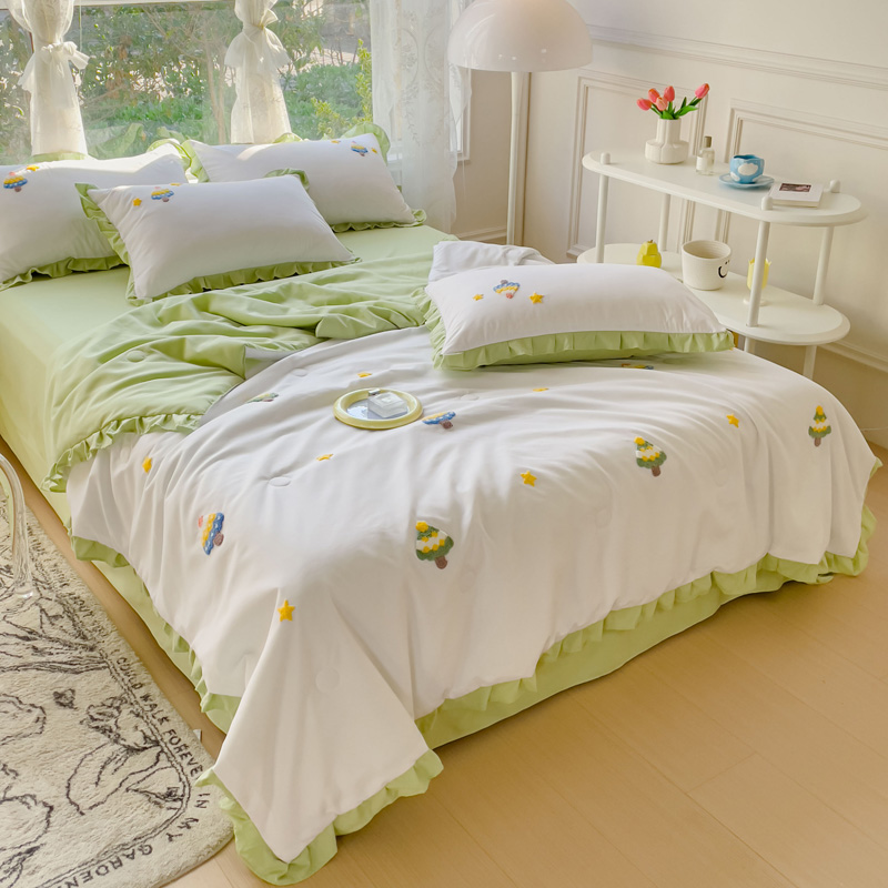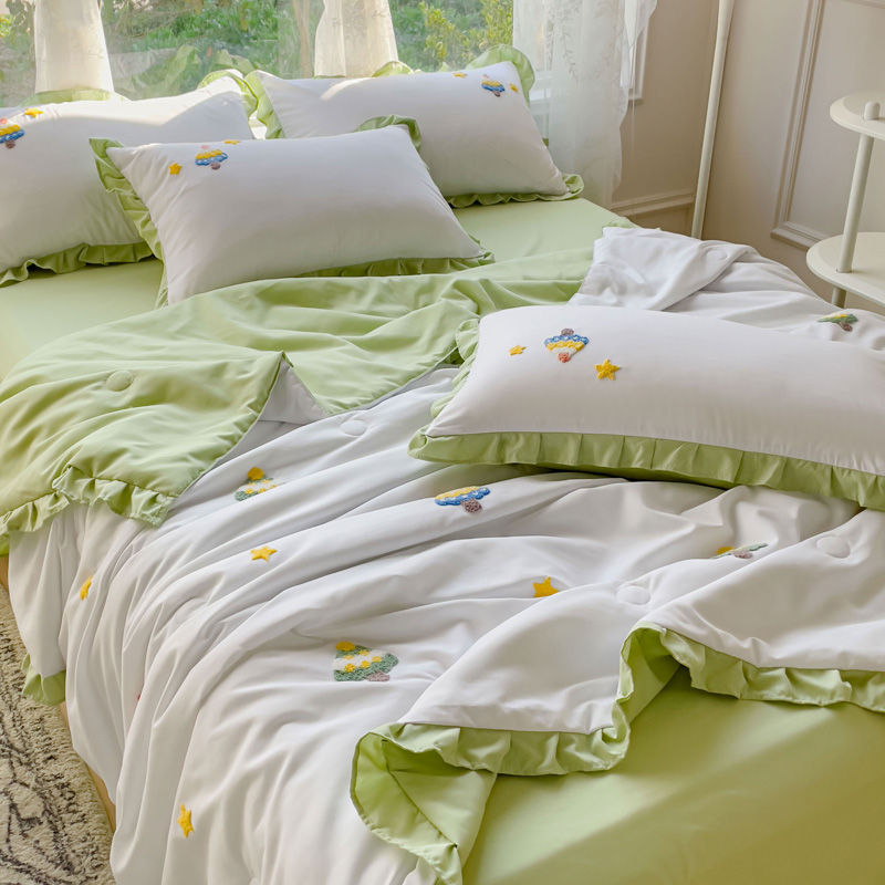 商品名称:麦朵家居 2023新款花边款毛巾绣夏被四件套 星空树-果绿