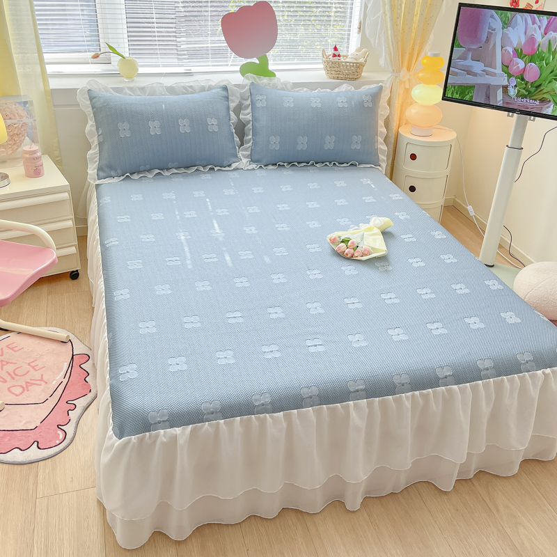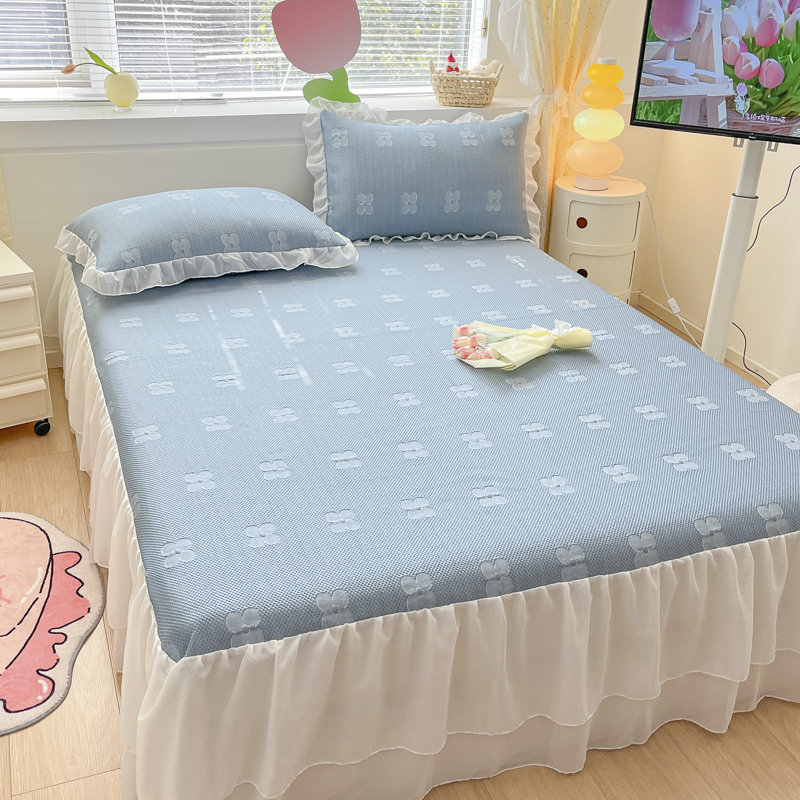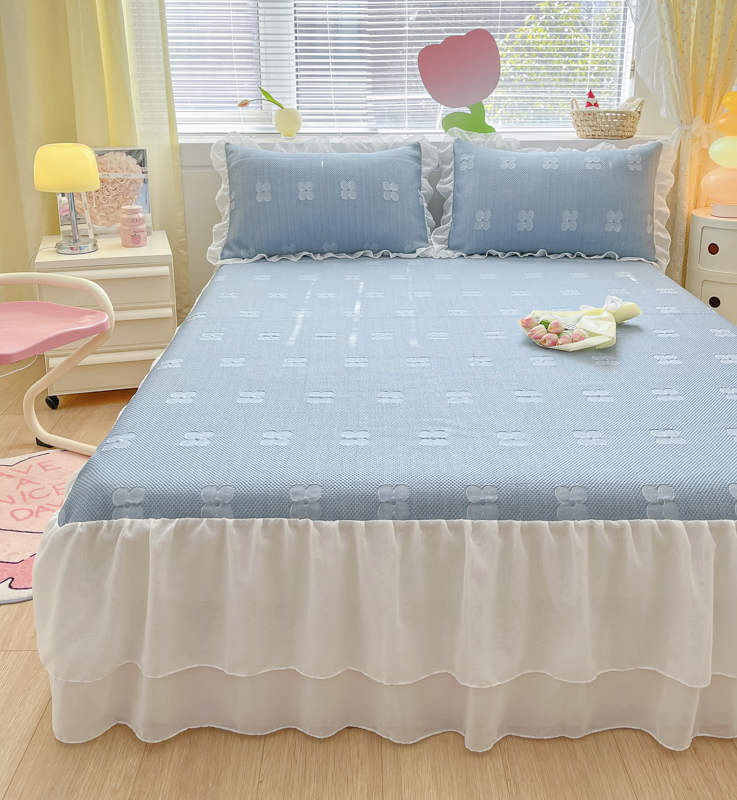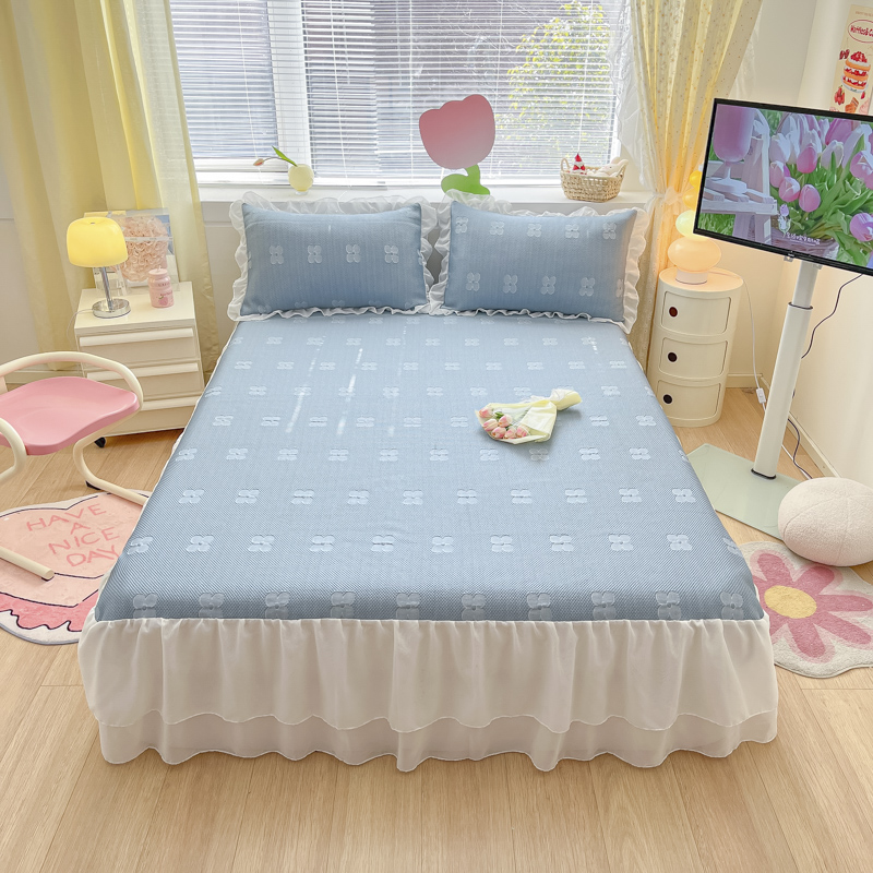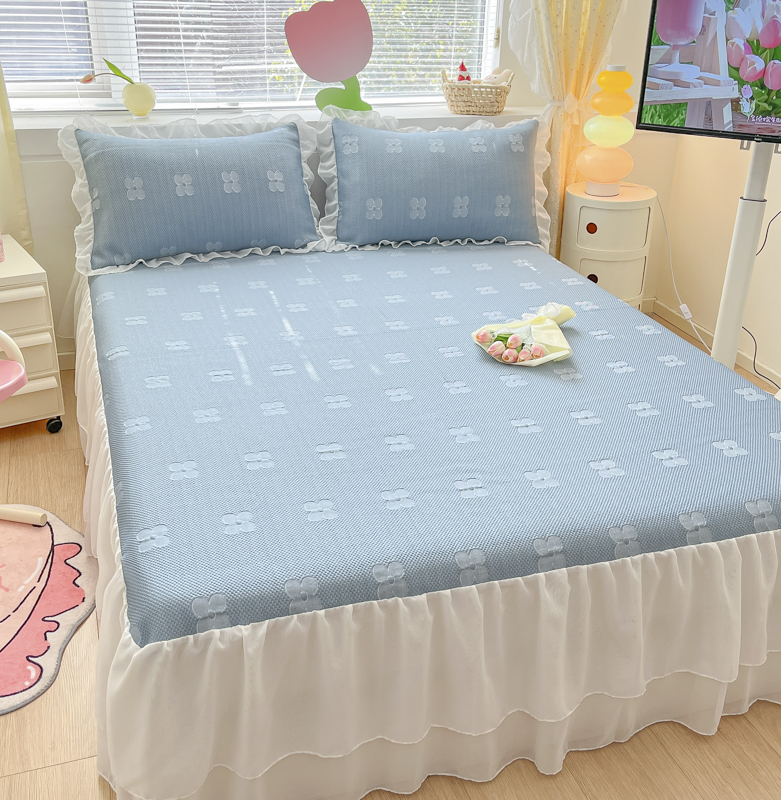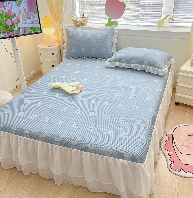 同田 2023新款凉豆豆床裙款凉席冰丝凉感豆豆席 青蓝