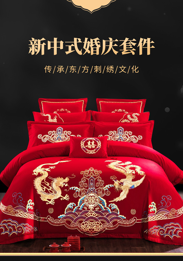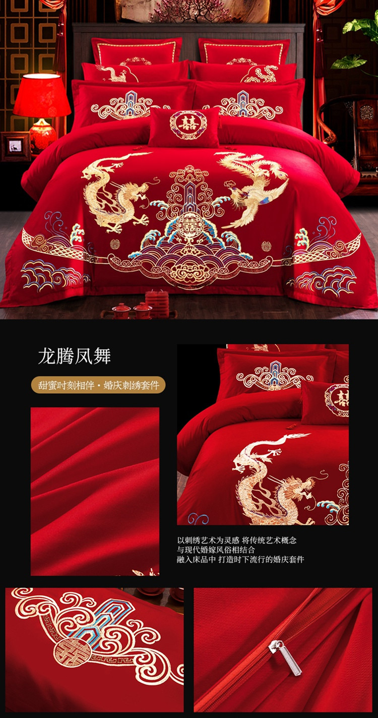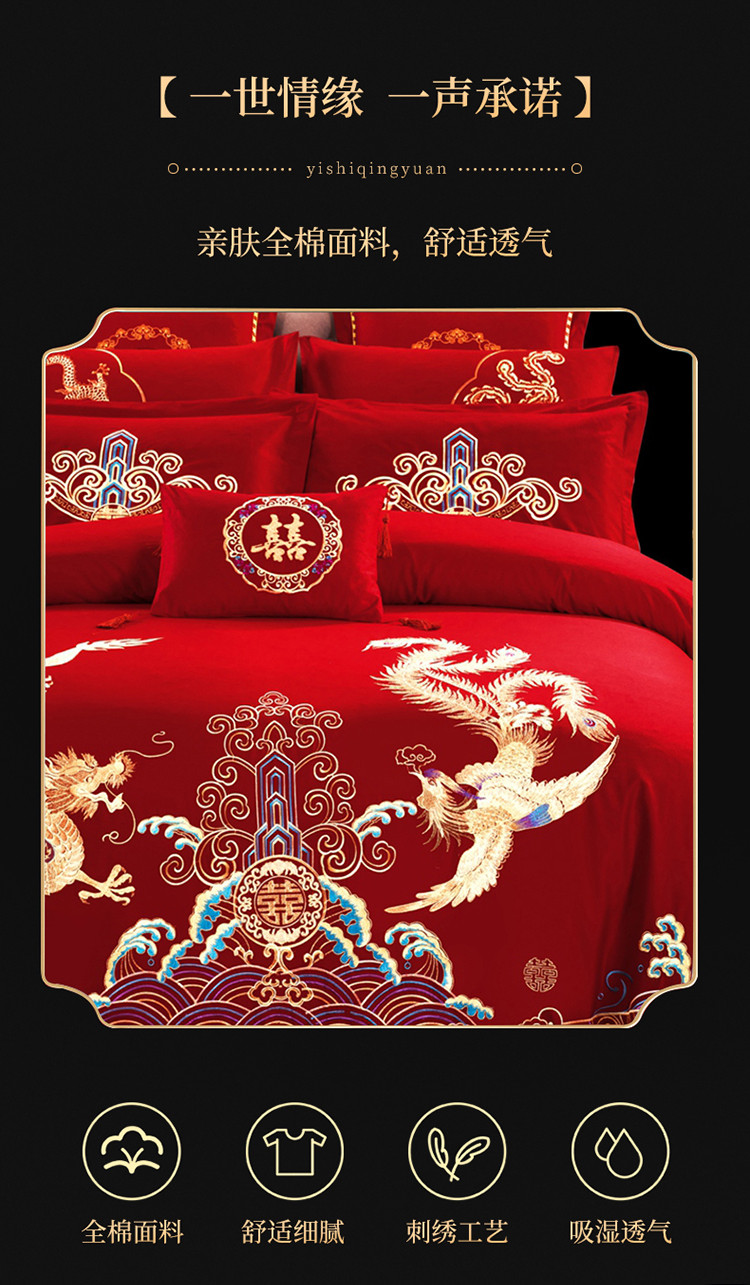 (总)慕她 202560S长绒棉刺绣婚庆四件套-龙凤良缘,龙凤良缘