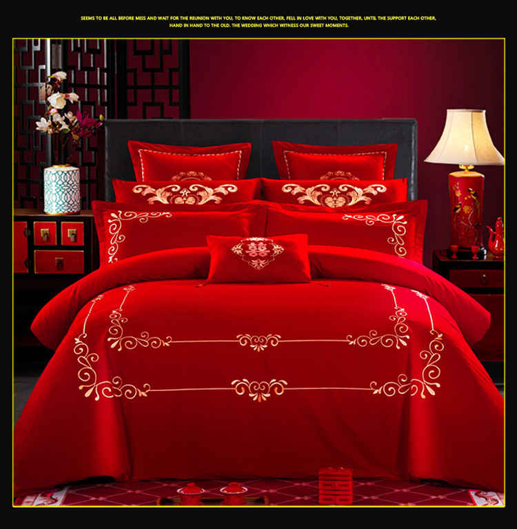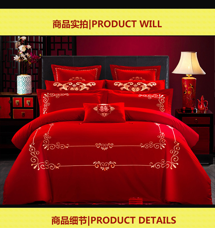 慕她婚庆四件套大红色结婚全棉纯棉简约刺绣花多件套直播 世纪之恋