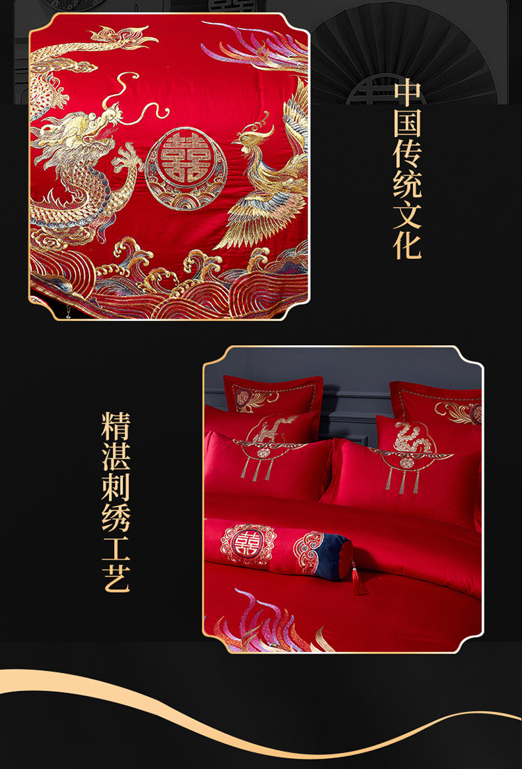 (总)慕她 202560S长绒棉刺绣婚庆四件套-龙凤良缘,龙凤良缘