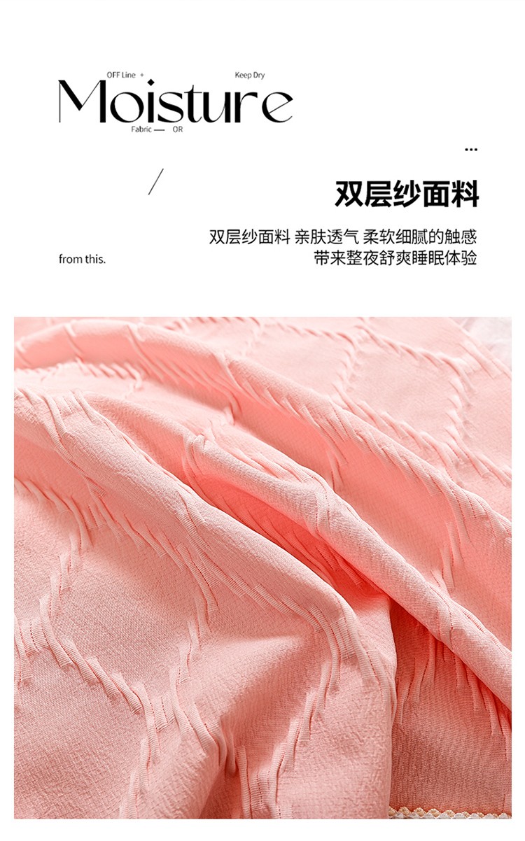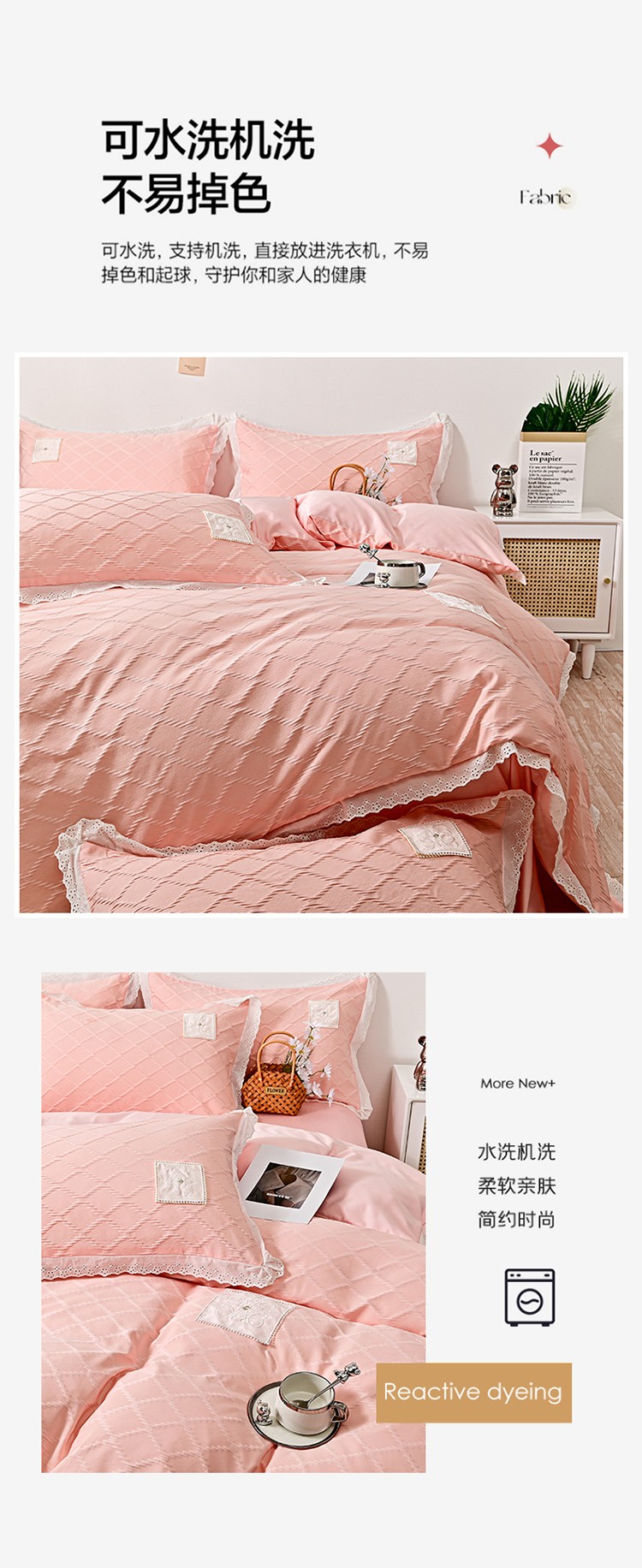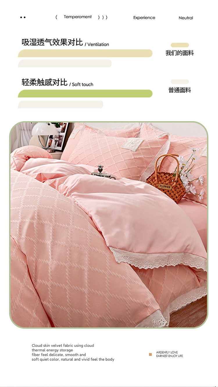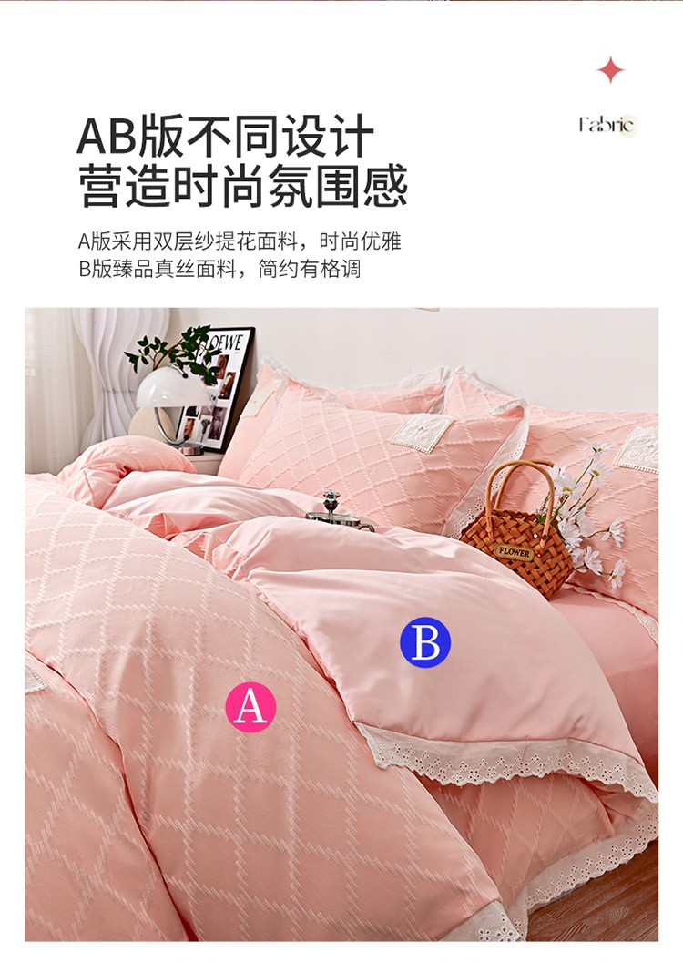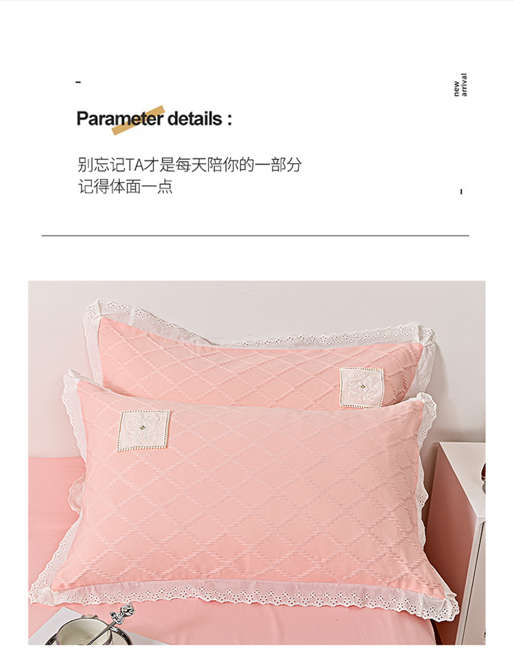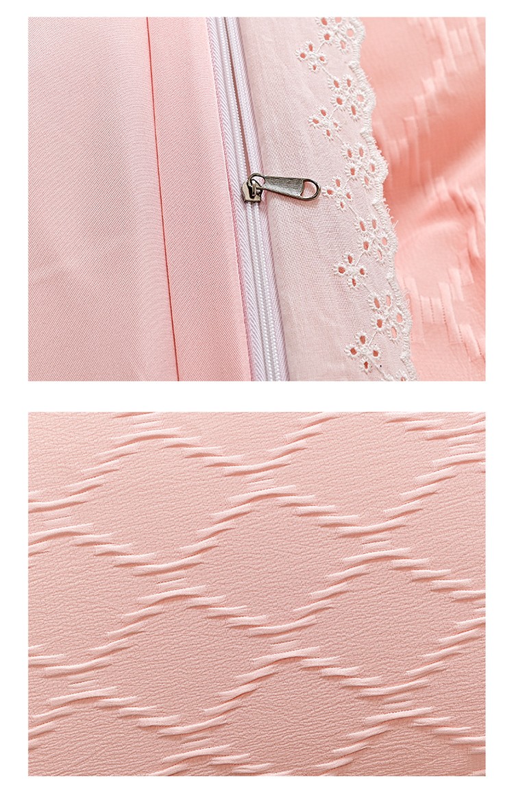 商品名称:宅家居 2023新款双层纱菱形格贴布绣花边四件套-罗威系列 罗威-桃粉
