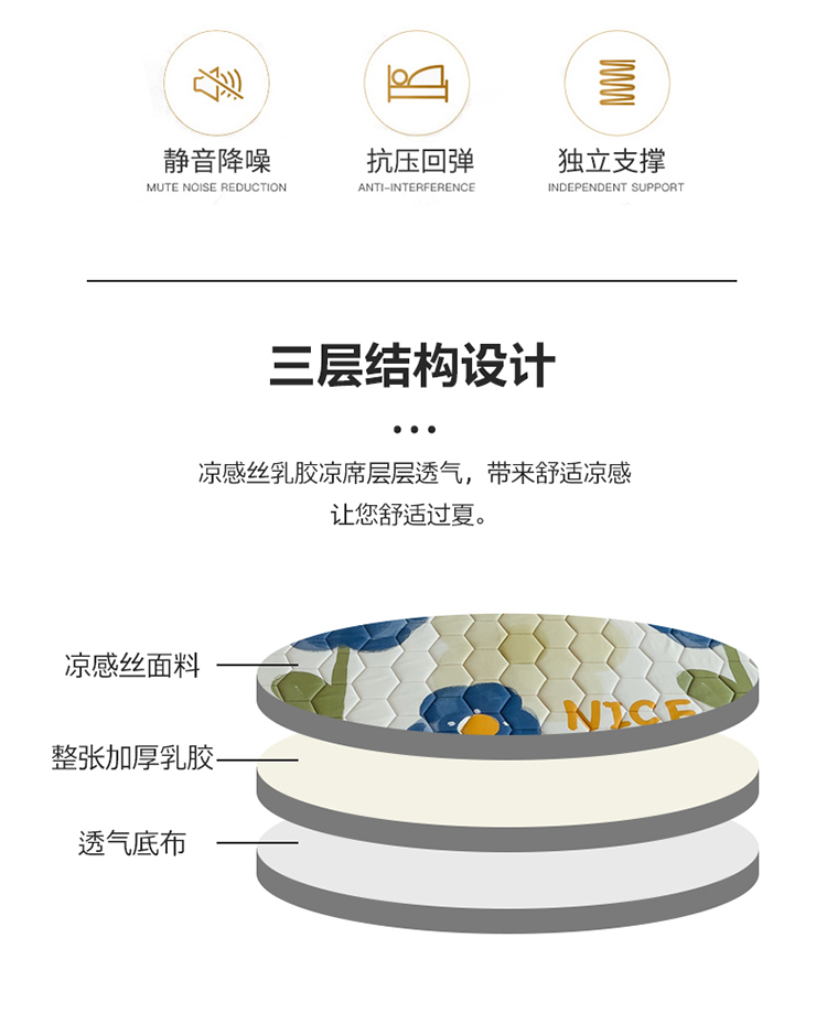 商品名称:(总)慕尚家纺 2025新款加厚印花乳胶席凉感丝乳胶凉席