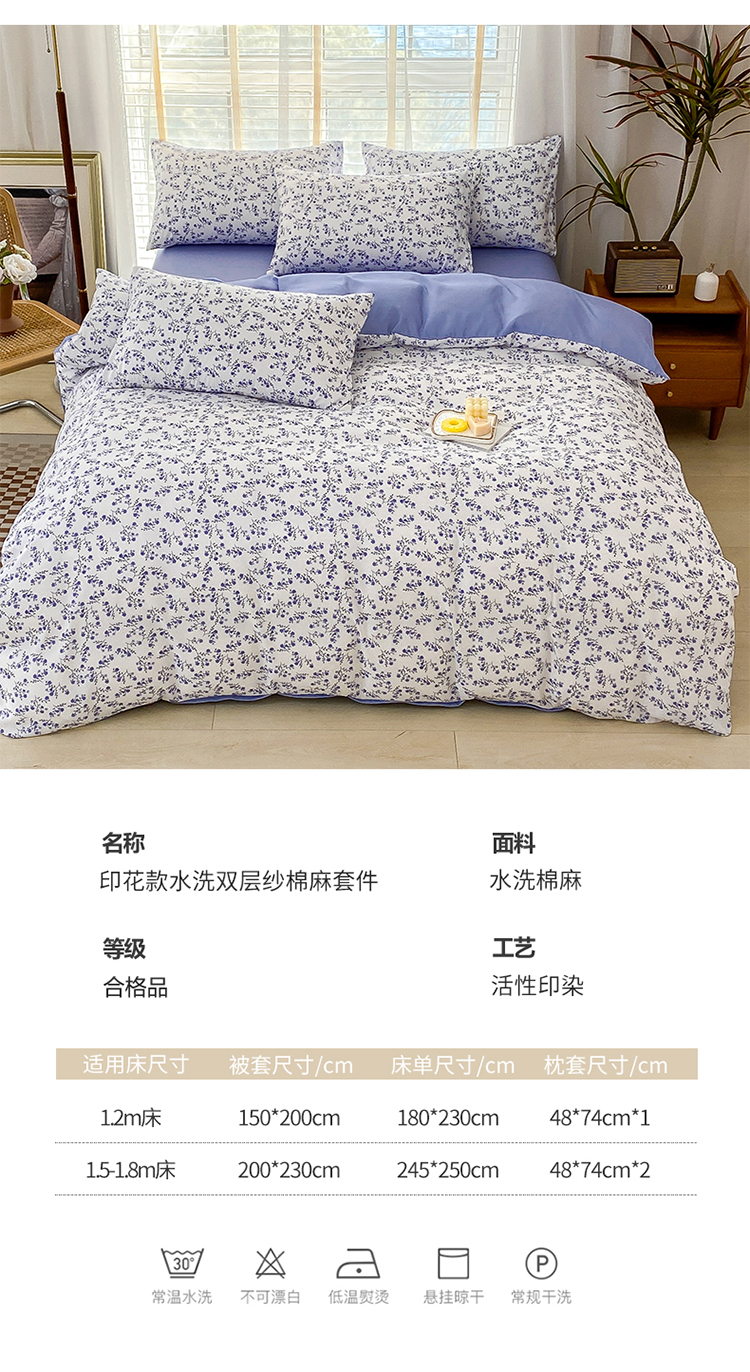 商品名称:(总)优尚 2025新款双层纱水洗棉麻四件套